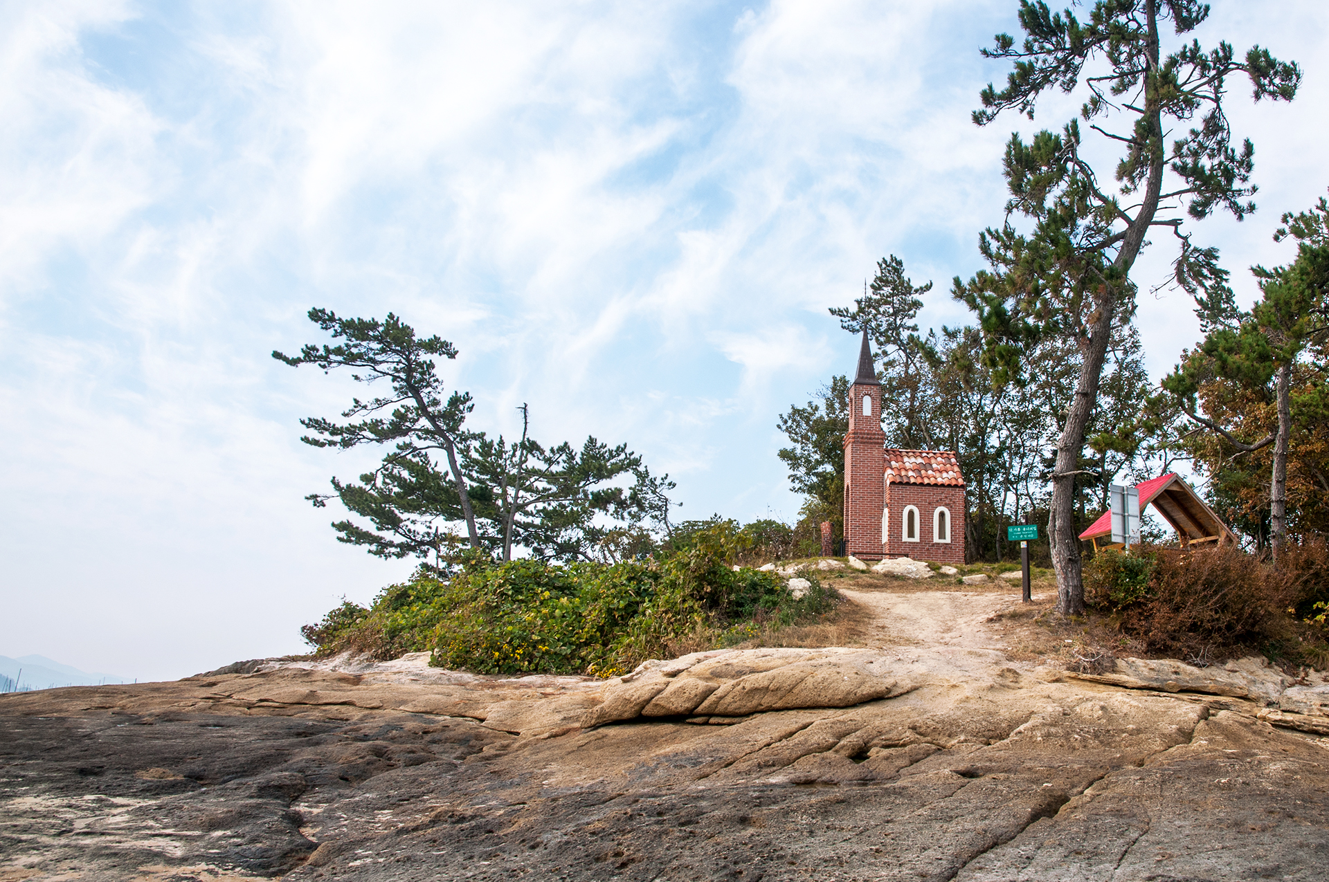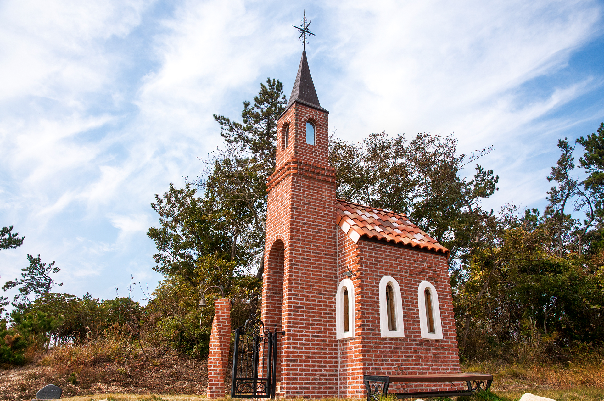 뾰족지붕과 붉은 벽돌로 지어진 예배당으로 바다를 바라볼 수 있는 섬 언덕에 자리를 잡아 아름다운 예배당이다.