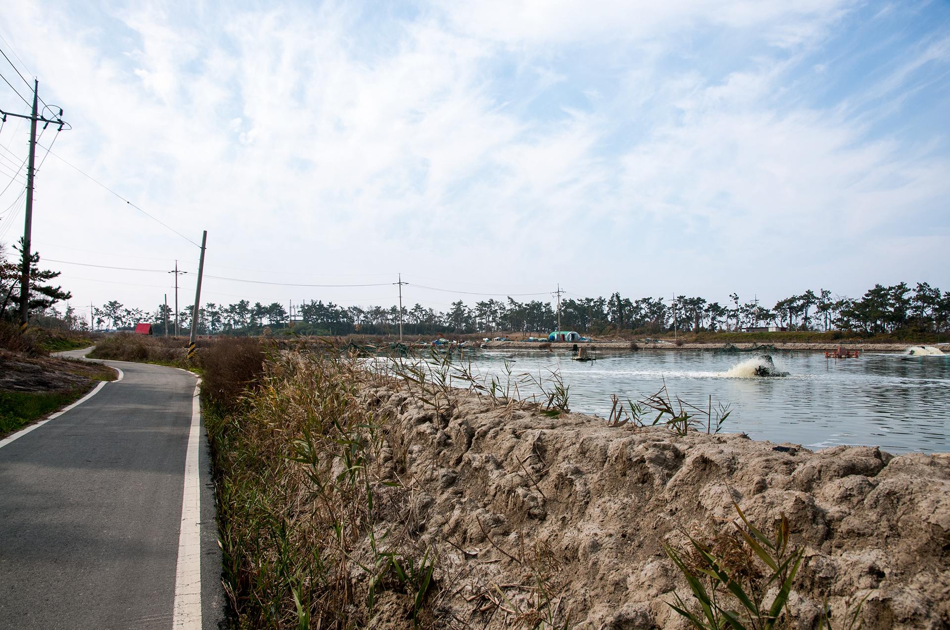 토마스의 집으로 가는 길에 염전인가 수차가 힘차게 돌아가며 물보라를 일으킨다.