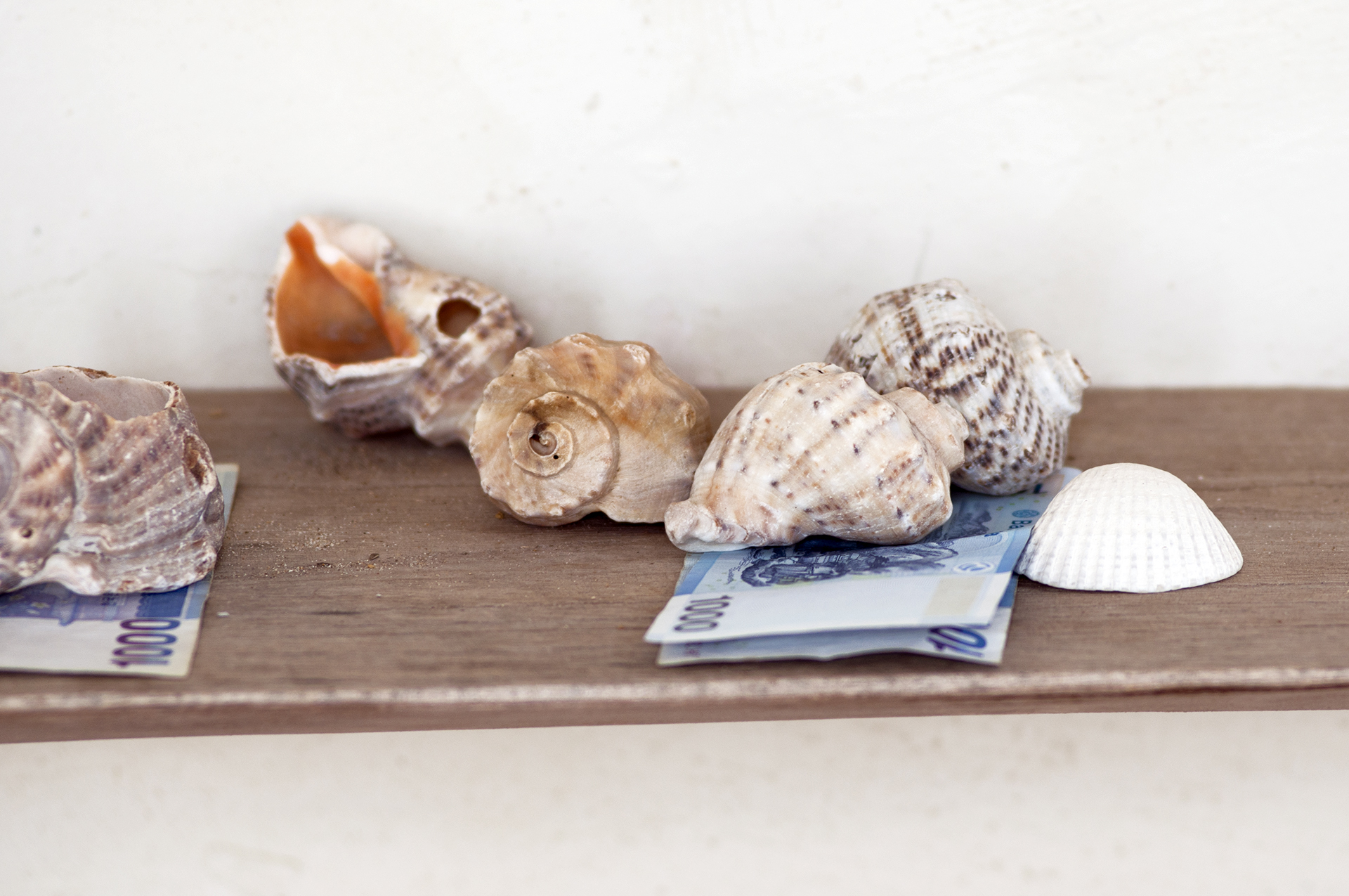 주변에서 주워온 조개껍질로 살며시 눌러 놓았다.