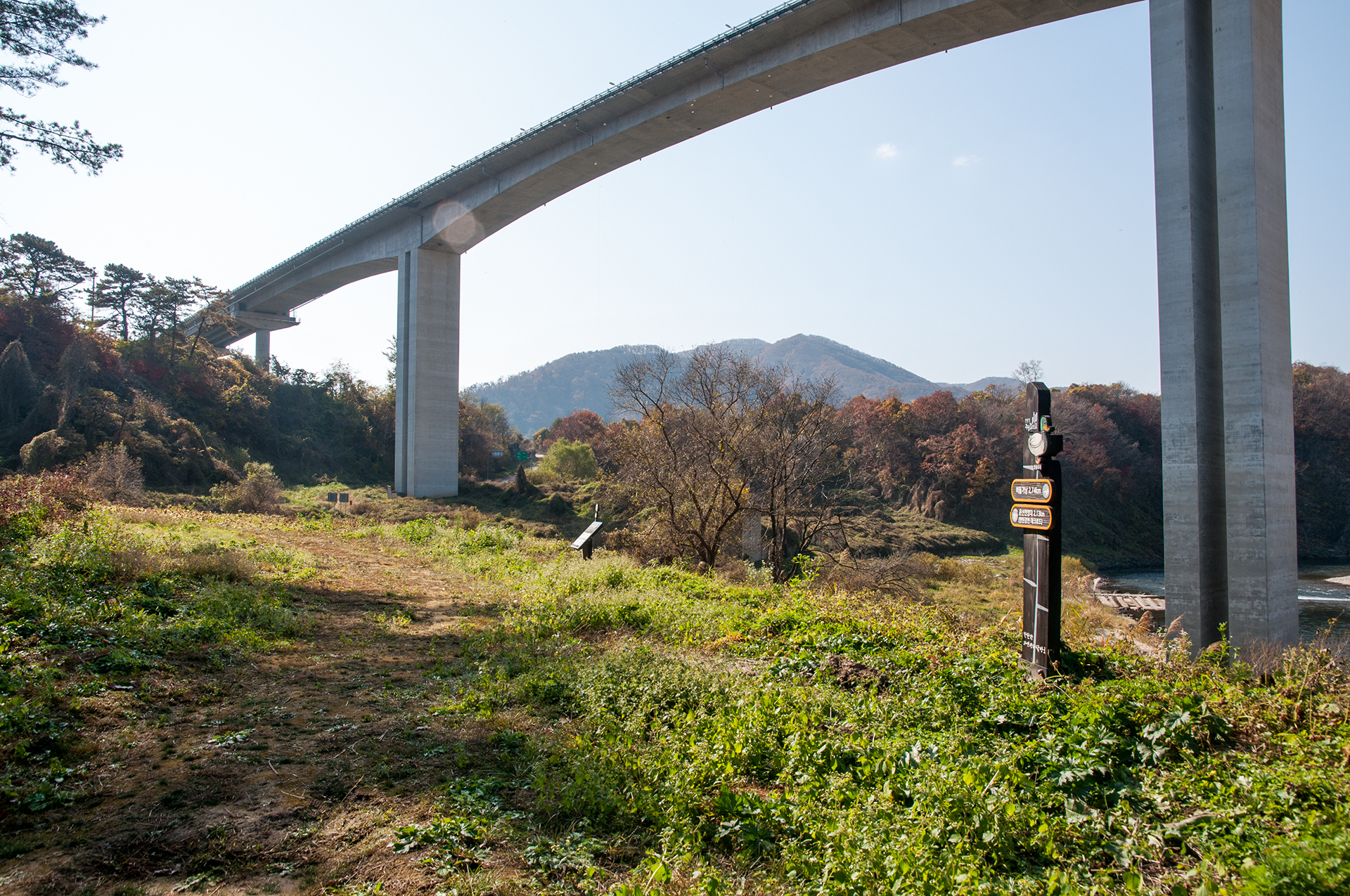 하늘다리를 좀 더 댕겨서 찍어보고, 뒷쪽의 다리는 대회산교로 멍우리길 코스 원점회귀시 요긴하게 이용된다.