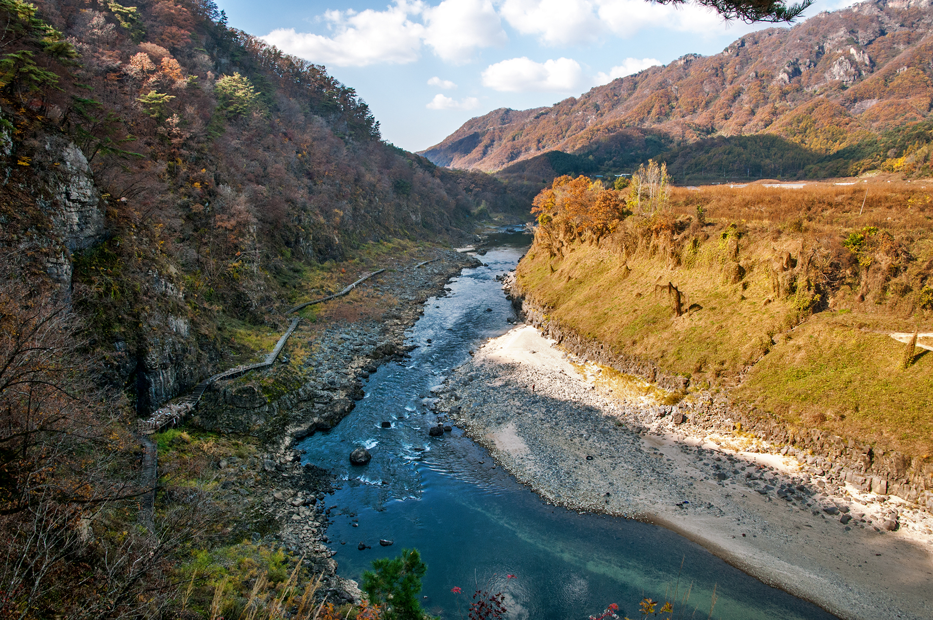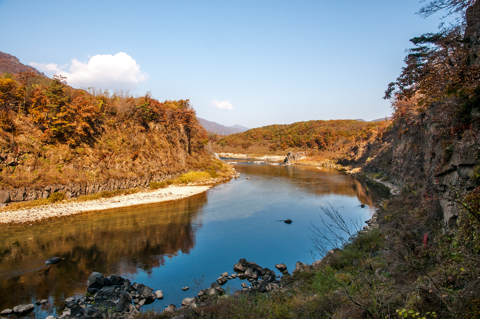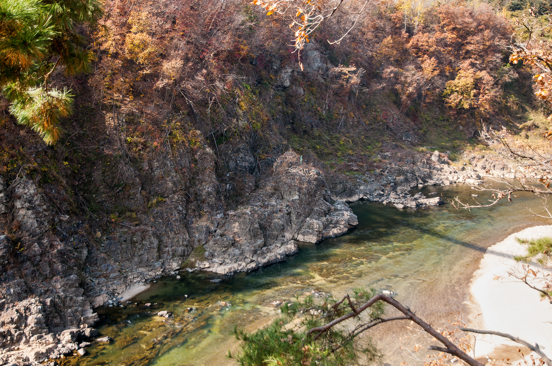강변을 따라 저 깊은 계곡 속으로 걸어갈 수 있는 길이 있었으면 좋겠다 싶었다.