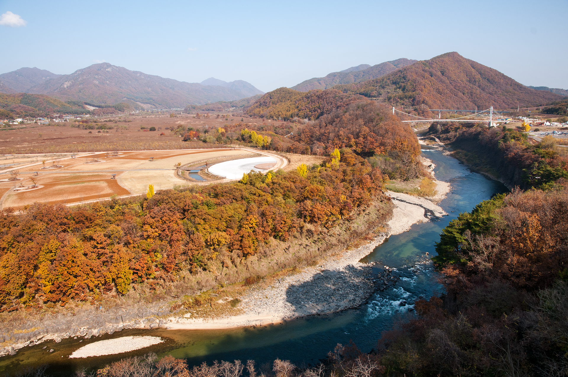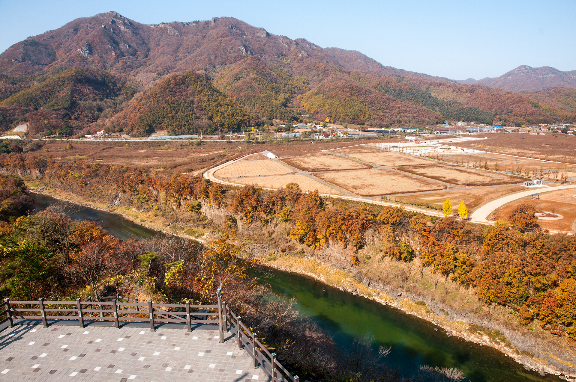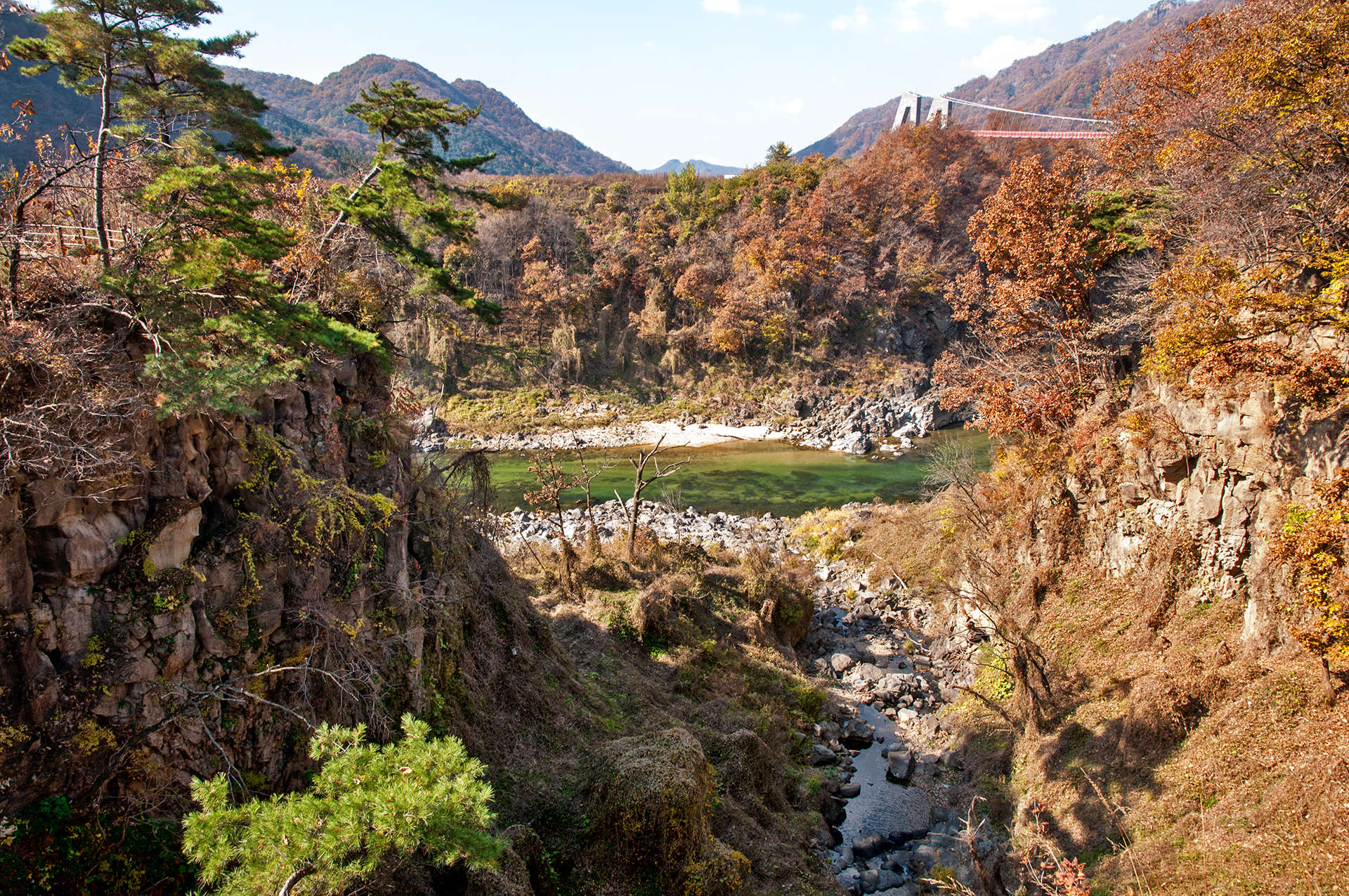 전망대에 오르니 단풍이 물들어가는 한탄강 주상절리길이 한눈에 들어온다.