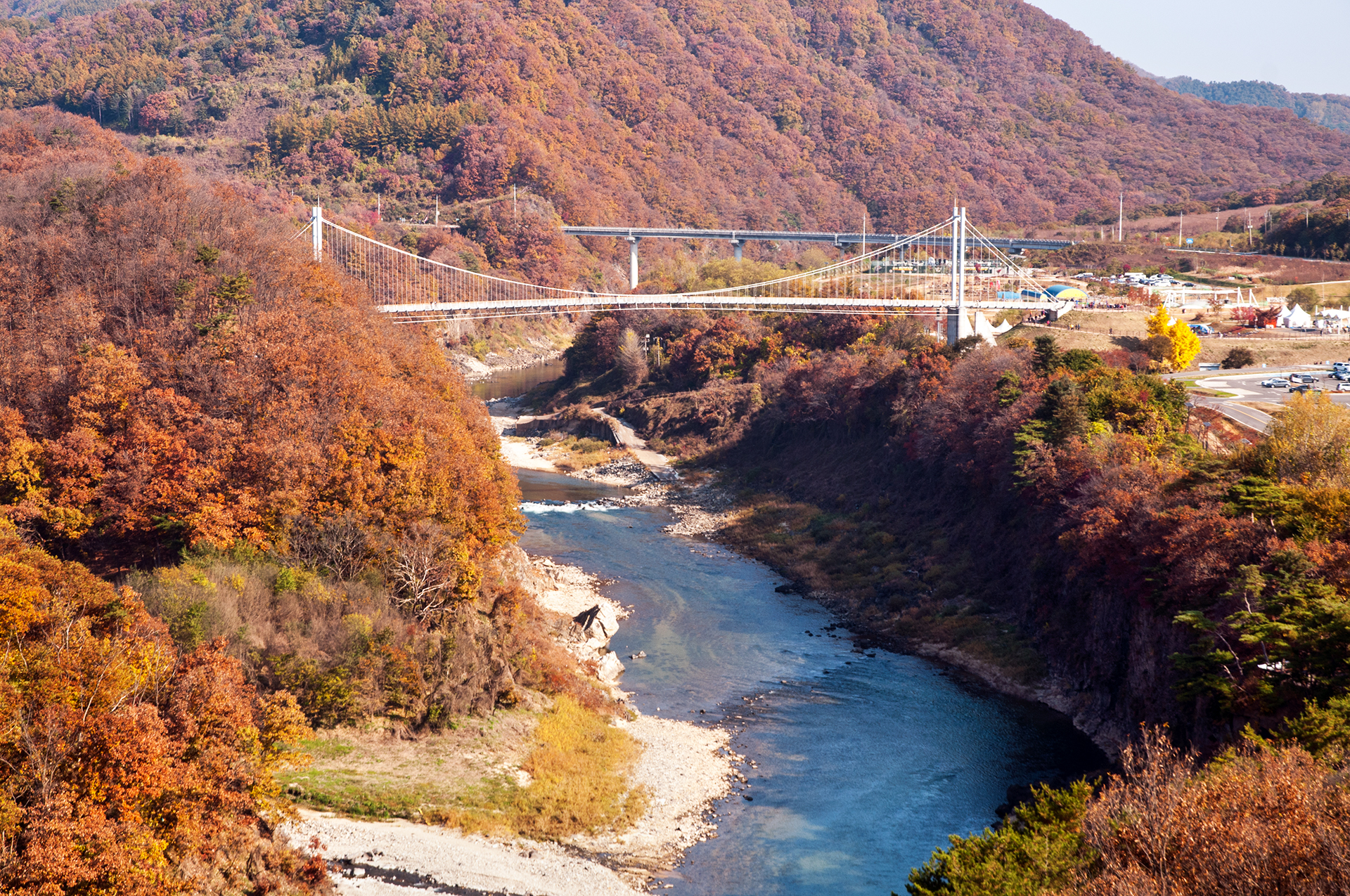 2024.09.08 포천에 위치한 국내 최대의 Y형 출렁다리가 9월 7일 한탄강 가든 페스타 개장과 함께 정식 개통되었다. 주차는 가람누리 전망대에 했는데 가든 페스타가 열리는 한탄강