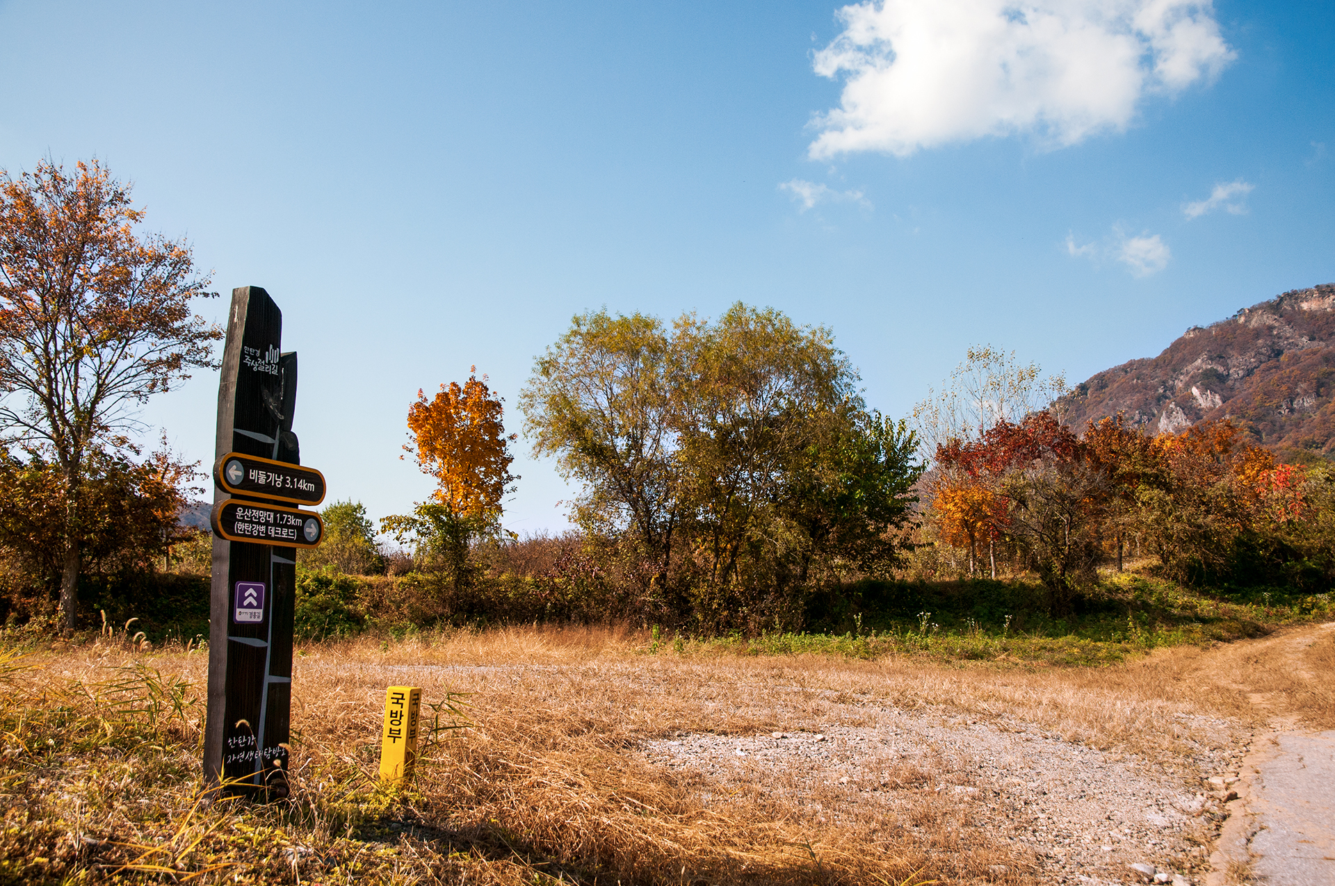 구리이길 종점은 운산전망대로 4.4km 남았다는 이정목이 세워져 있다.