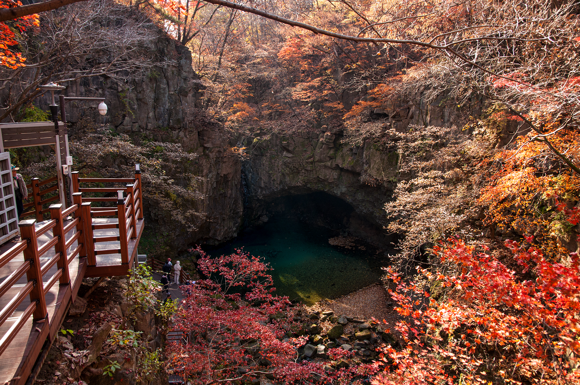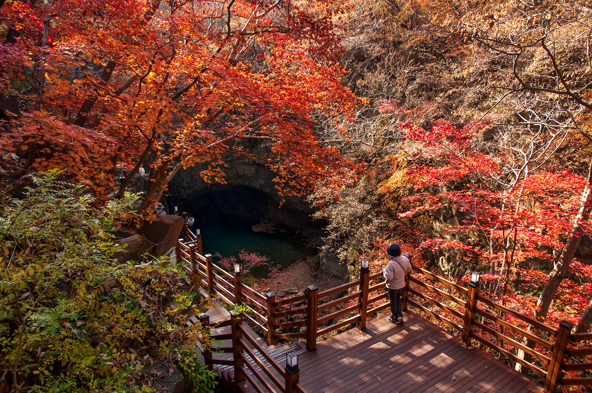 조금더 당겨 찍어보니 중간부분에 두번째 전망대가 절벽 위에 아슬아슬하게 설치되어 있는게 보인다.