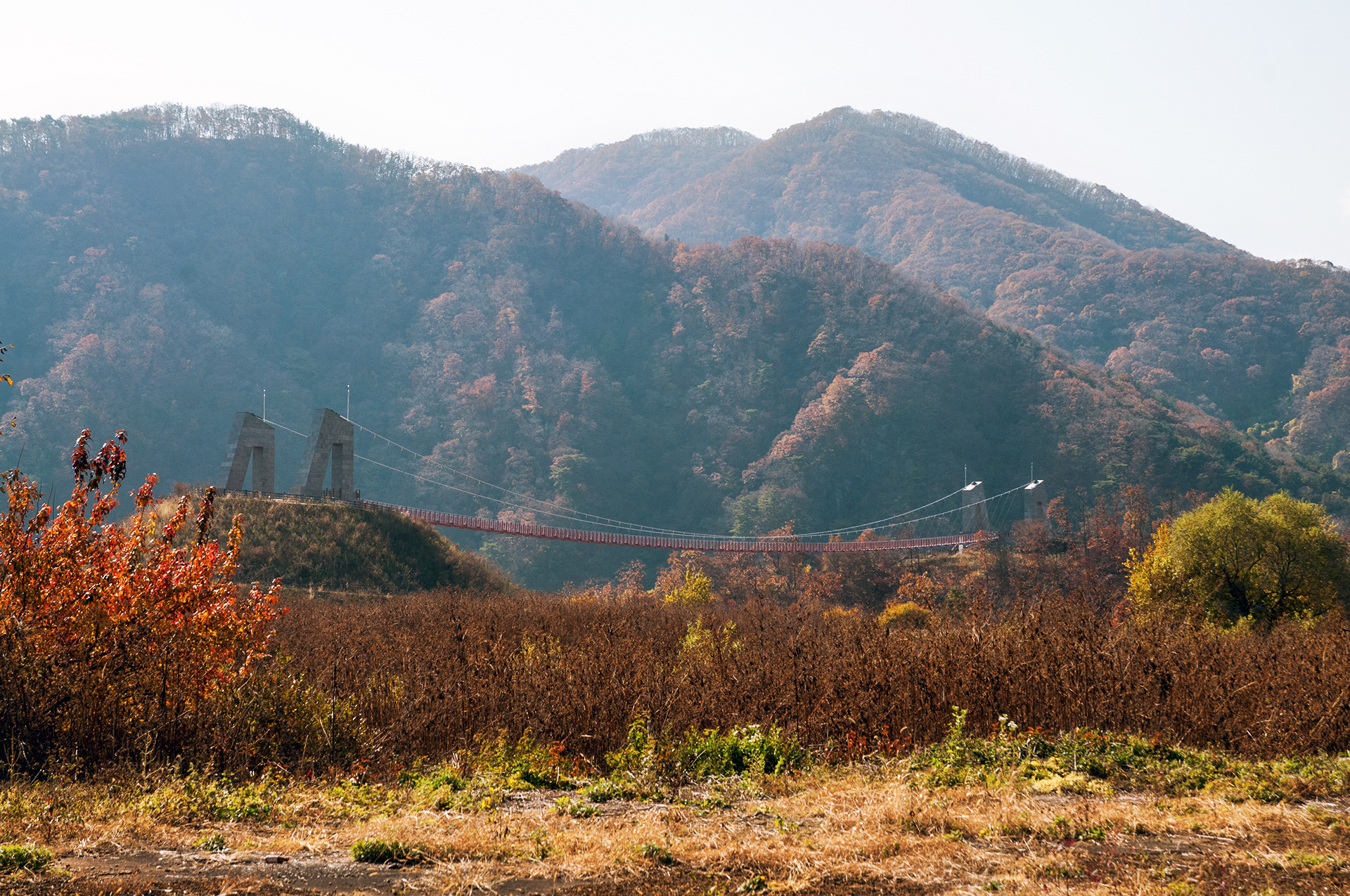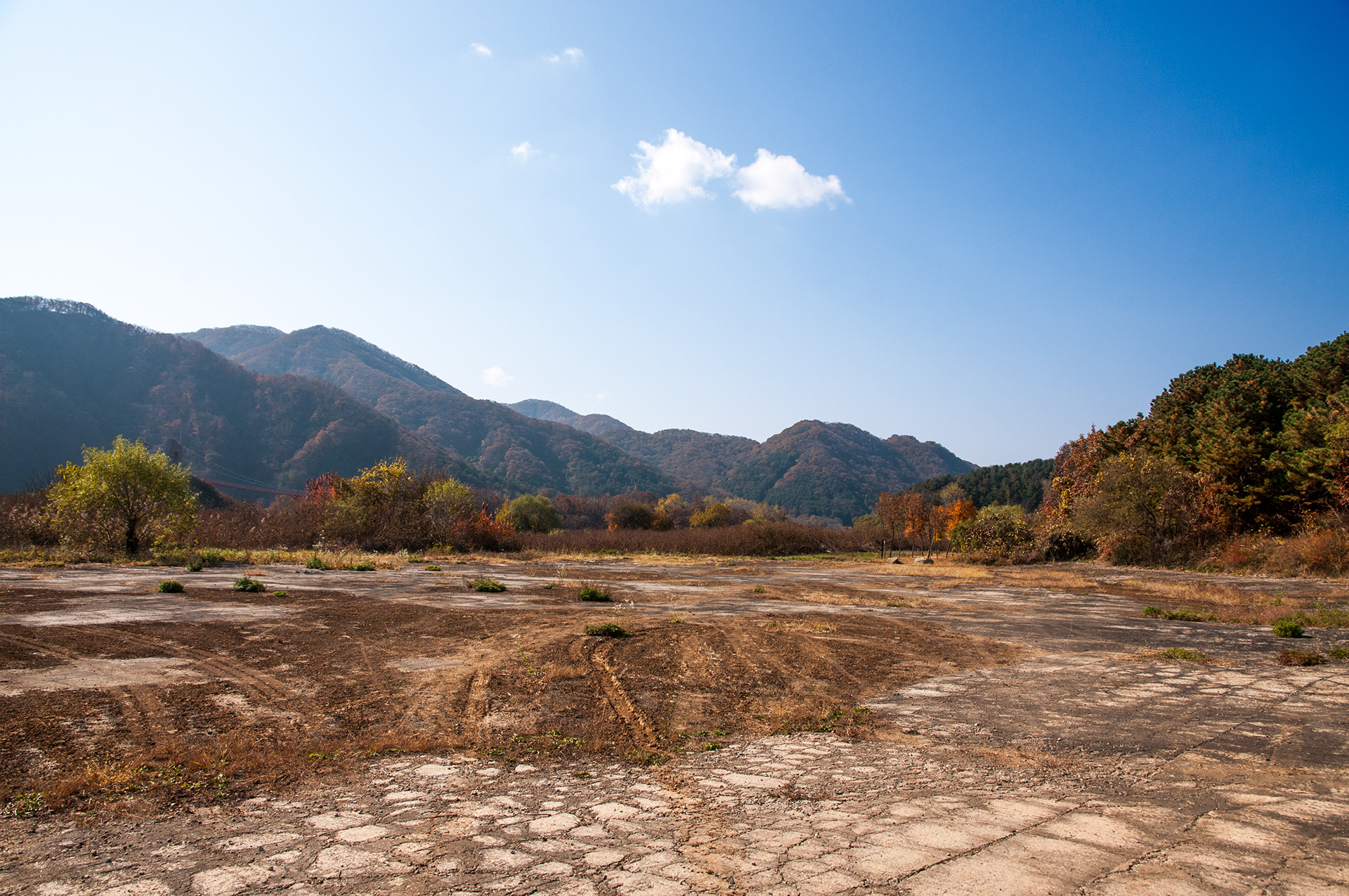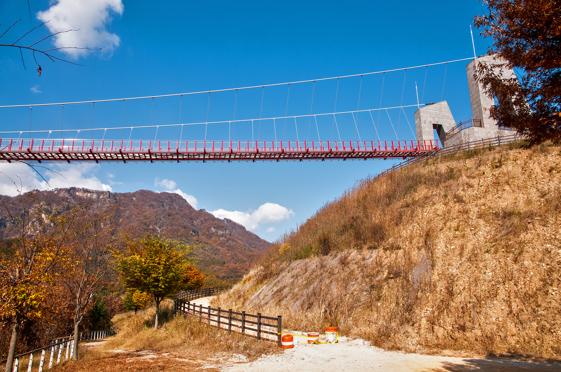 군 시설이 있었던 곳인듯, 넓은 공터에 도착하니 멀리 제2의 하늘다리로 불리는 다리가 보이기 시작한다.