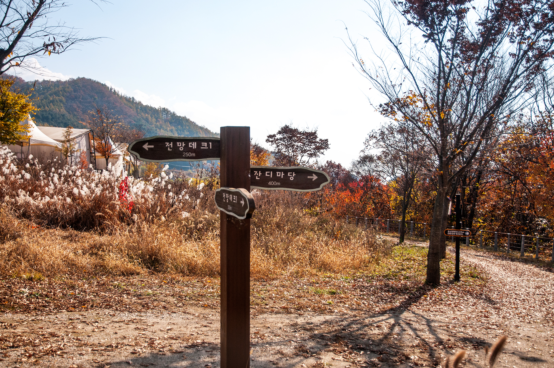 캠핑장 앞 삼거리에서 잔디마당 방향으로 가면 된다.