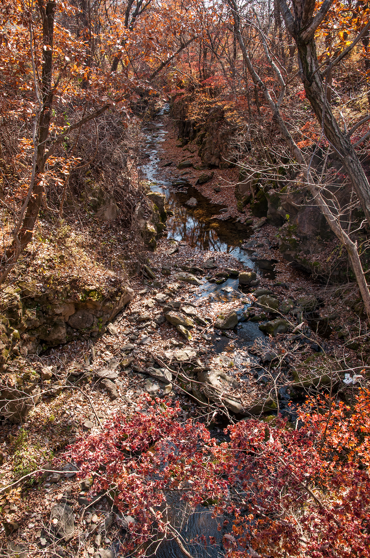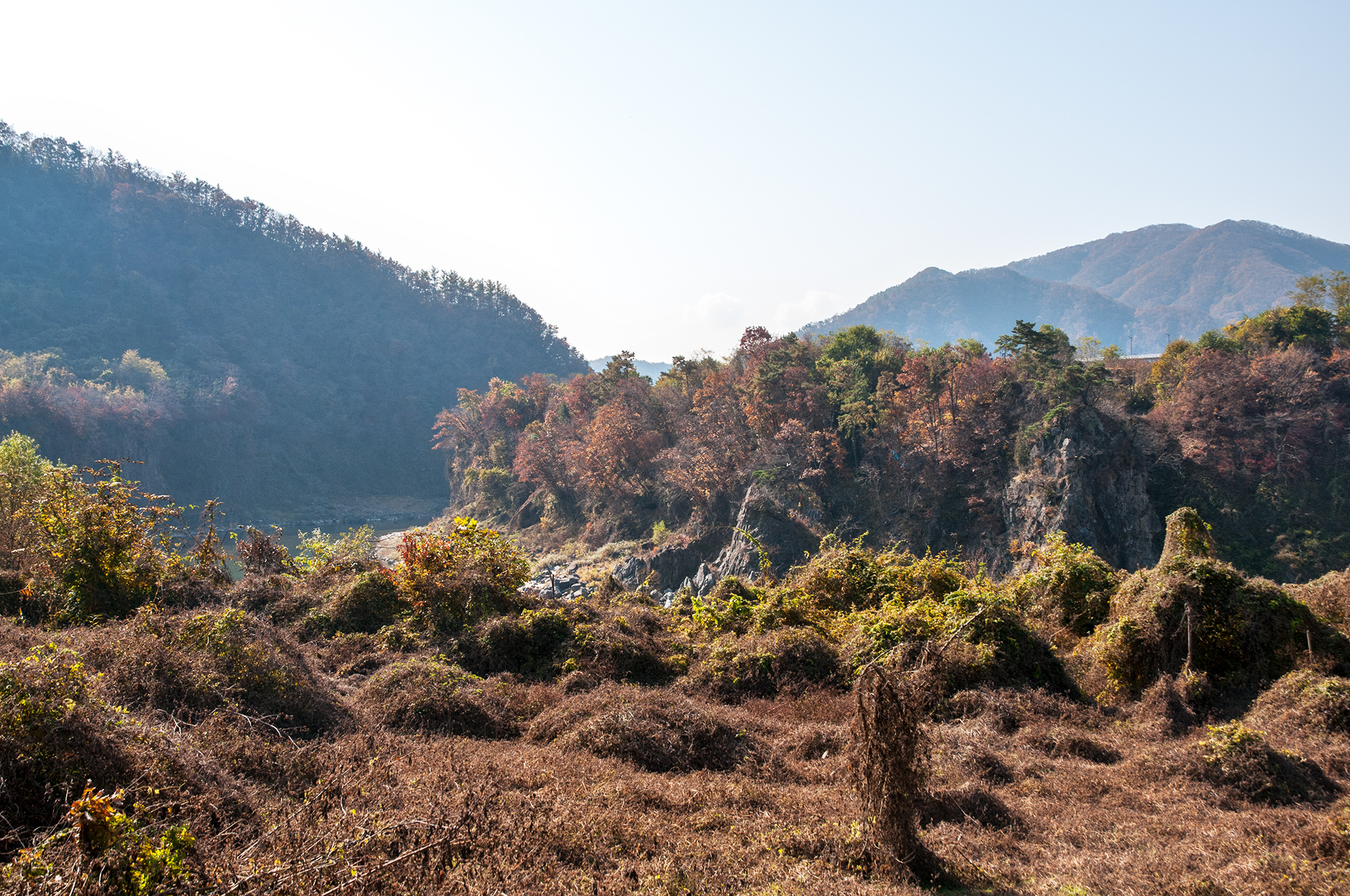 구라이골의 좁은 계곡이 길게 이어져 있다.