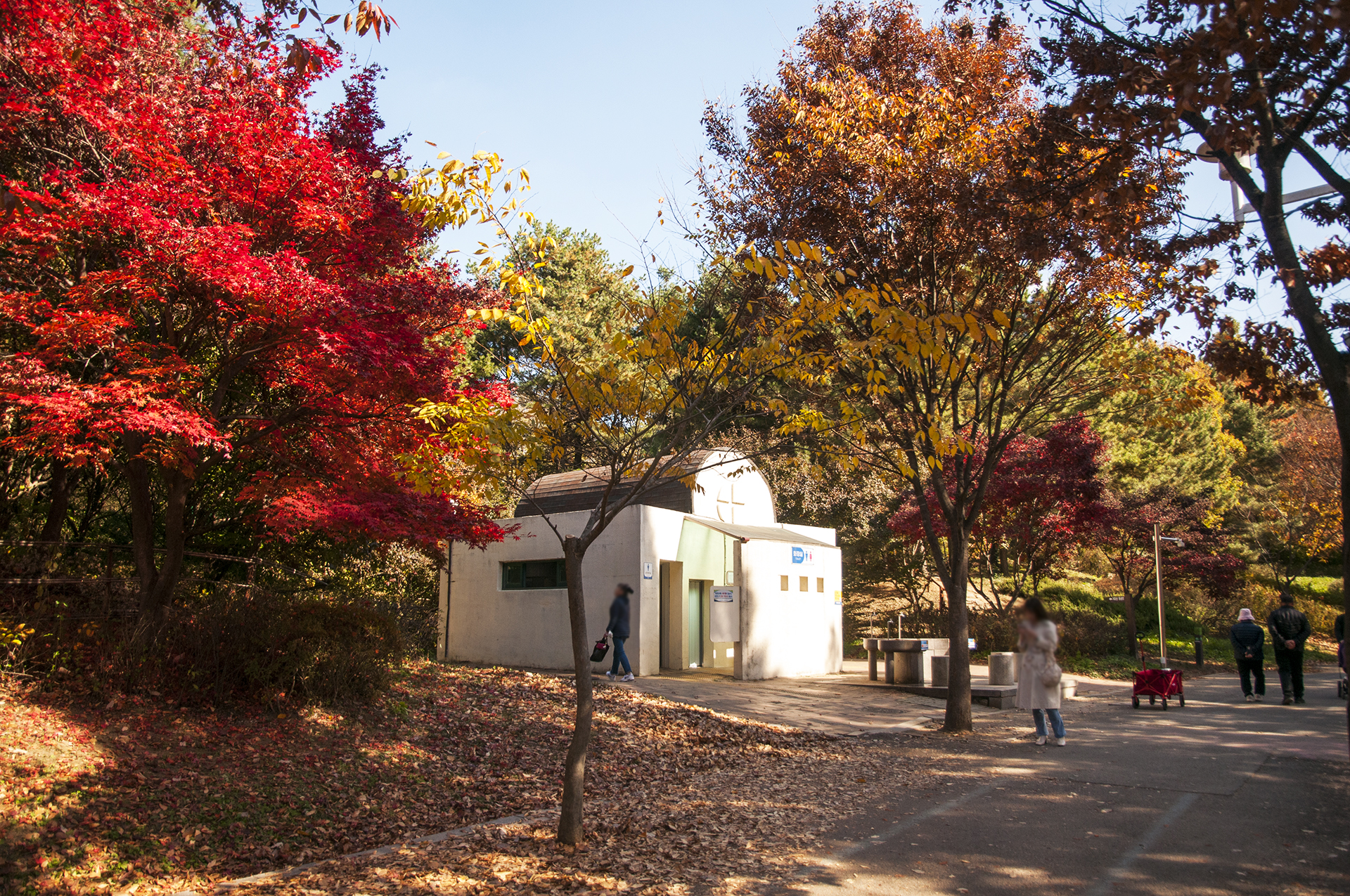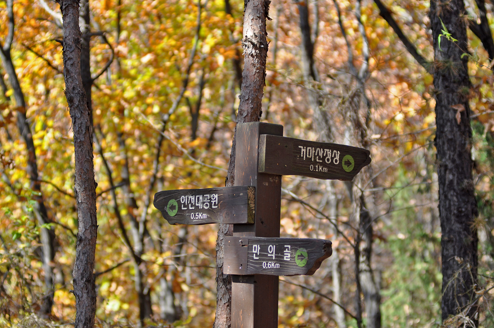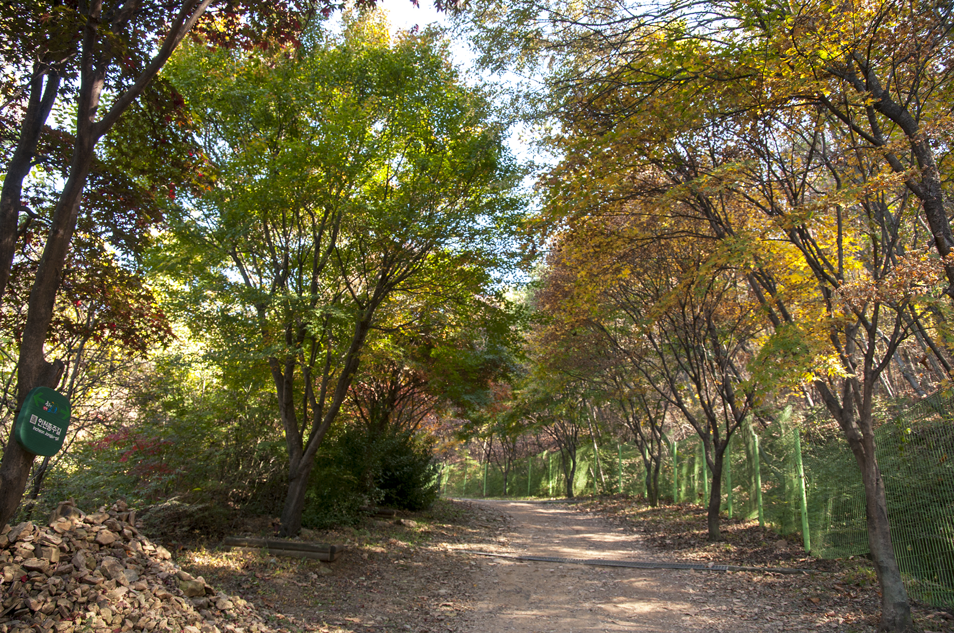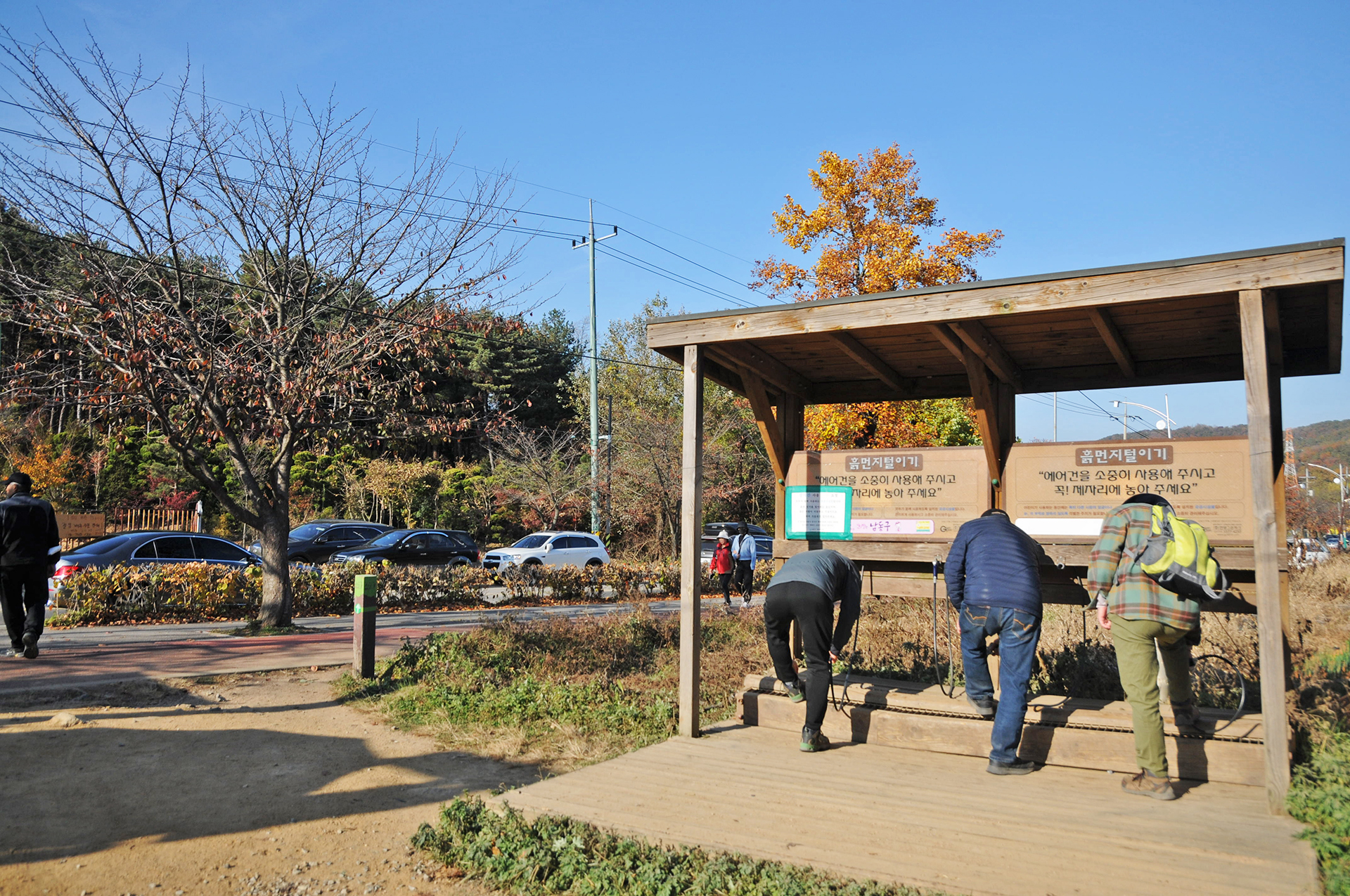메타세콰이어길에 있는 화장실 옆에서 거마산 등산로를 찾을 수 있다.