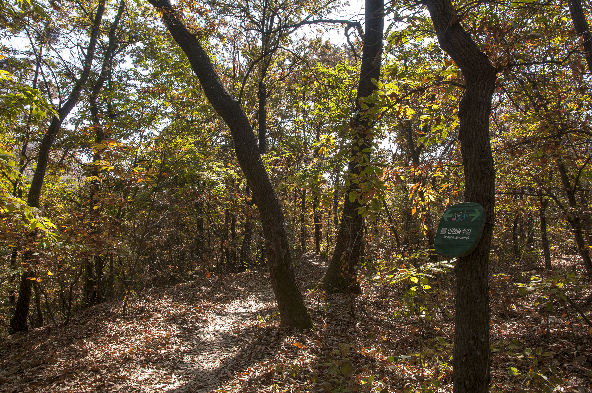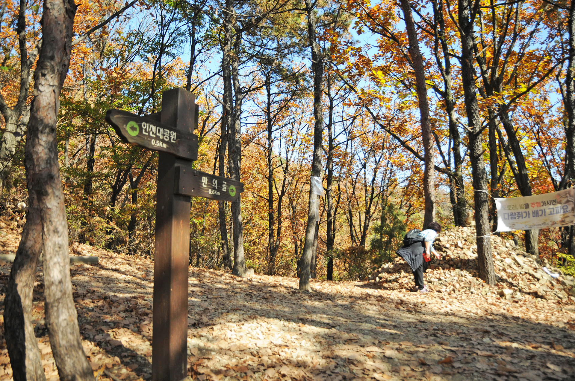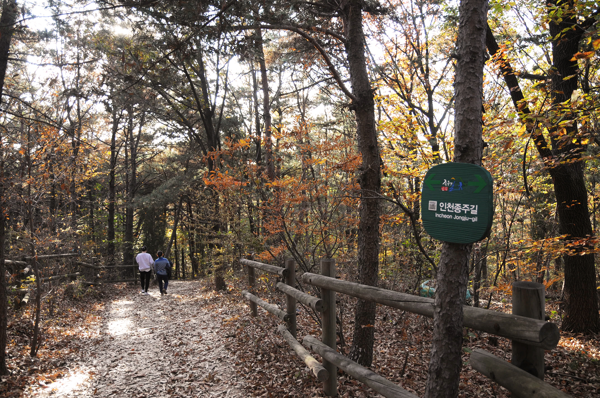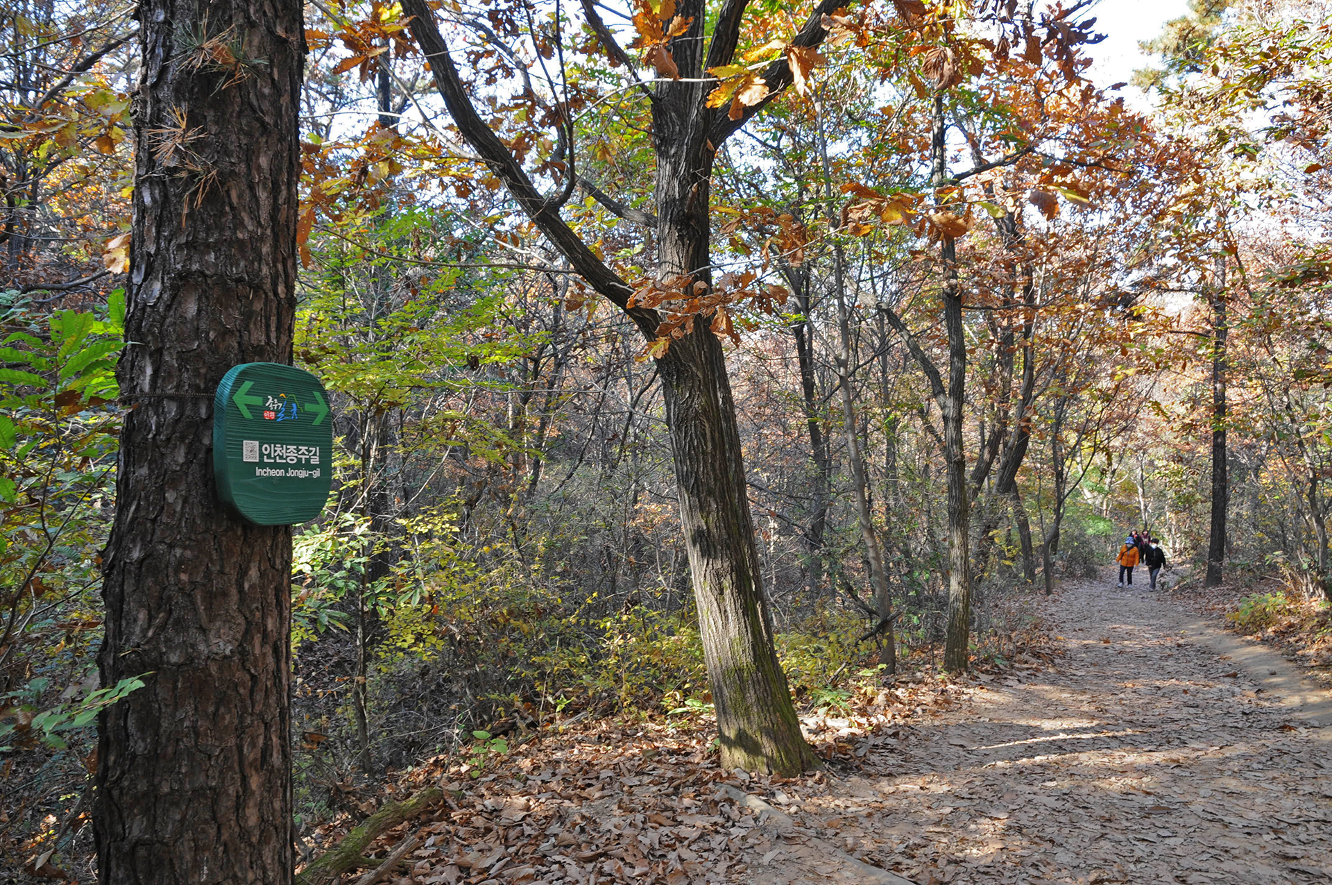 인천대공원 잔디광장 부근으로 들어오면 바로 좌측에서 종주길 등산로를 만나게 된다.