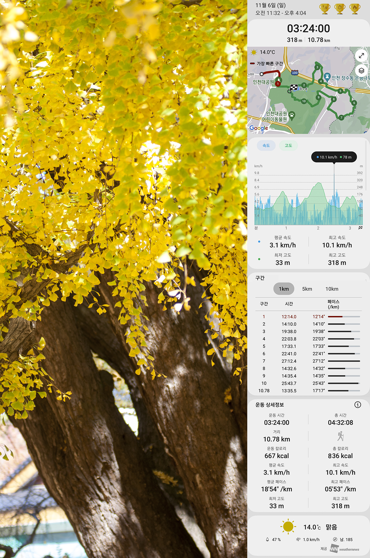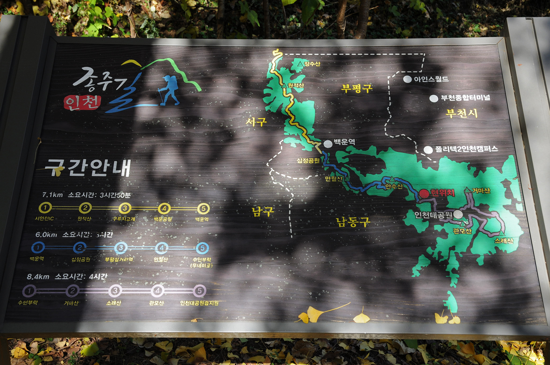 만의골 장수동 은행나무가 코스에 포함되어 있어 걷게 되었던 인천종주길 5코스, 오늘도 좋은 길 하나 잘 걷고 간다.