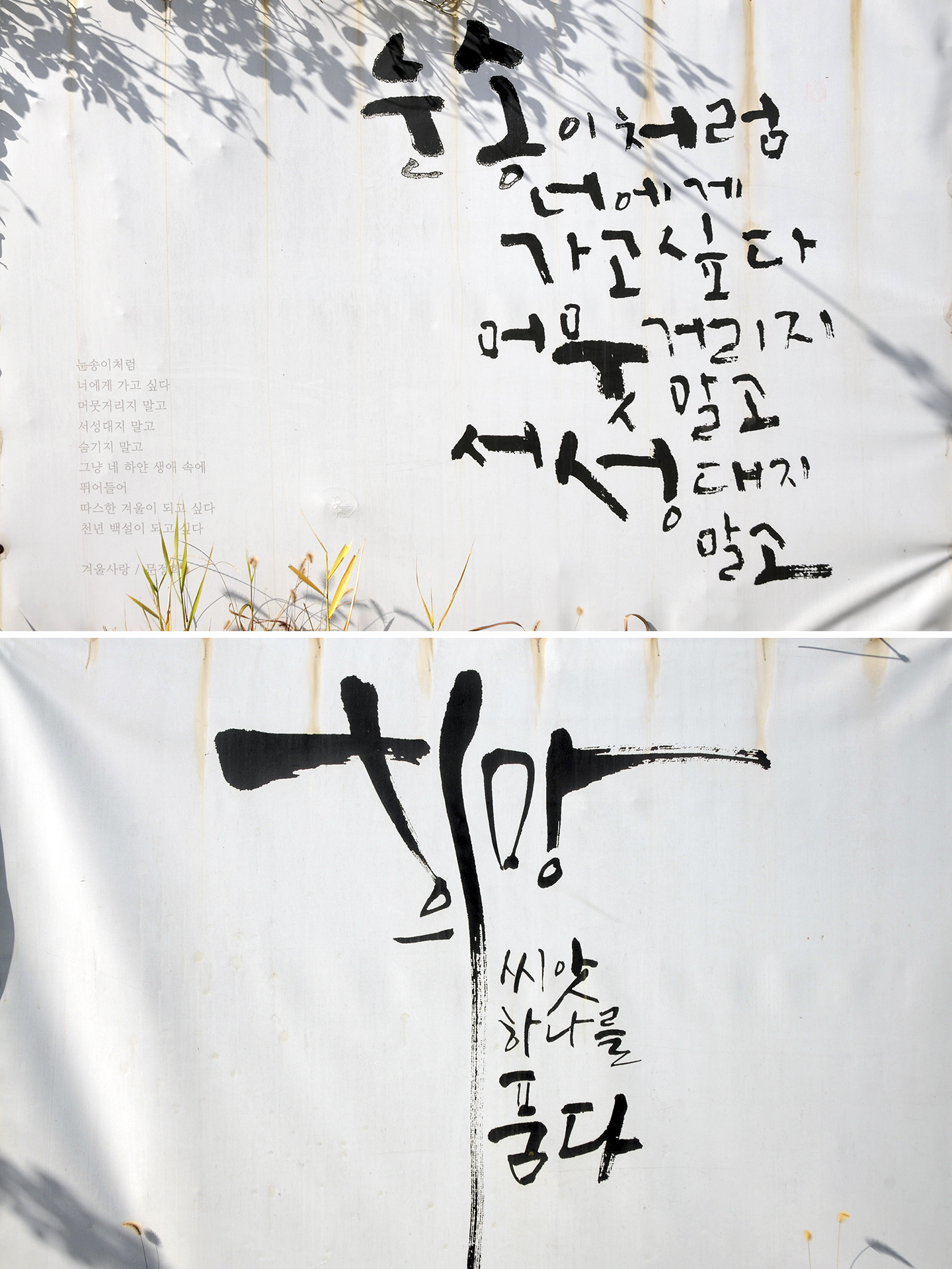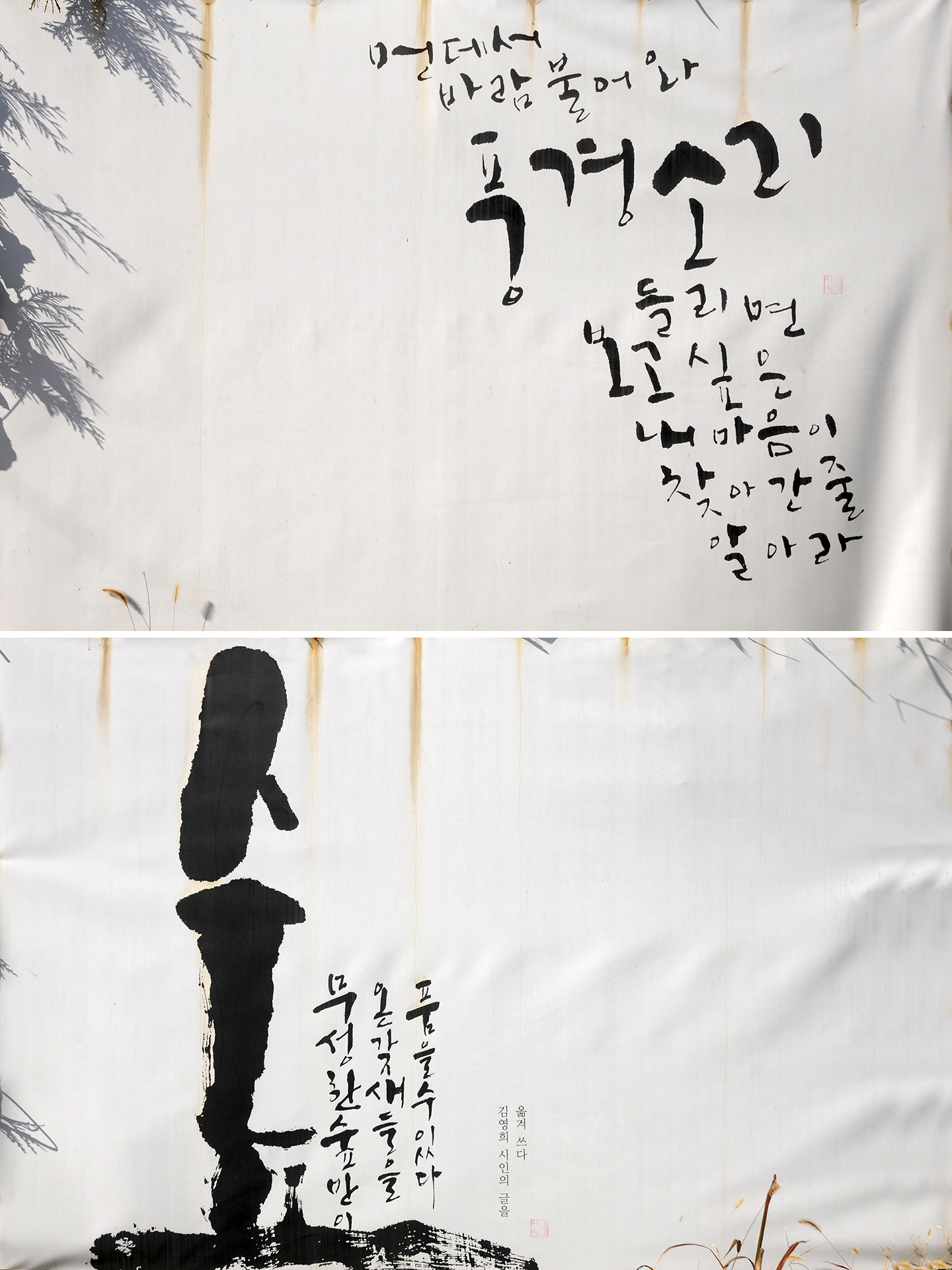 도로가 담장에서 여러 캘리그라피 작품을 볼수 있으니 잠깐 감상도 해보고,,