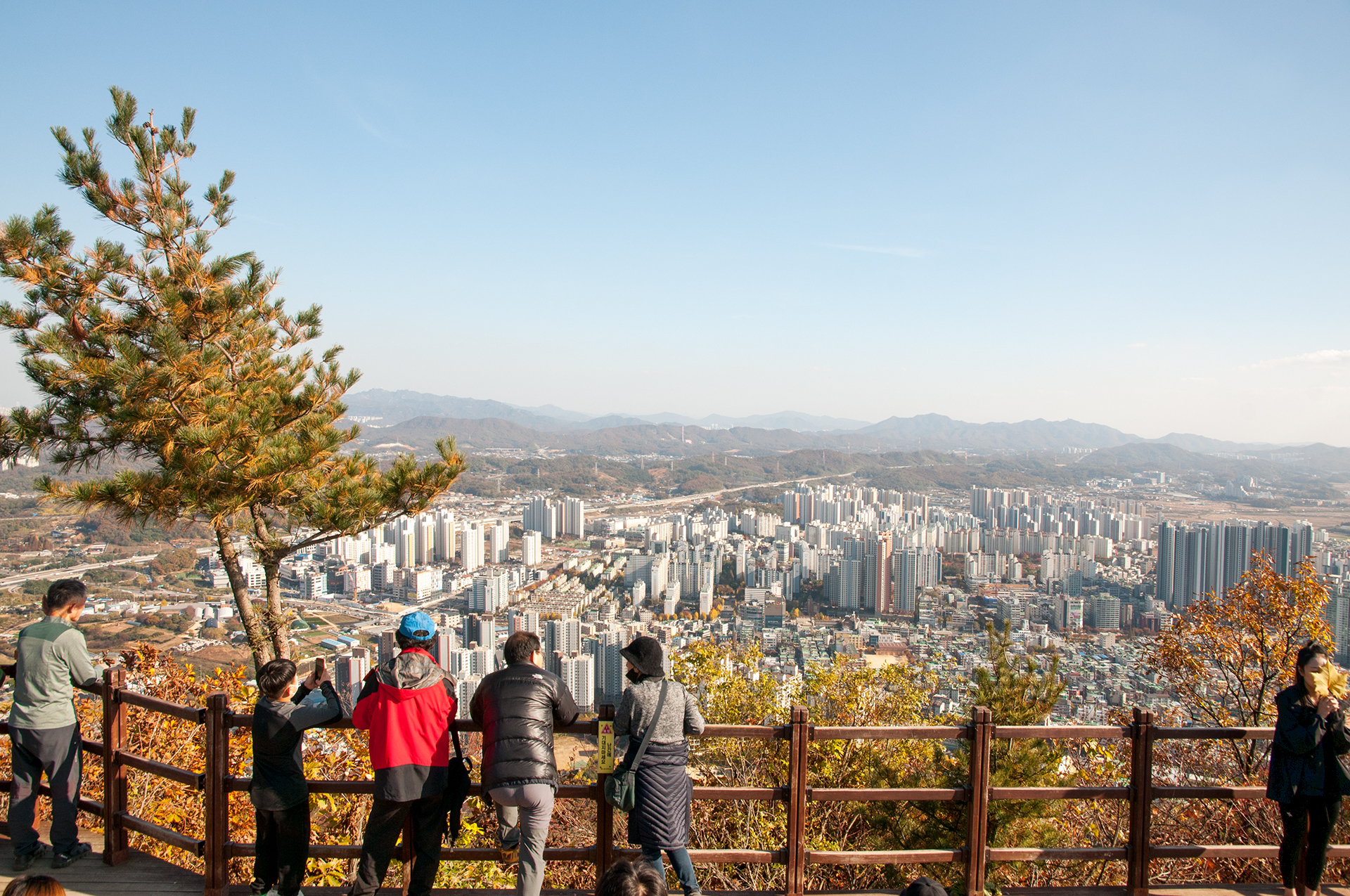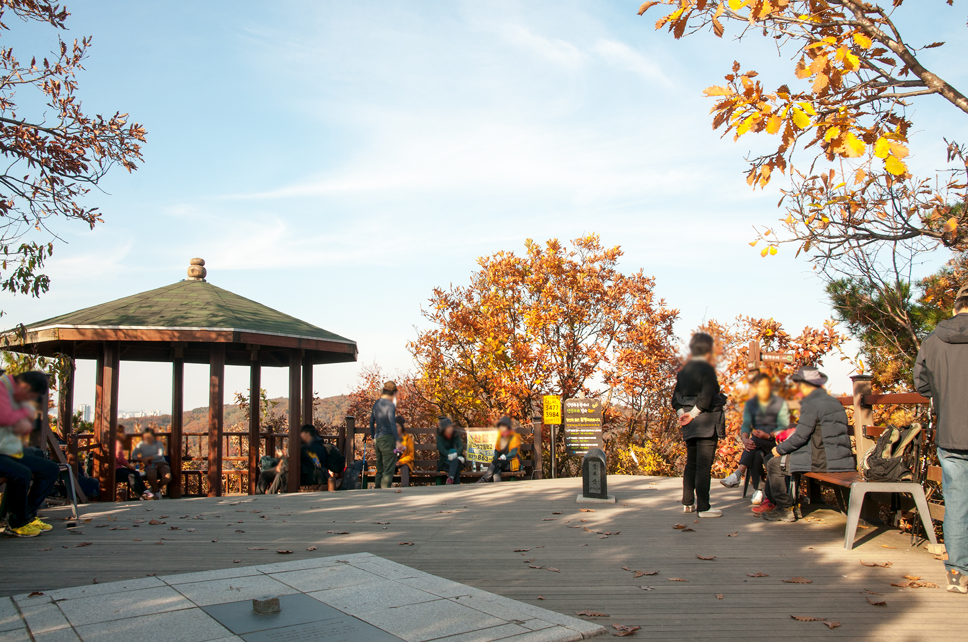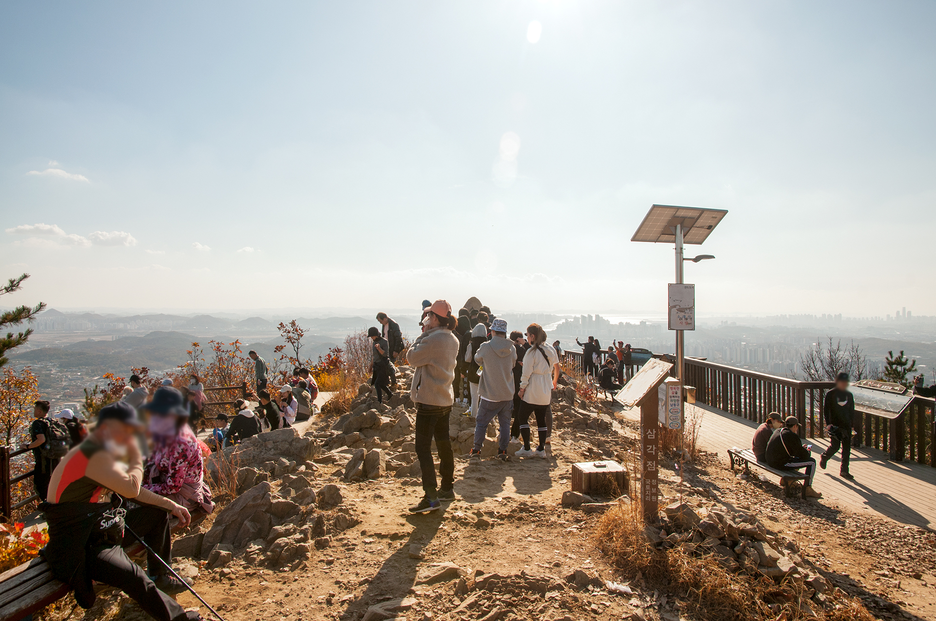 해발 299.4m인 정상에는 많은 사람들로 붐볐고, 정상석 앞에는 인증사진을 찍기 위해 줄을 서서 기다리는 모습도 보였다.