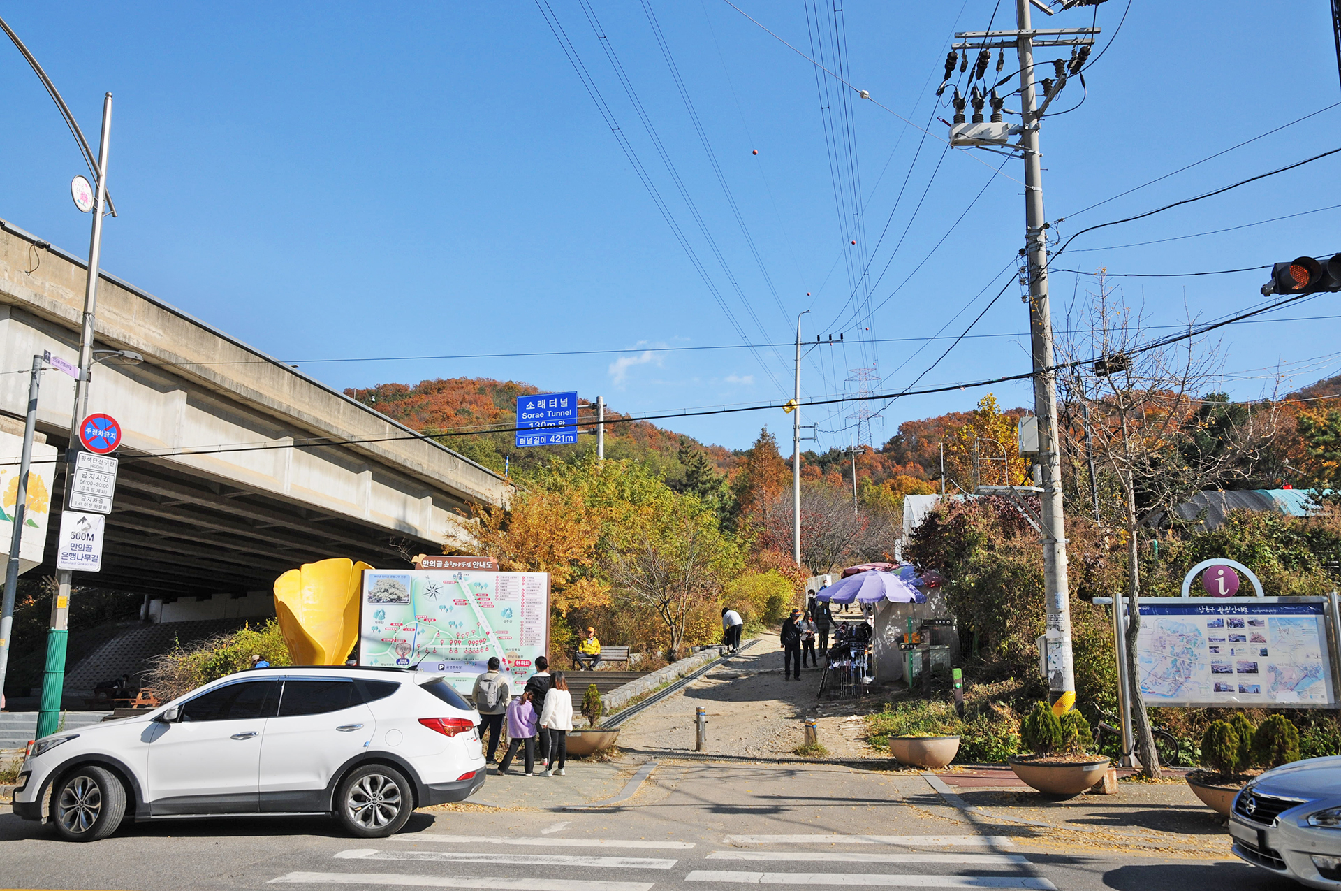 소래터널이 뚫여있는 고속도로 아래를 따라 끝까지 오면 소래산 입구가 있다.