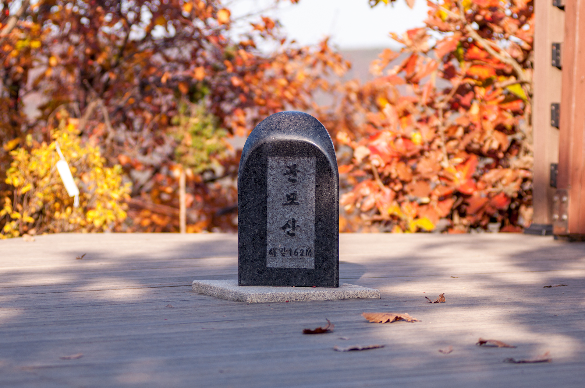 데크로 된 전망대 한쪽에 관모산 정상석이 박혀 있다.