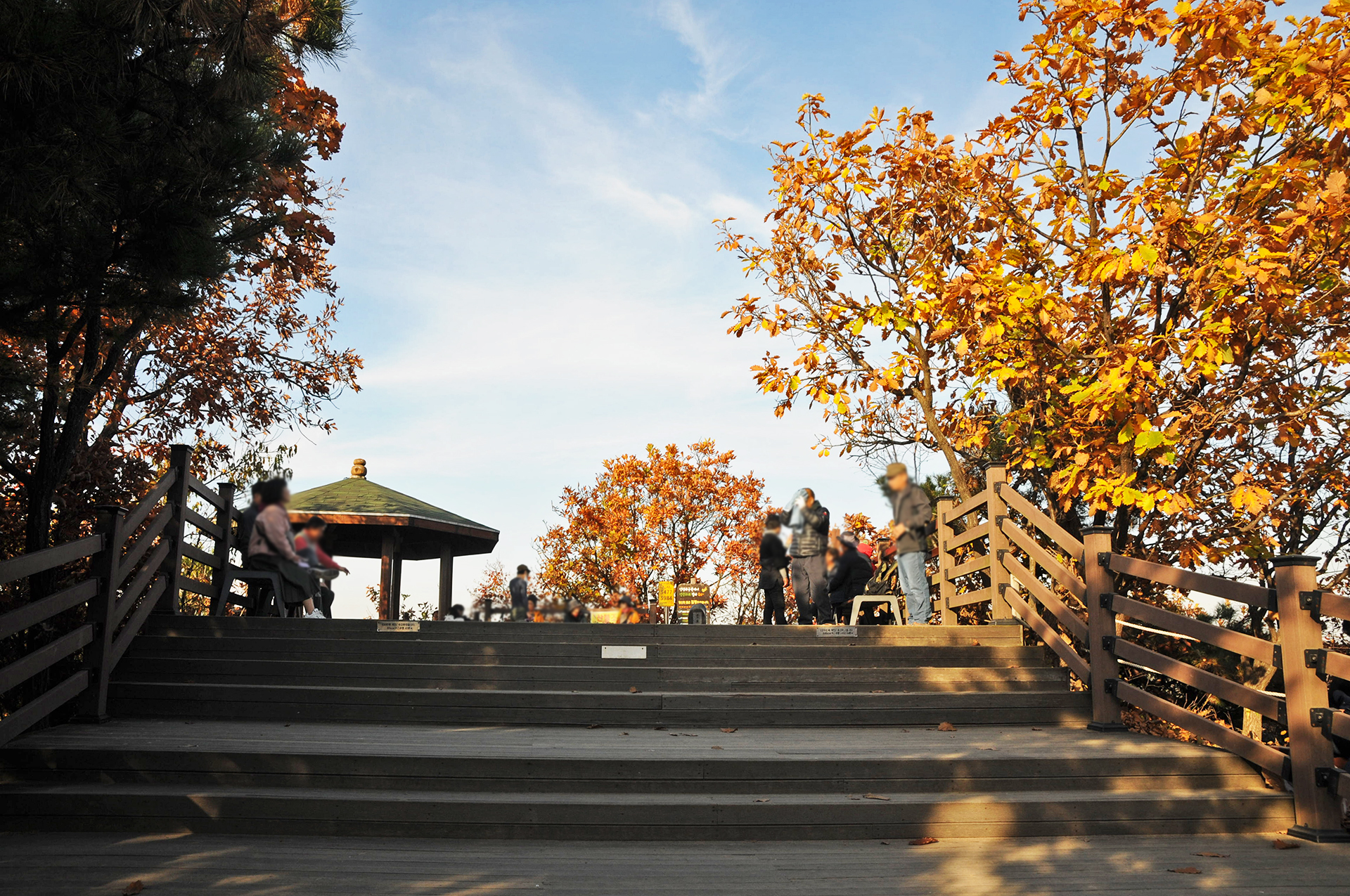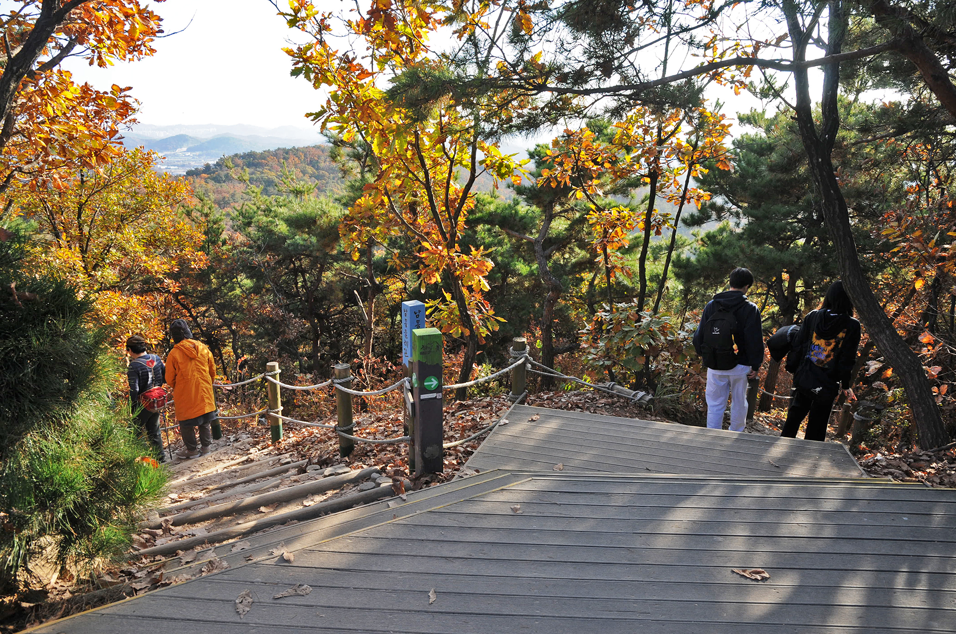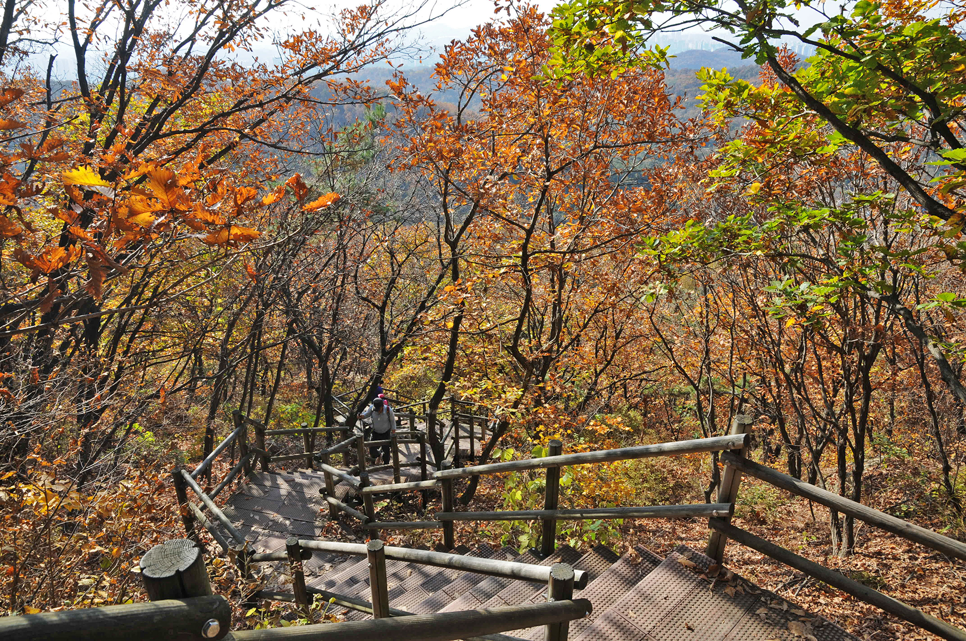 가파르게 계단길을 내려가는 코스로 인천대공원 어울정원 옆 야외음악당 잔디광장 부근까지 내려가야 한다.