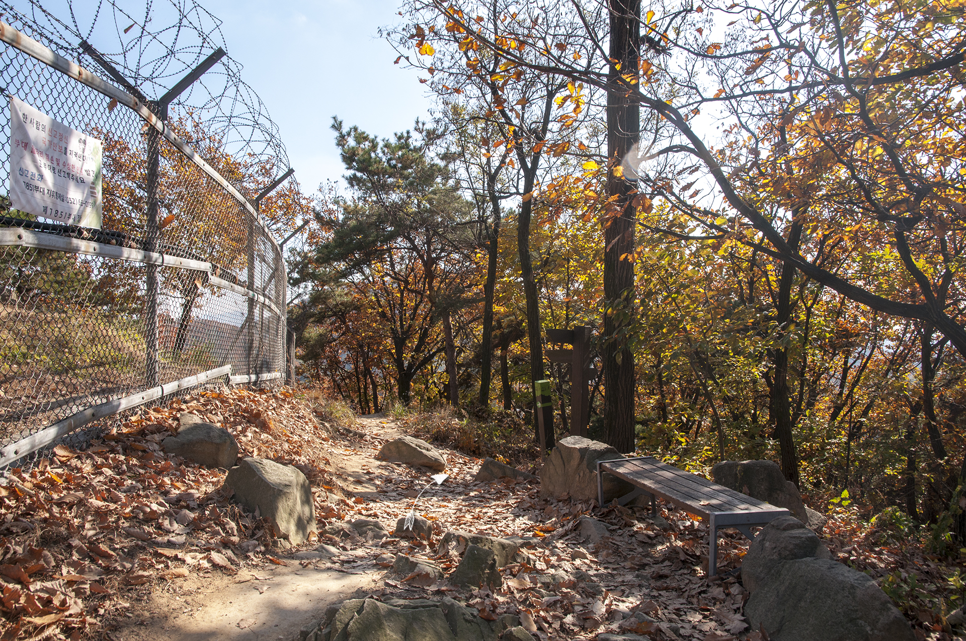 종주길은 철책 울타리를 따라 우측길로 이어진다.