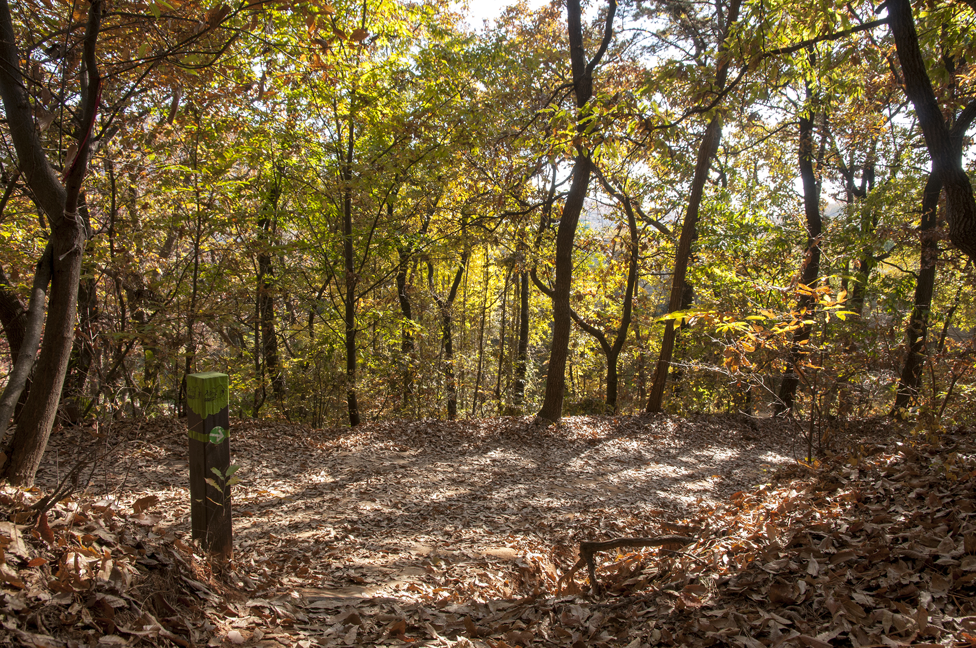 종주길 이정목이 안내하는 길을 따라 등산로로 들어선다.