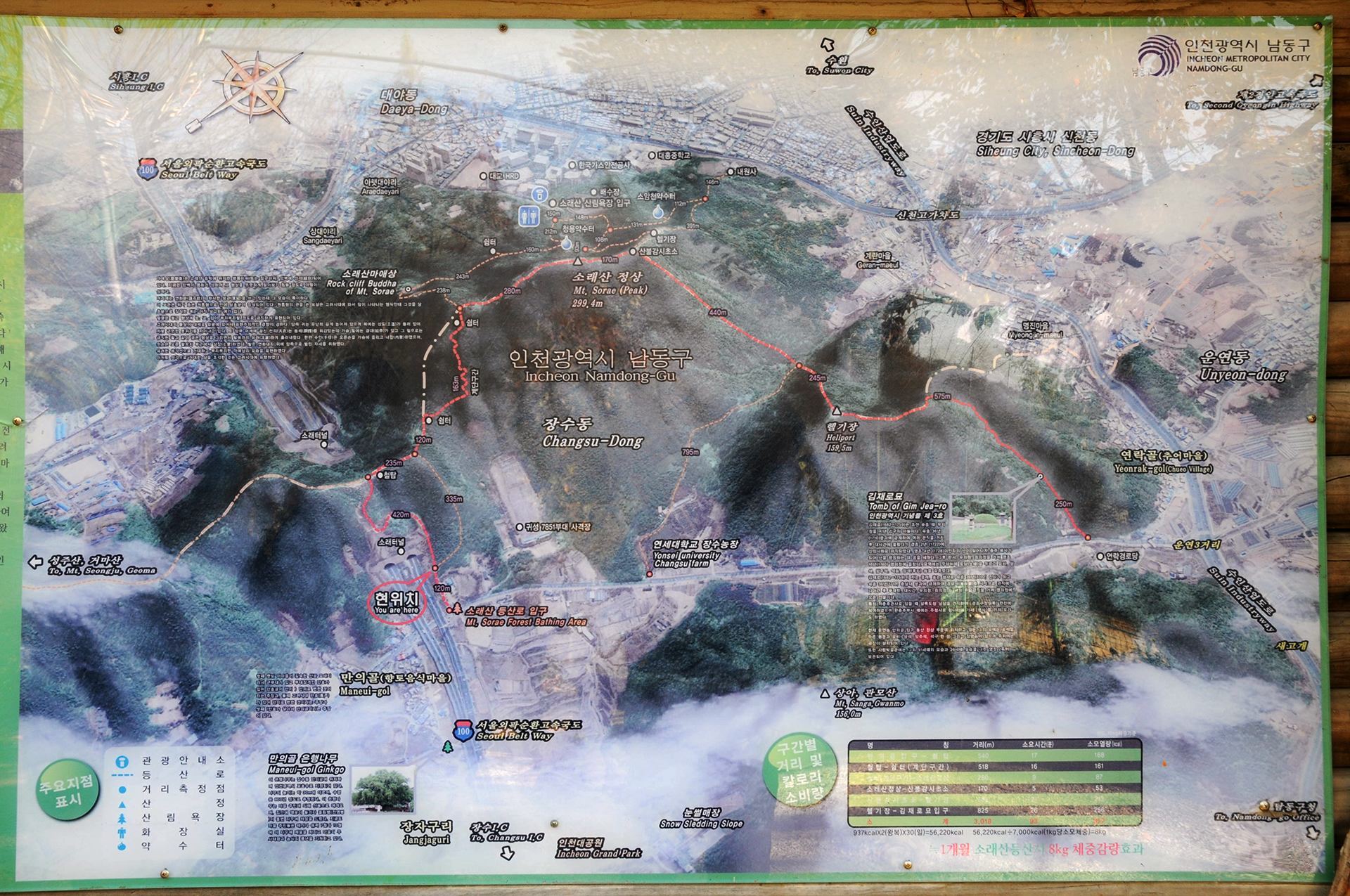 버스종점과 부원농원을 지나 좌회전, 수현로를 따라 100m 정도 진행하면 인천종주길 5코스 출발지점이 나온다.
