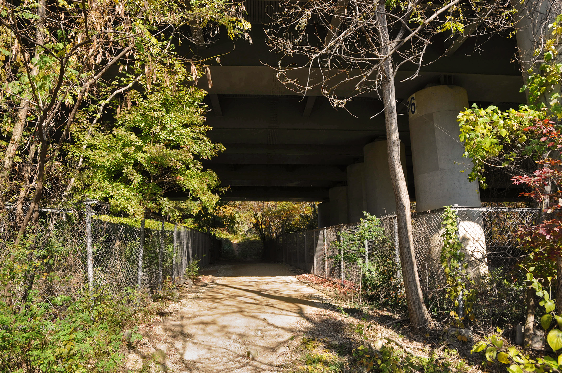 맹꽁이 대체서식지를 지나 수도권제1순환고속도로 아래를 통과하면서 등산로가 이어진다.