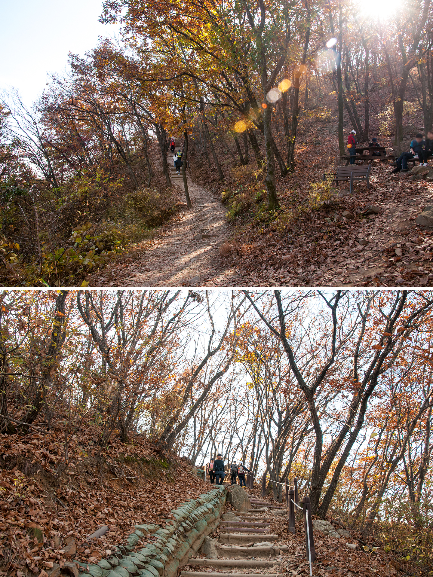 쉼터 이후에도 한동안 계단길이 이어지는데 칼로리 보충이 도움이 되었는지 무리없이 올라왔다.