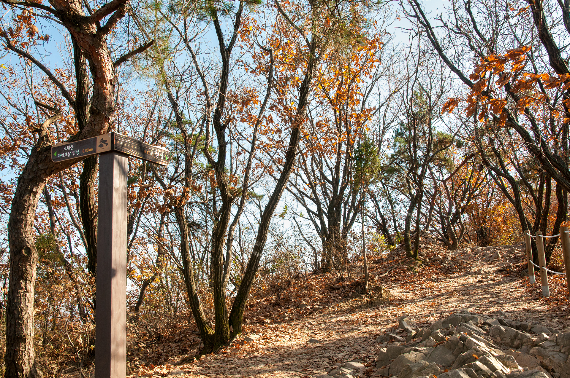 그냥 지나치기 쉬운 곳인만큼 눈여겨 봐야 한다. 종주길임을 확인하고 관모산으로 들어선다.