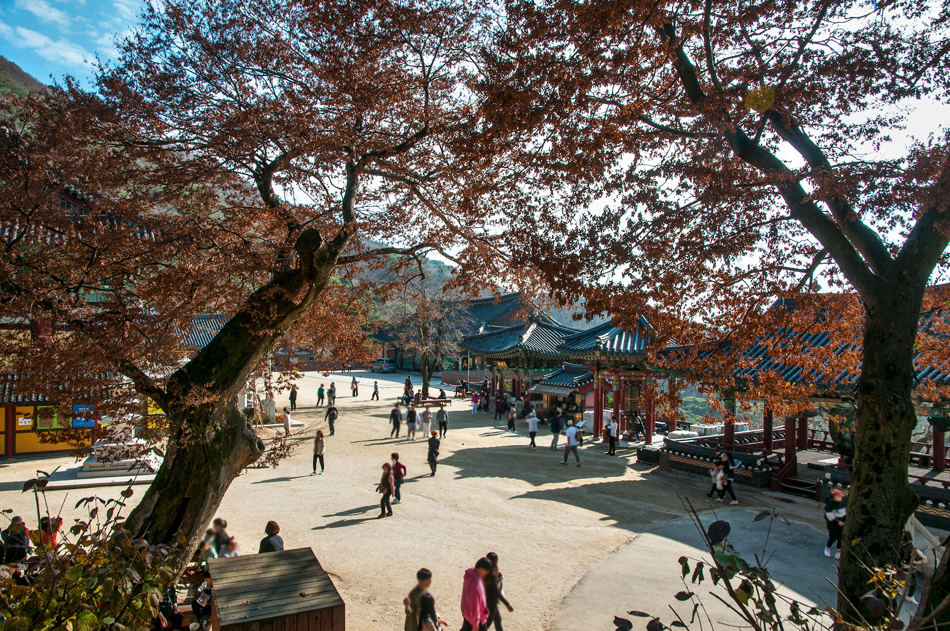 우측에는 수령 약600년 된 은행나무 아래 특산물 판매점과 용품점, 보문카페가 위치해 있다.