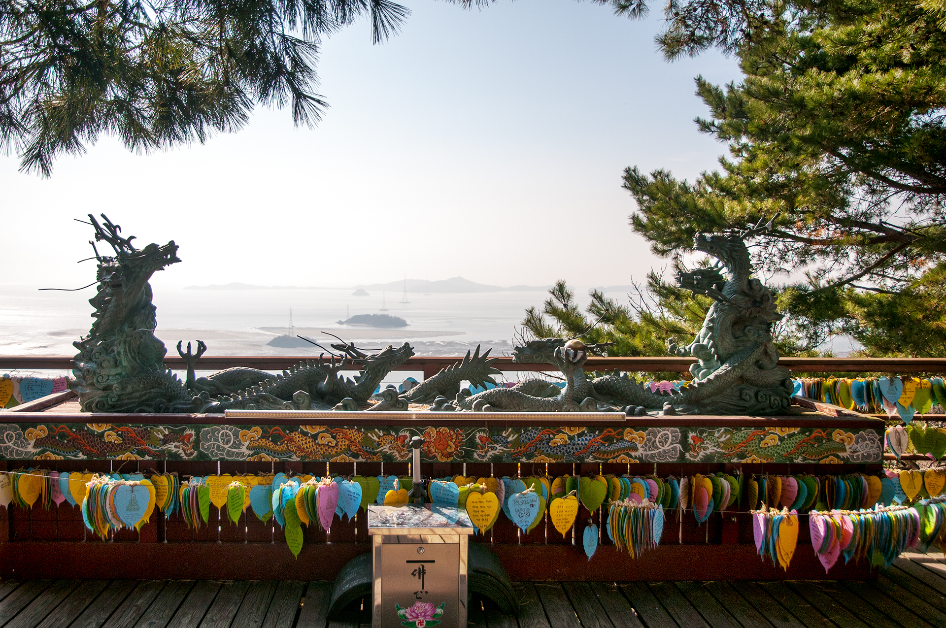 서해 바다의 탁트인 시야가 한눈에 들어오는 용왕단에서는 각자의 소중한 발원을 담아 소원지를 써서 유리병 속에 100일간 보관을 한후 100일이 지난뒤 소원지를 꺼내 스님이 축원을 하고 소전을 하게 된다.