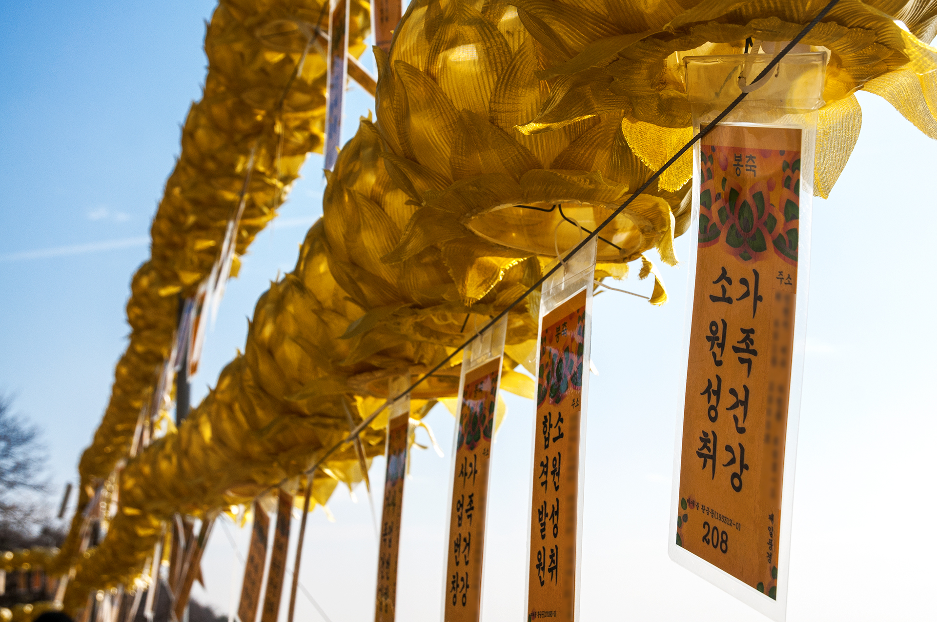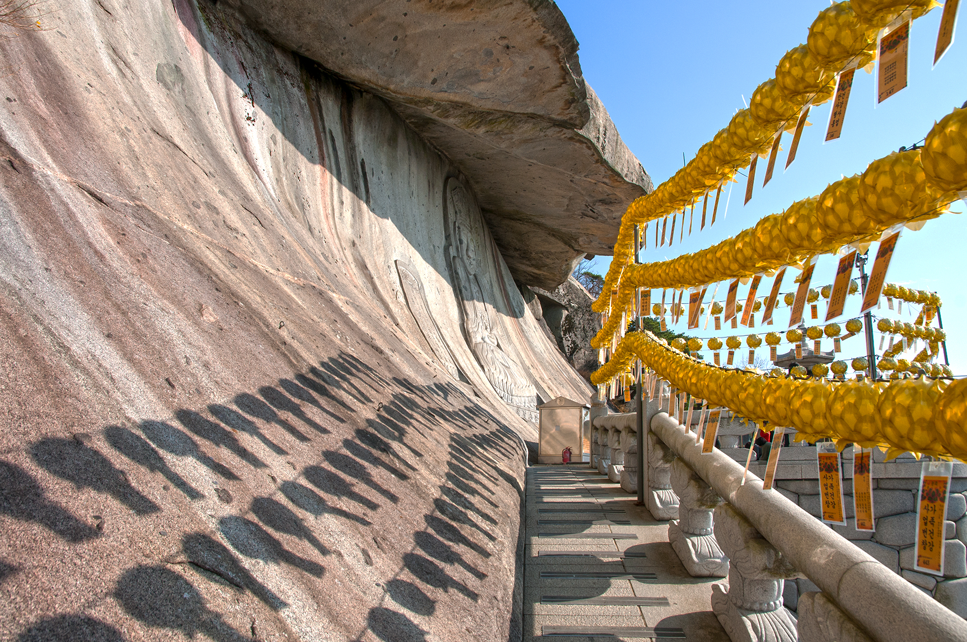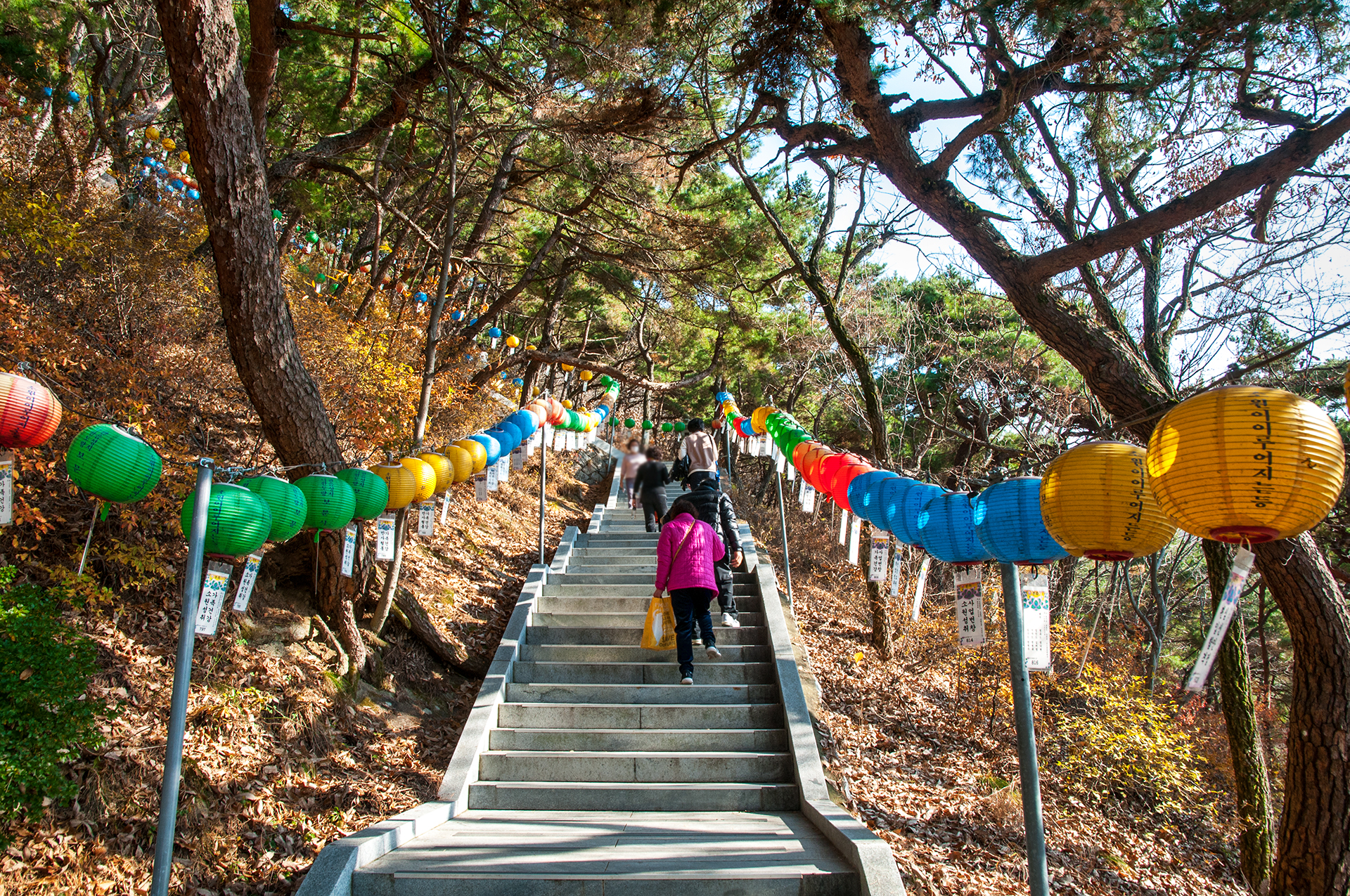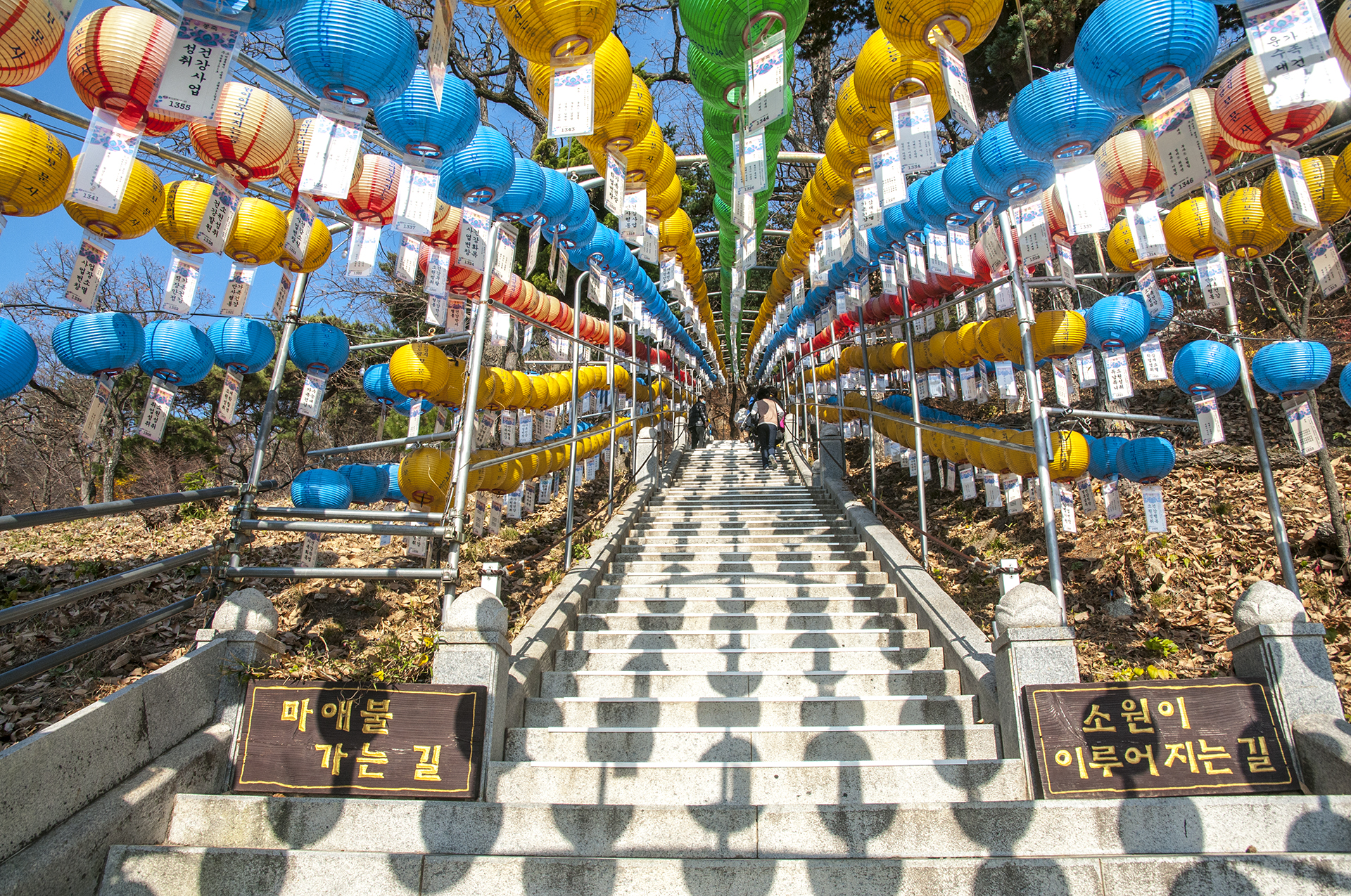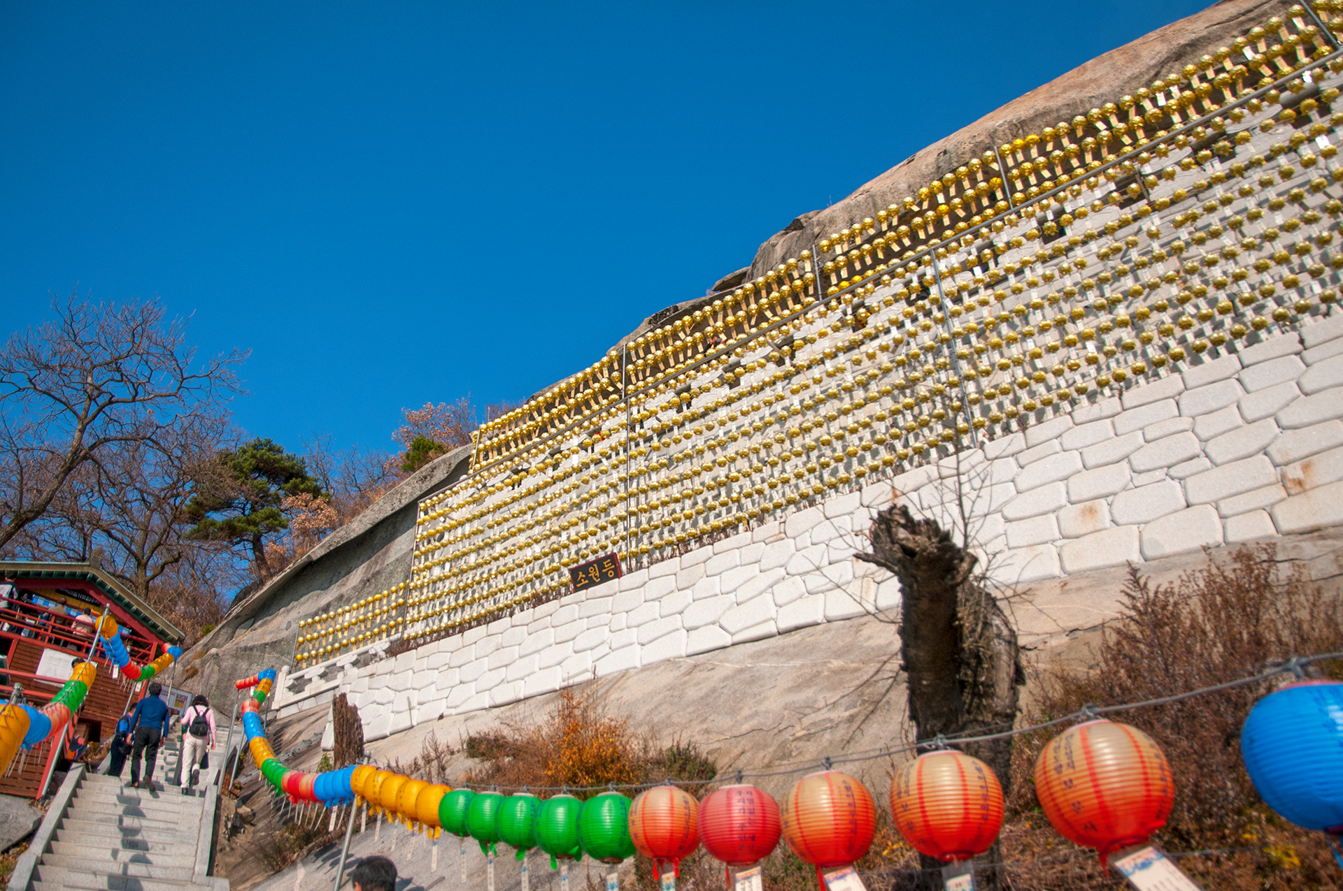 올라가는 내내 계단 옆으로는 소원이 이루어지는 등이 줄지어 매달려 있다.