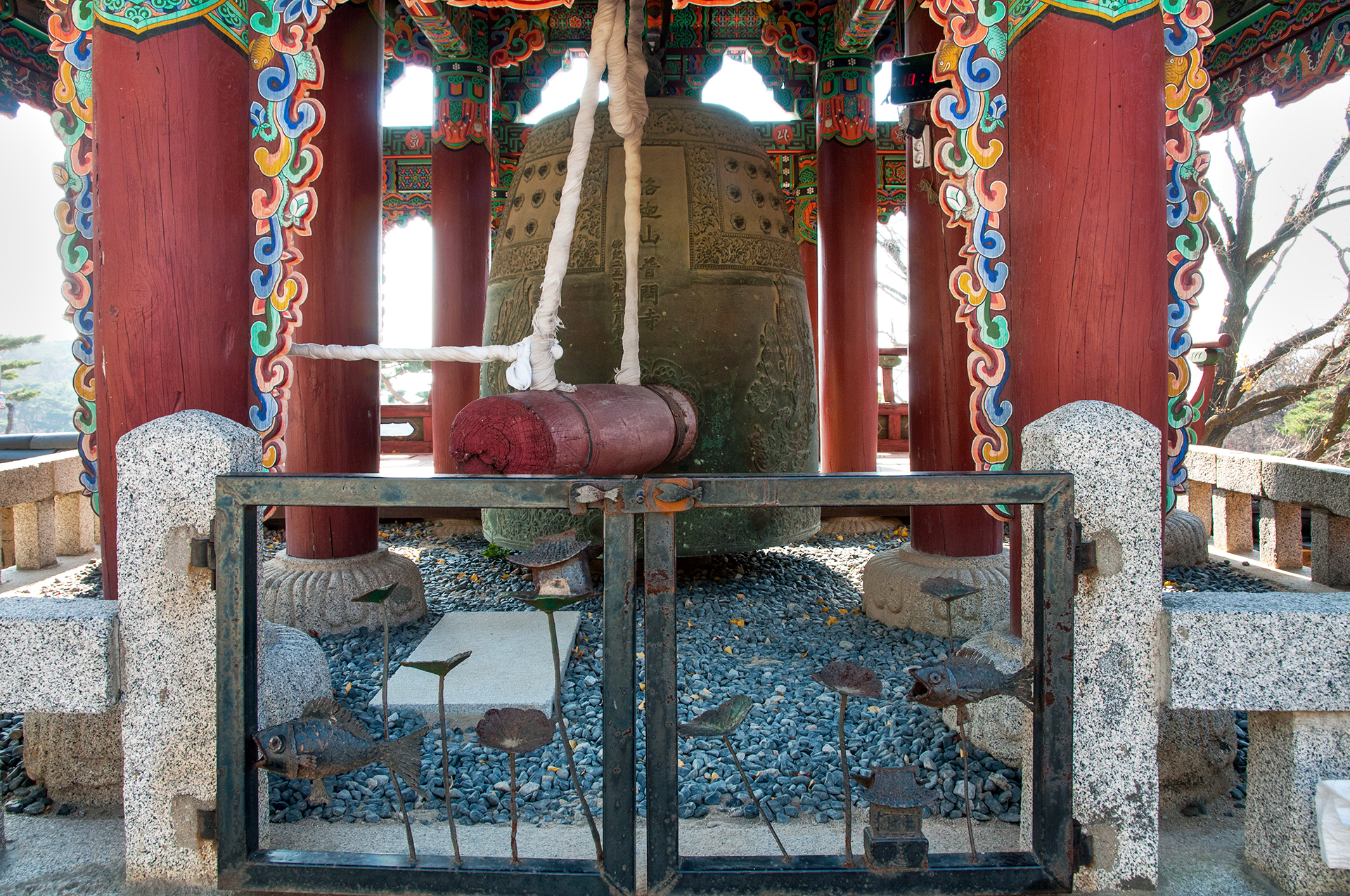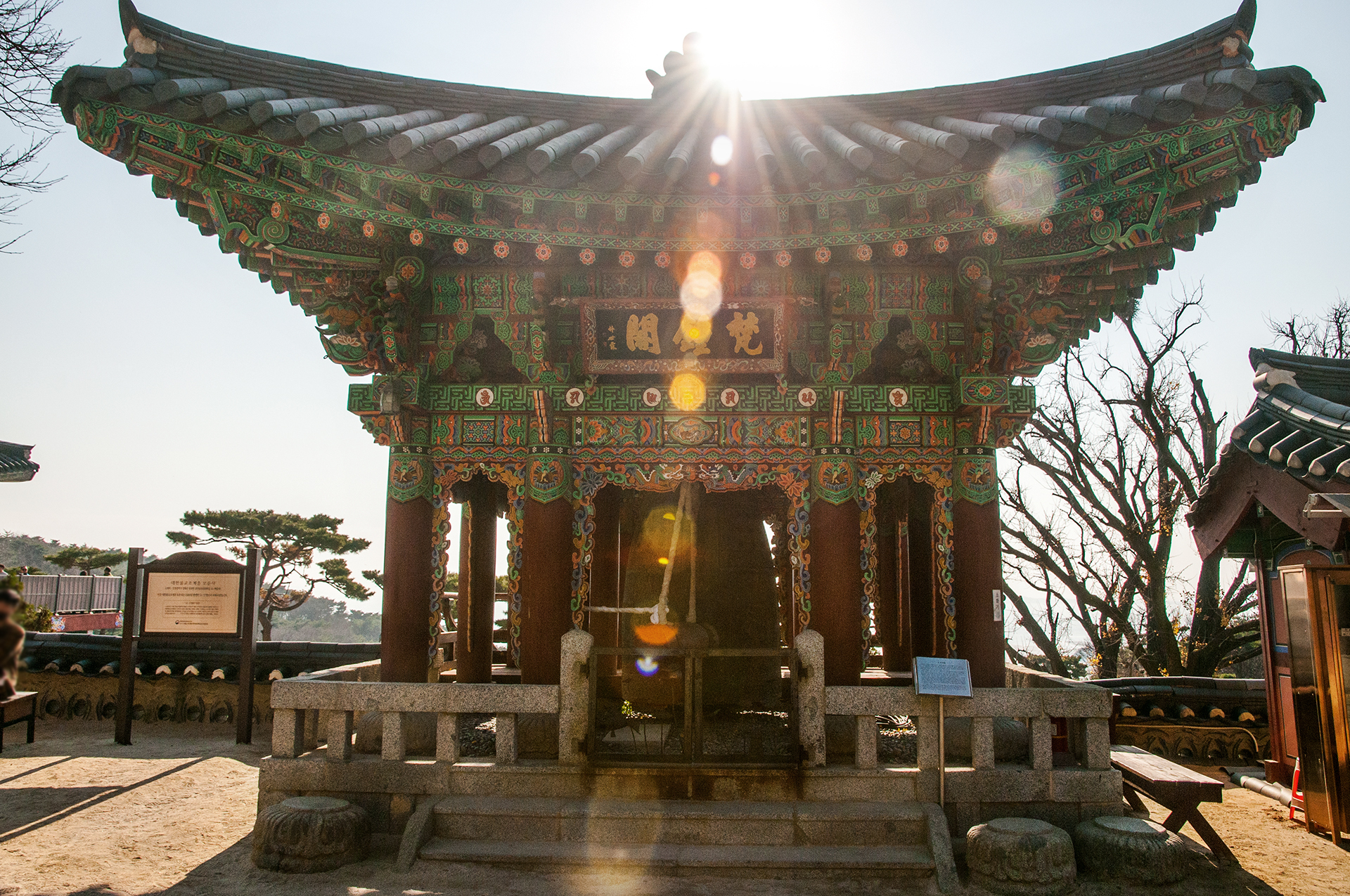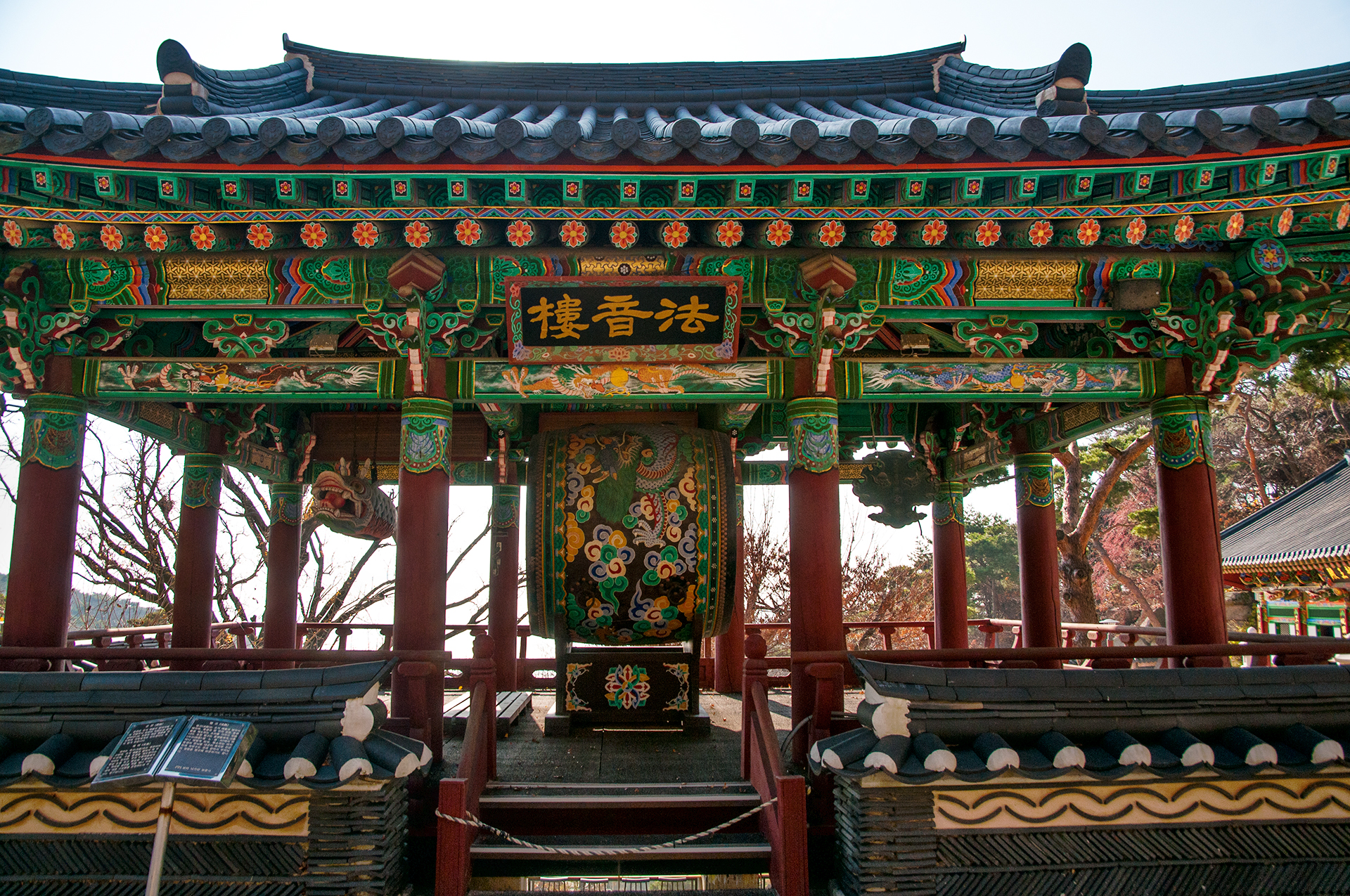 대웅전 앞에 위치한 범종각은 1975년에 지어졌으며 제작 당시 국내 최대의 범종이 봉안되어 있다.