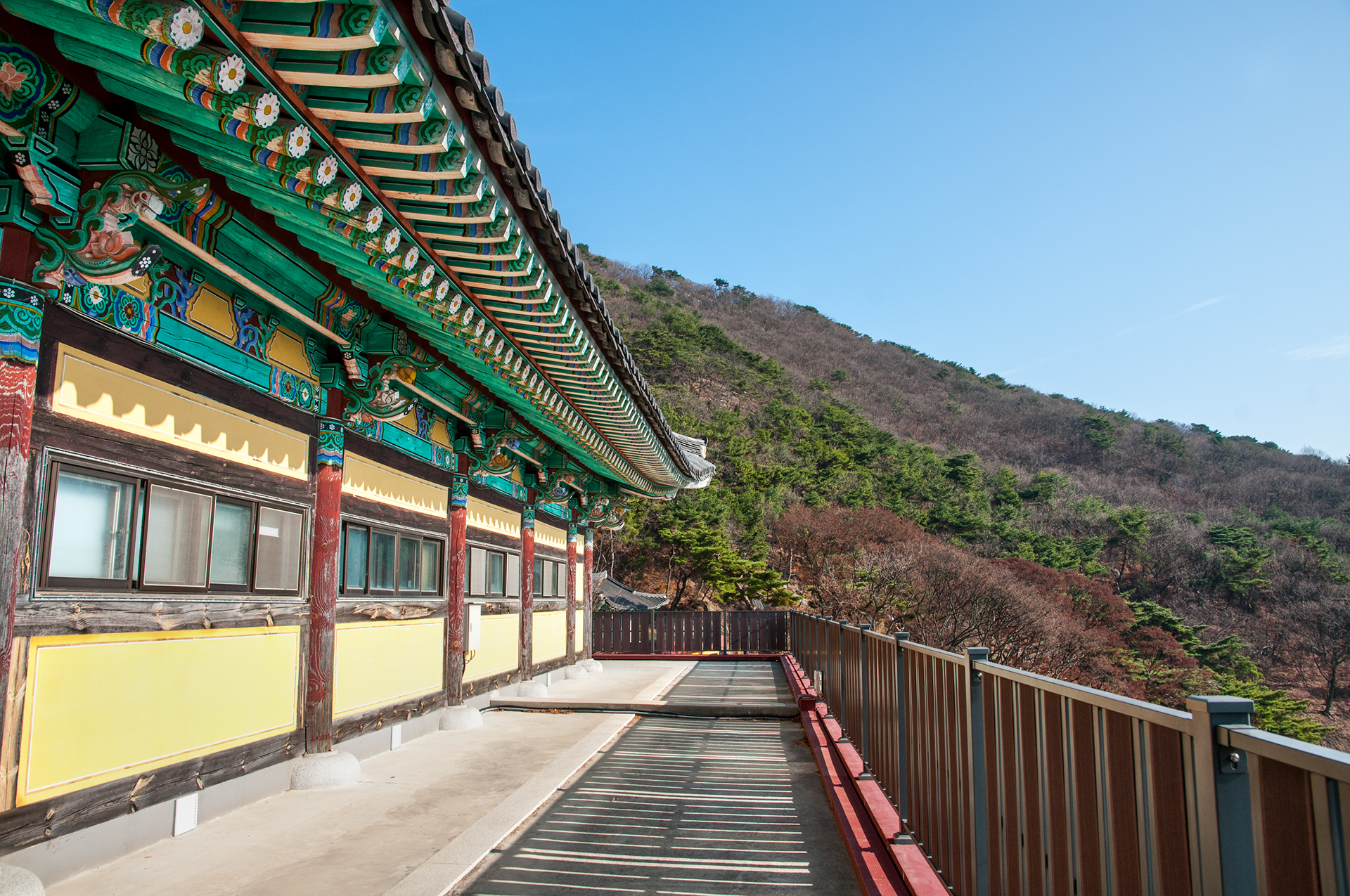 종무소 뒷쪽 난간에 서면 인적이 드문 곳이라 조용해서 마음의 쉼을 찾을 수 있는 곳이다.