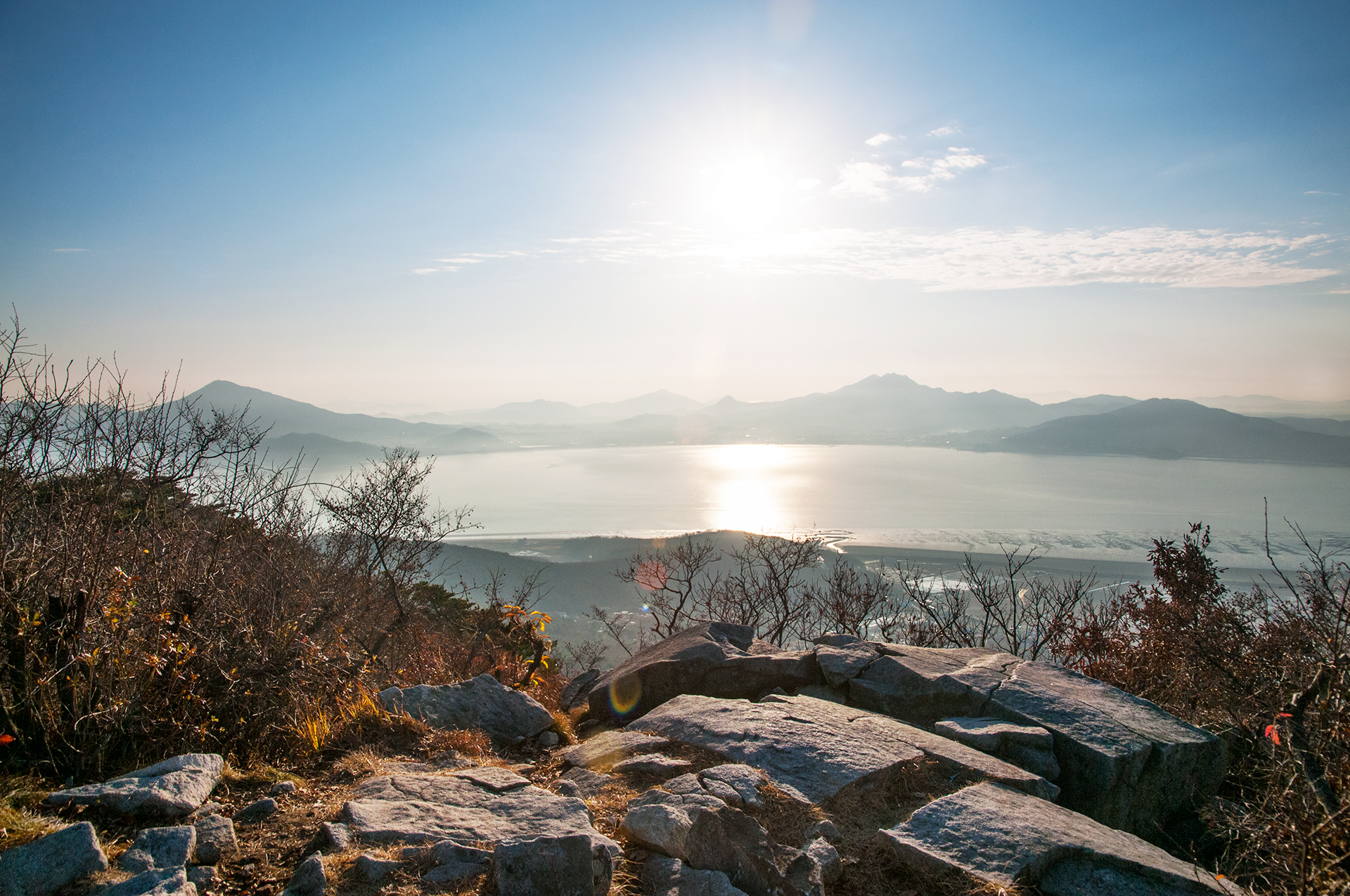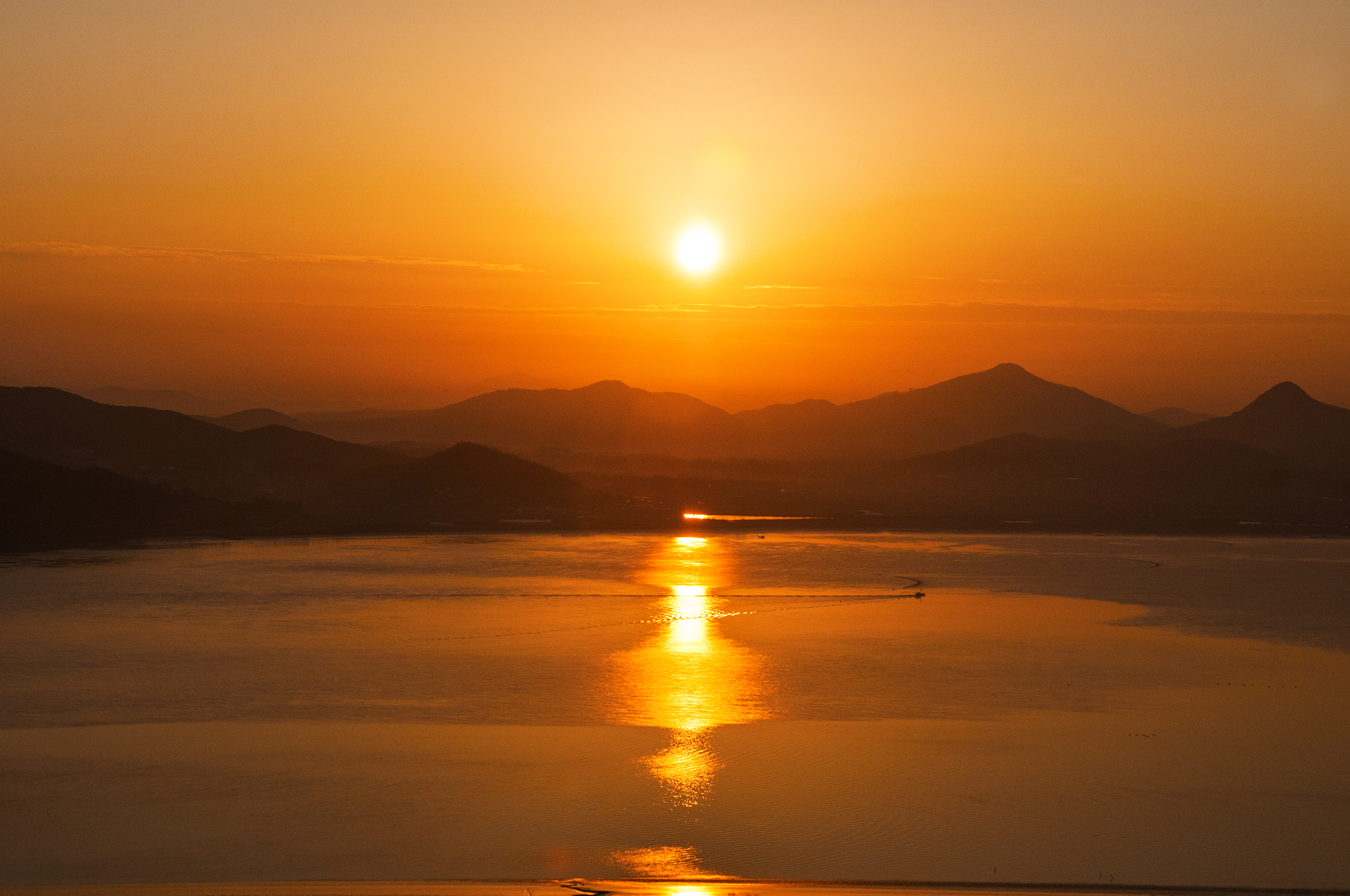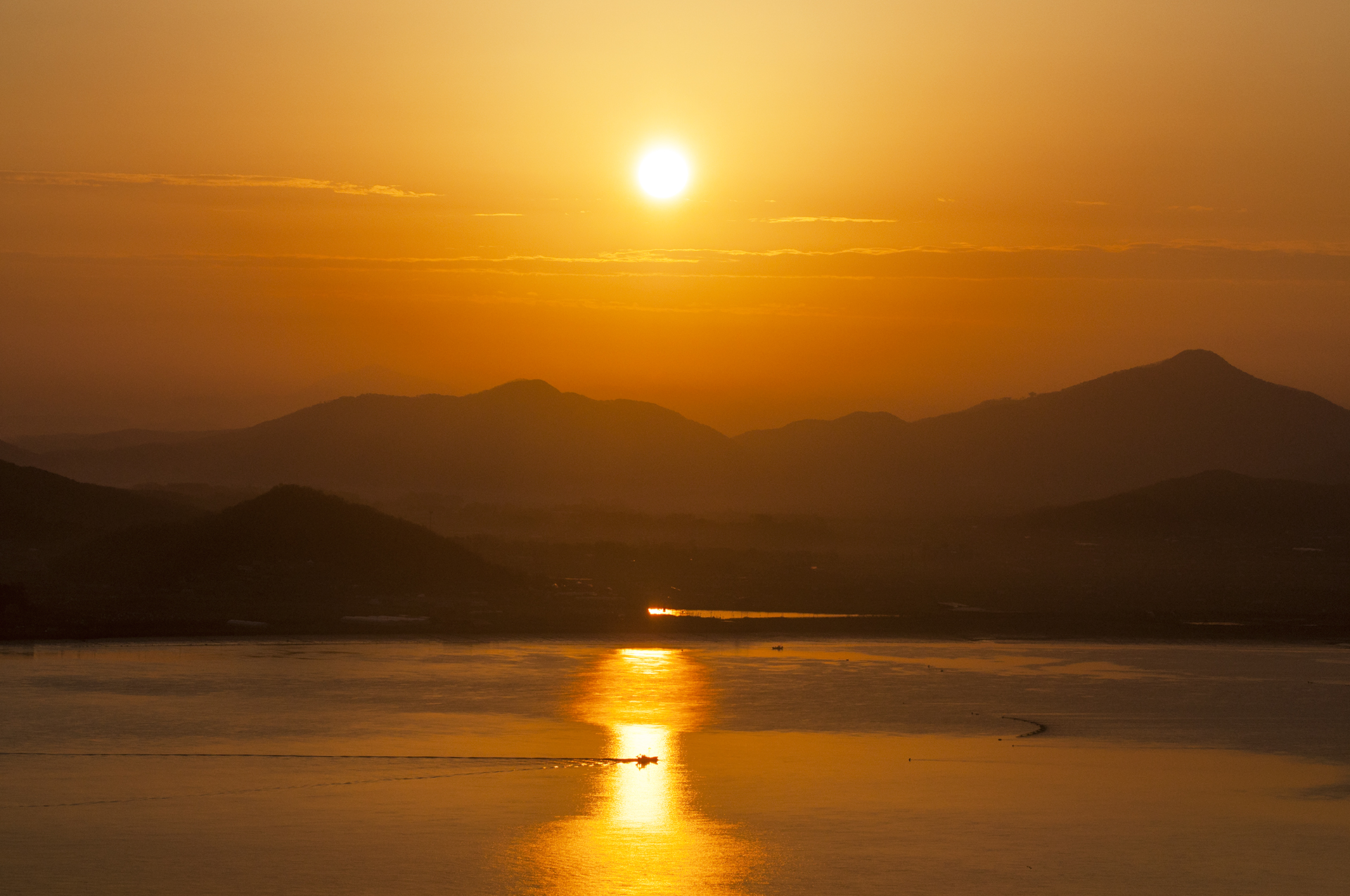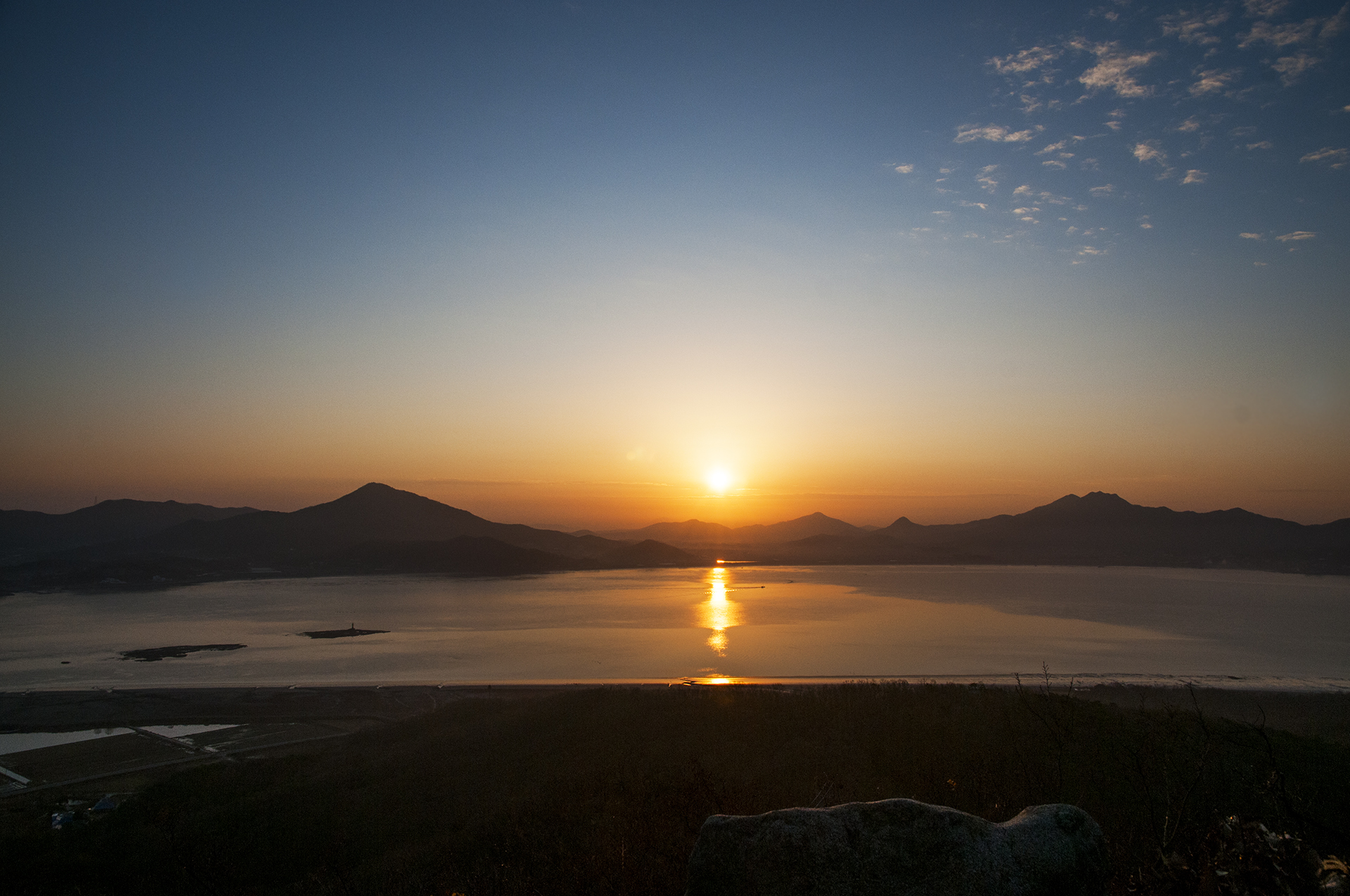 진강산과 마니산이 좌우로 펼쳐지는 바다 위로 해가 어느새 이만큼 떠올랐다.