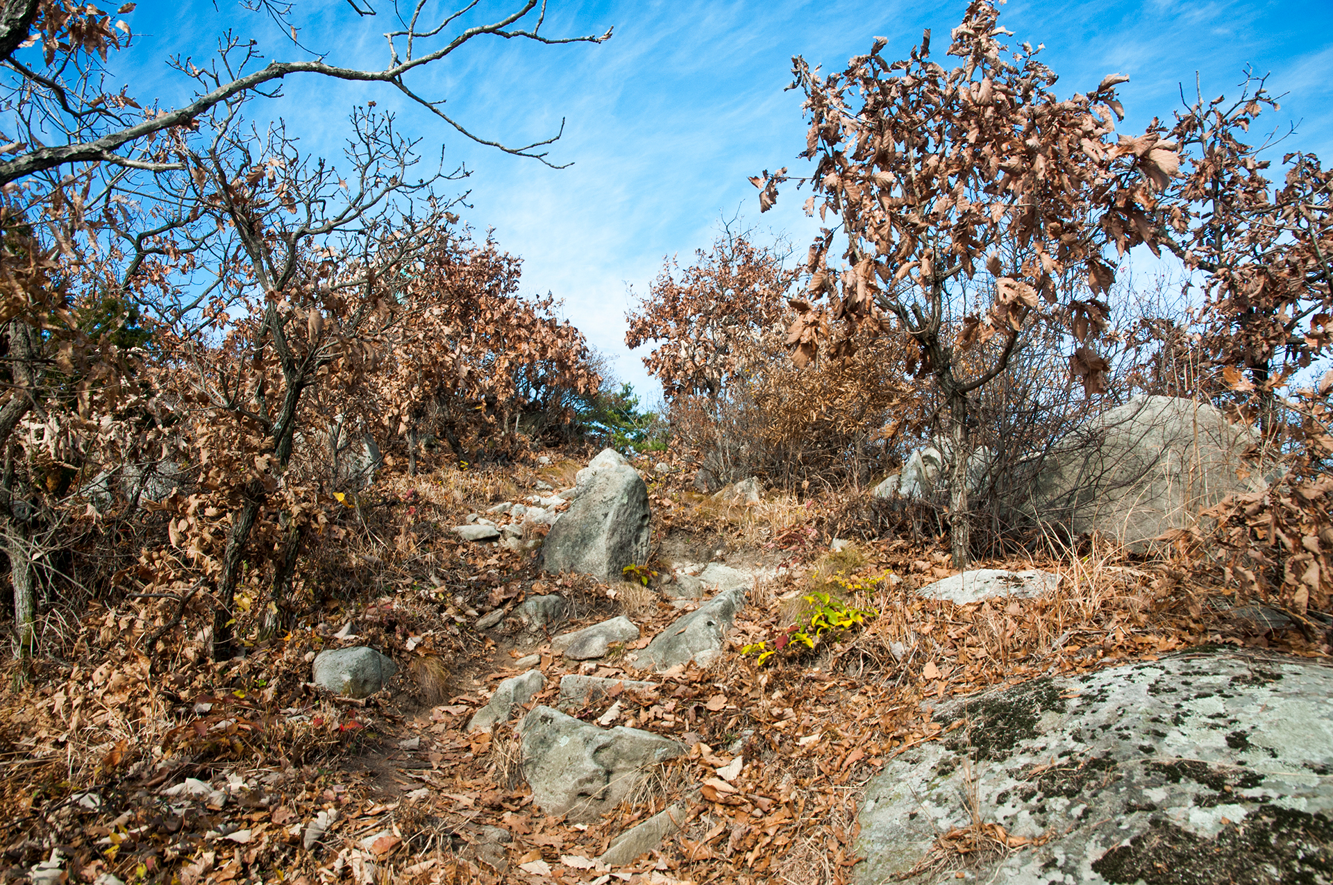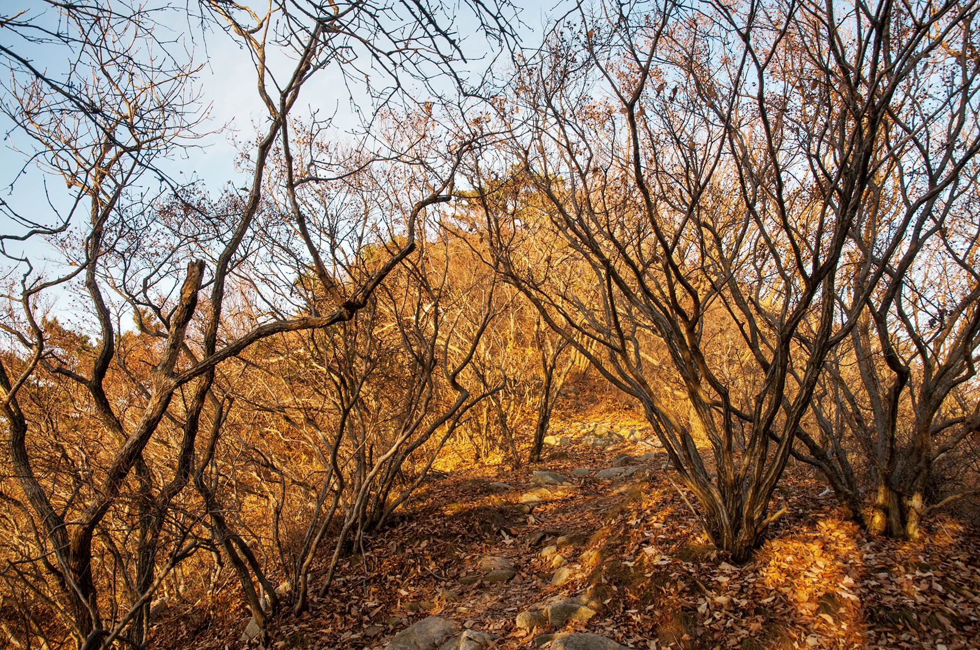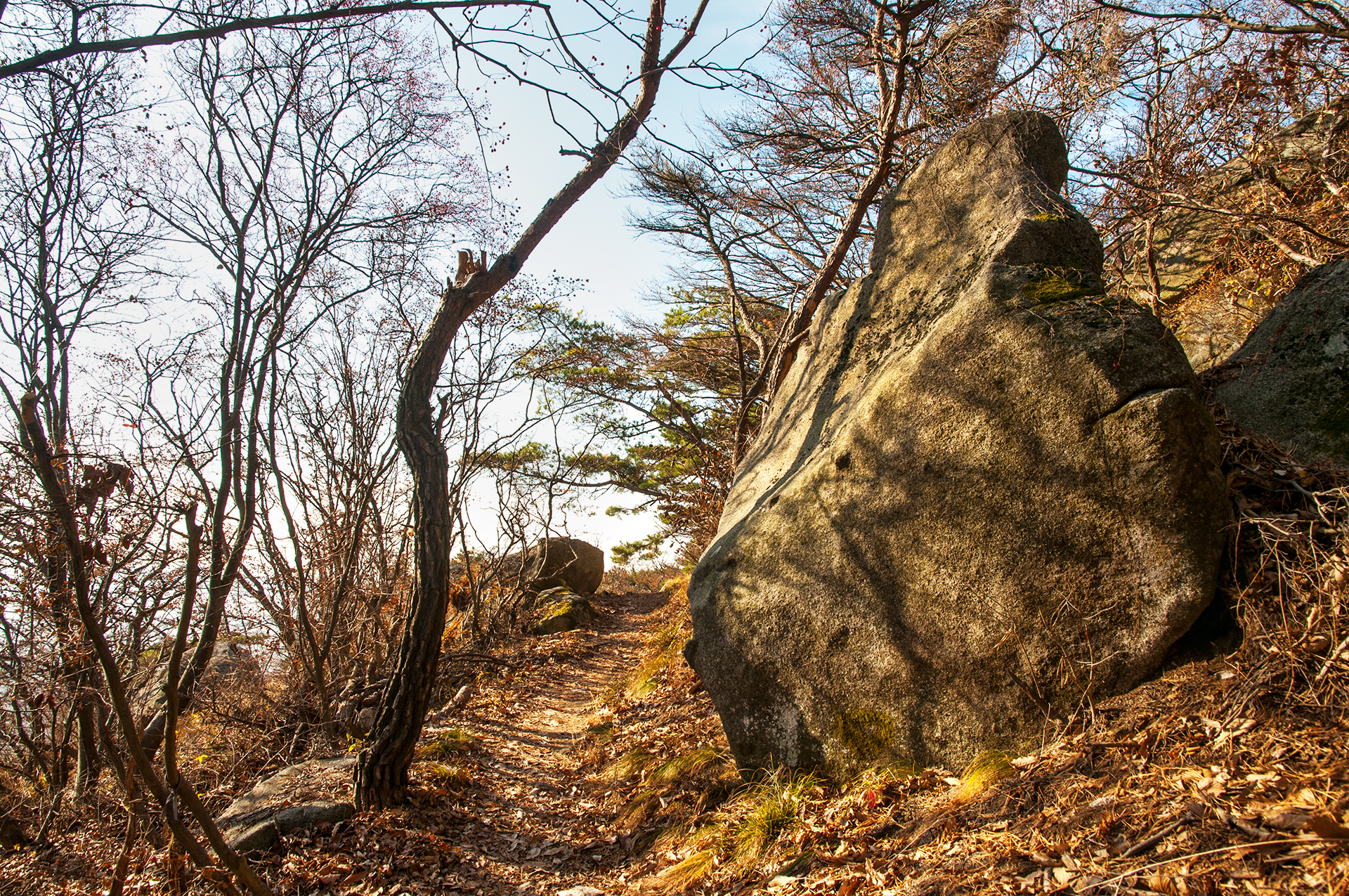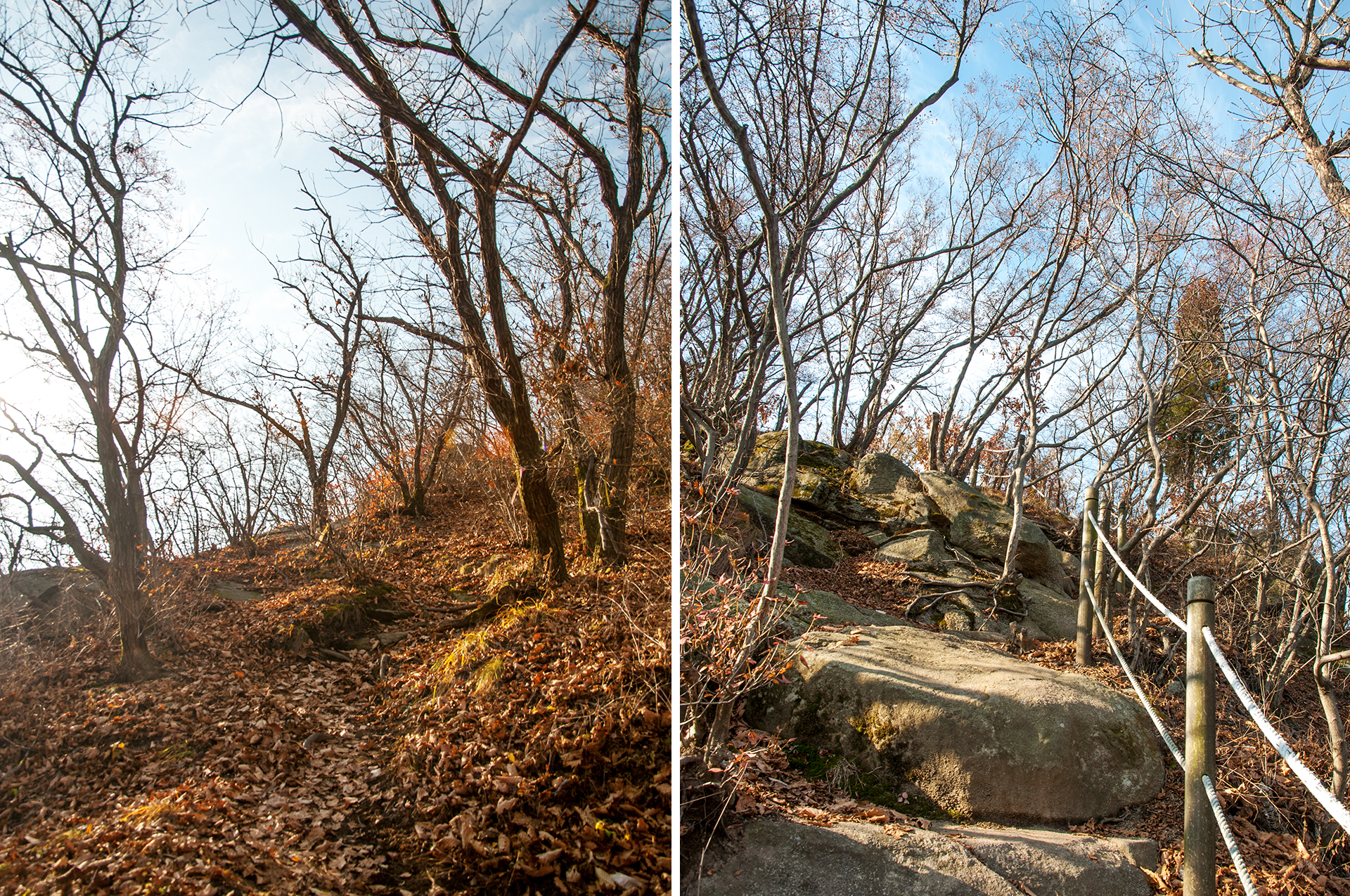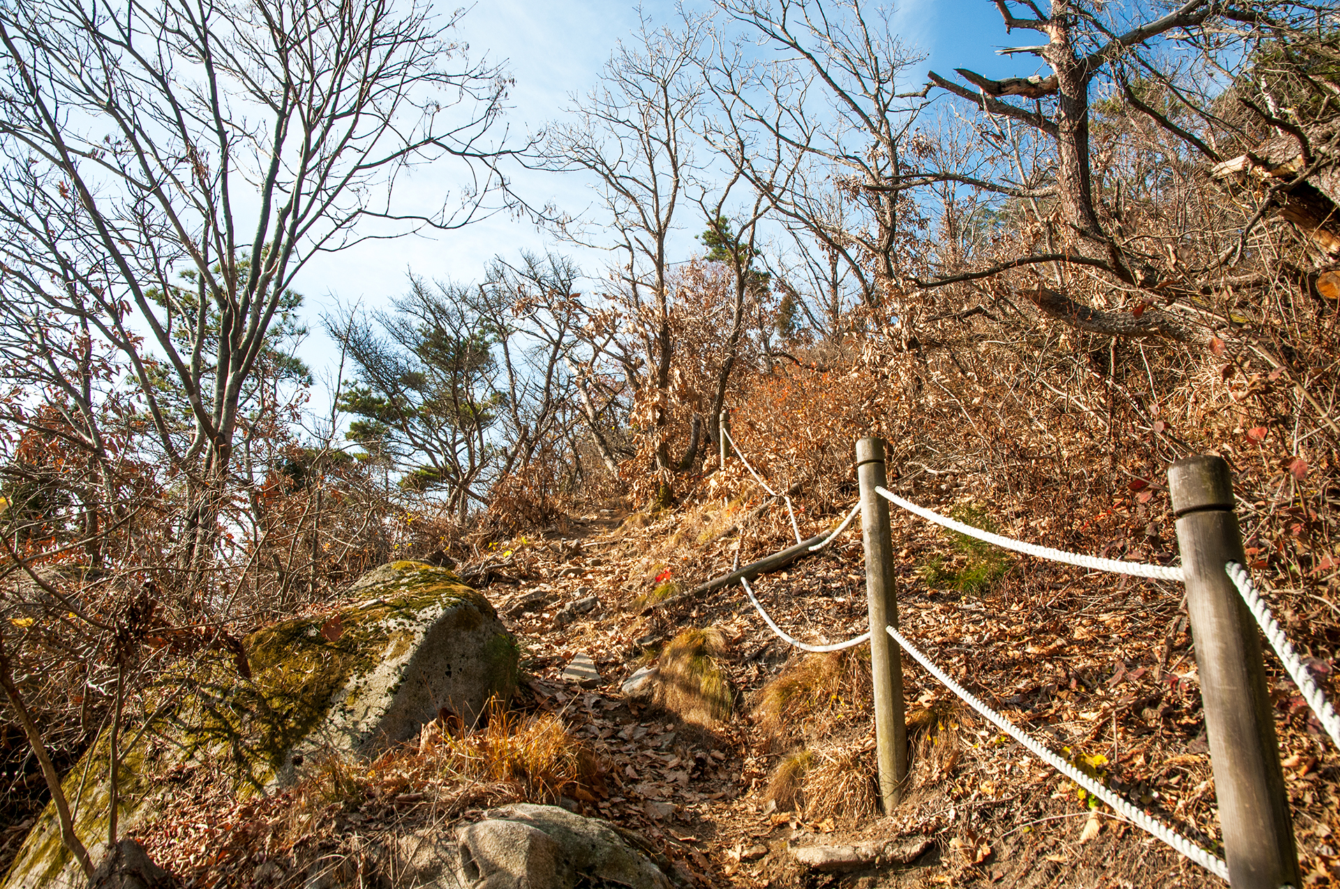 이미 북쪽의 산은 가을의 맛을 지운지 오래된 듯 하다. 등산로는 바짝 마른 낙엽 투성이고, 나무들은 잎을 떨군채 메마른 모습을 보여준다.