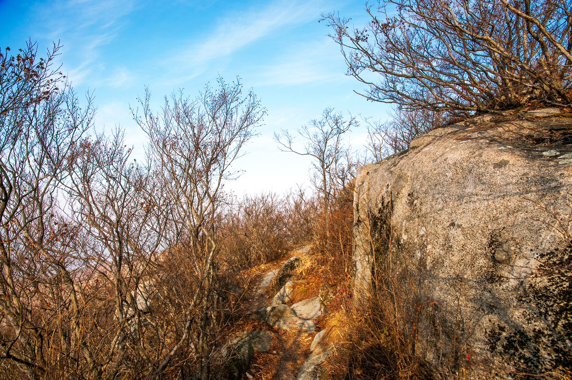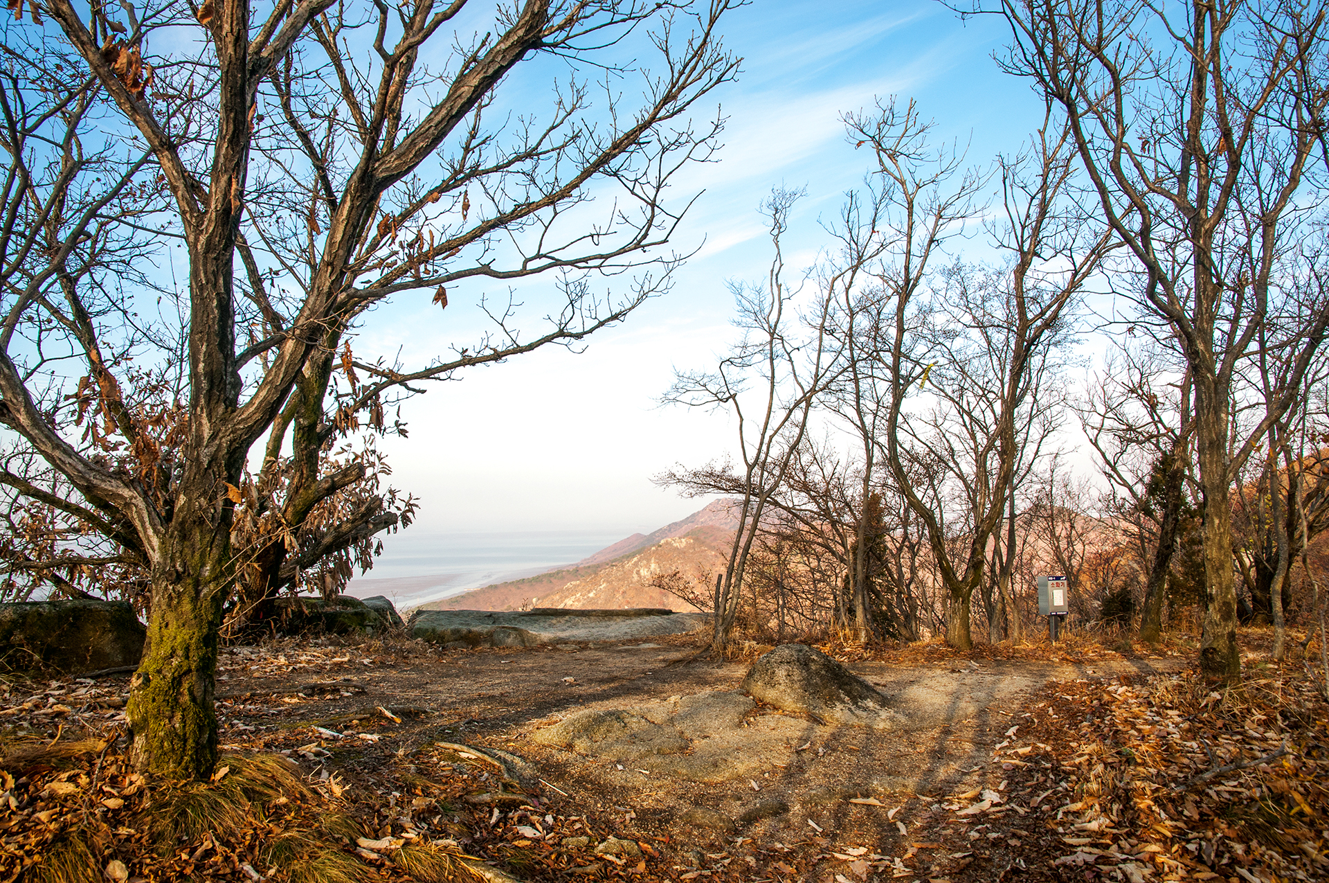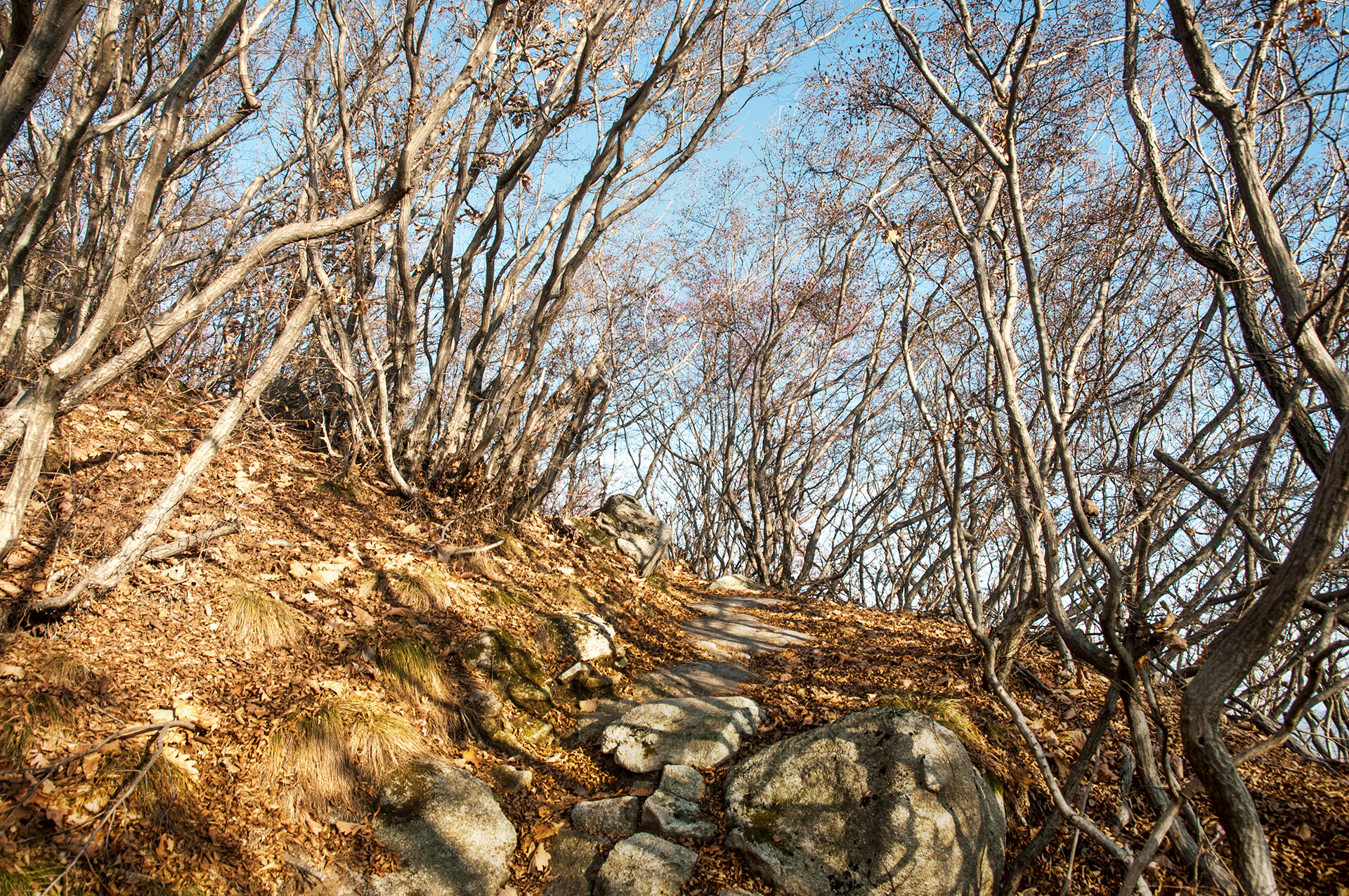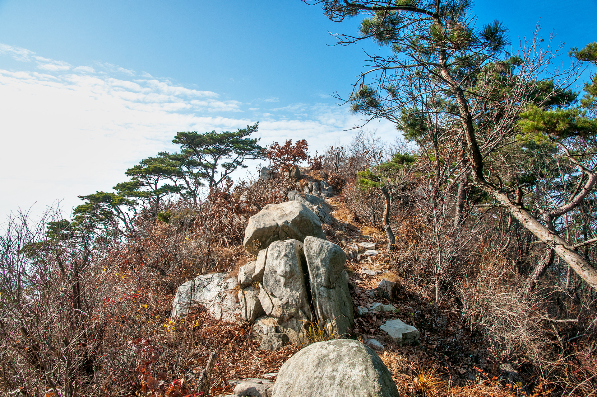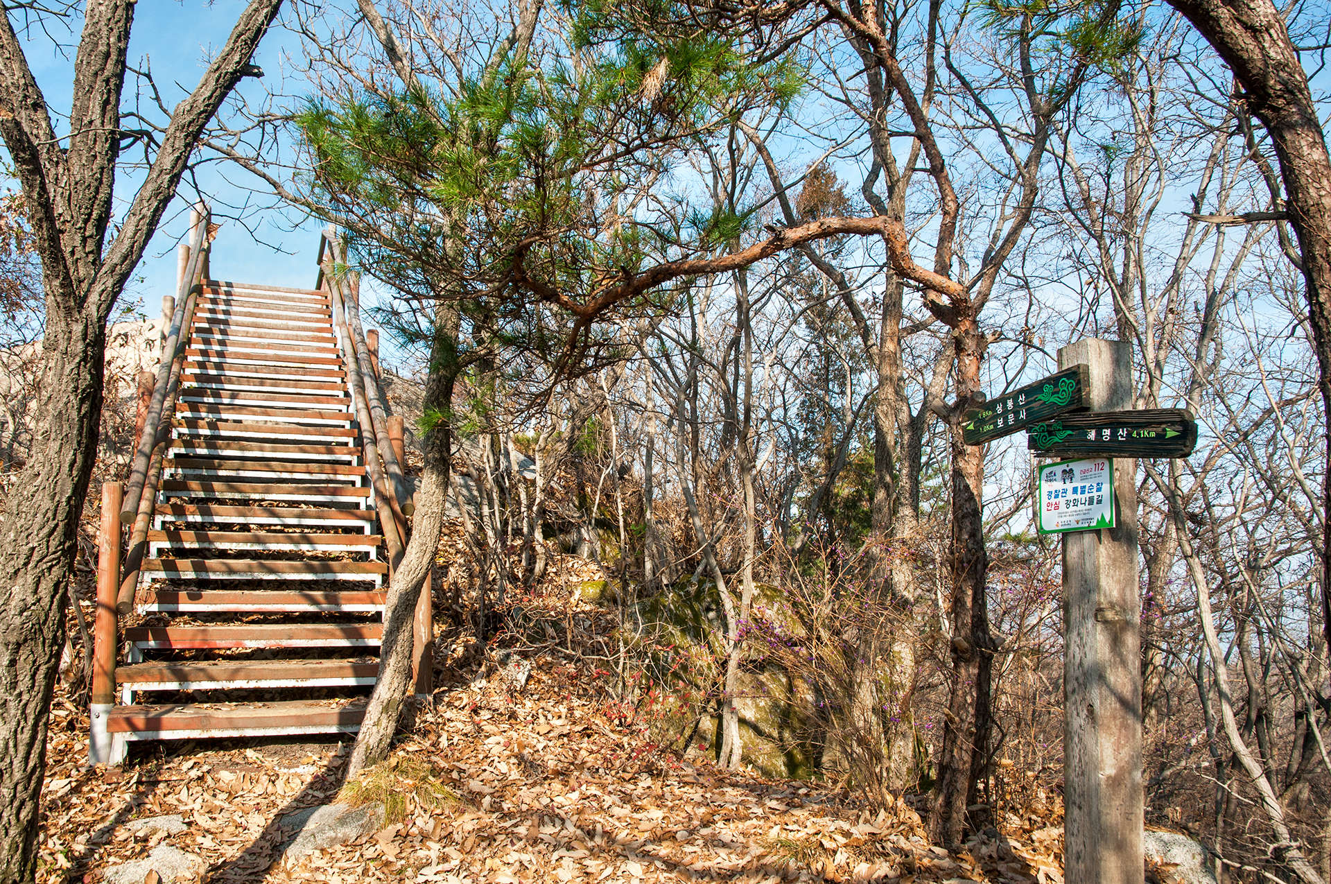 이미 북쪽의 산은 가을의 맛을 지운지 오래된 듯 하다. 등산로는 바짝 마른 낙엽 투성이고, 나무들은 잎을 떨군채 메마른 모습을 보여준다.