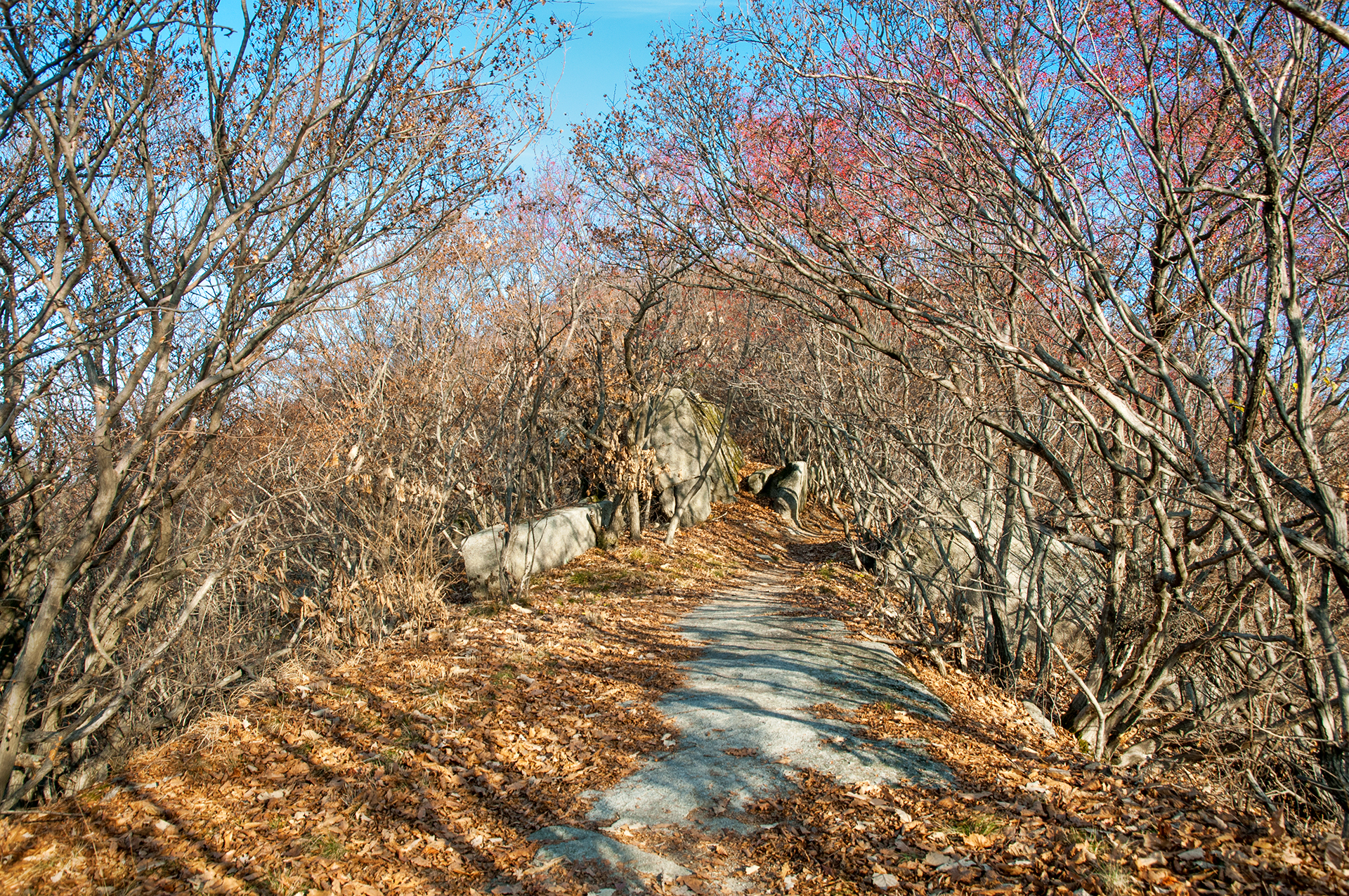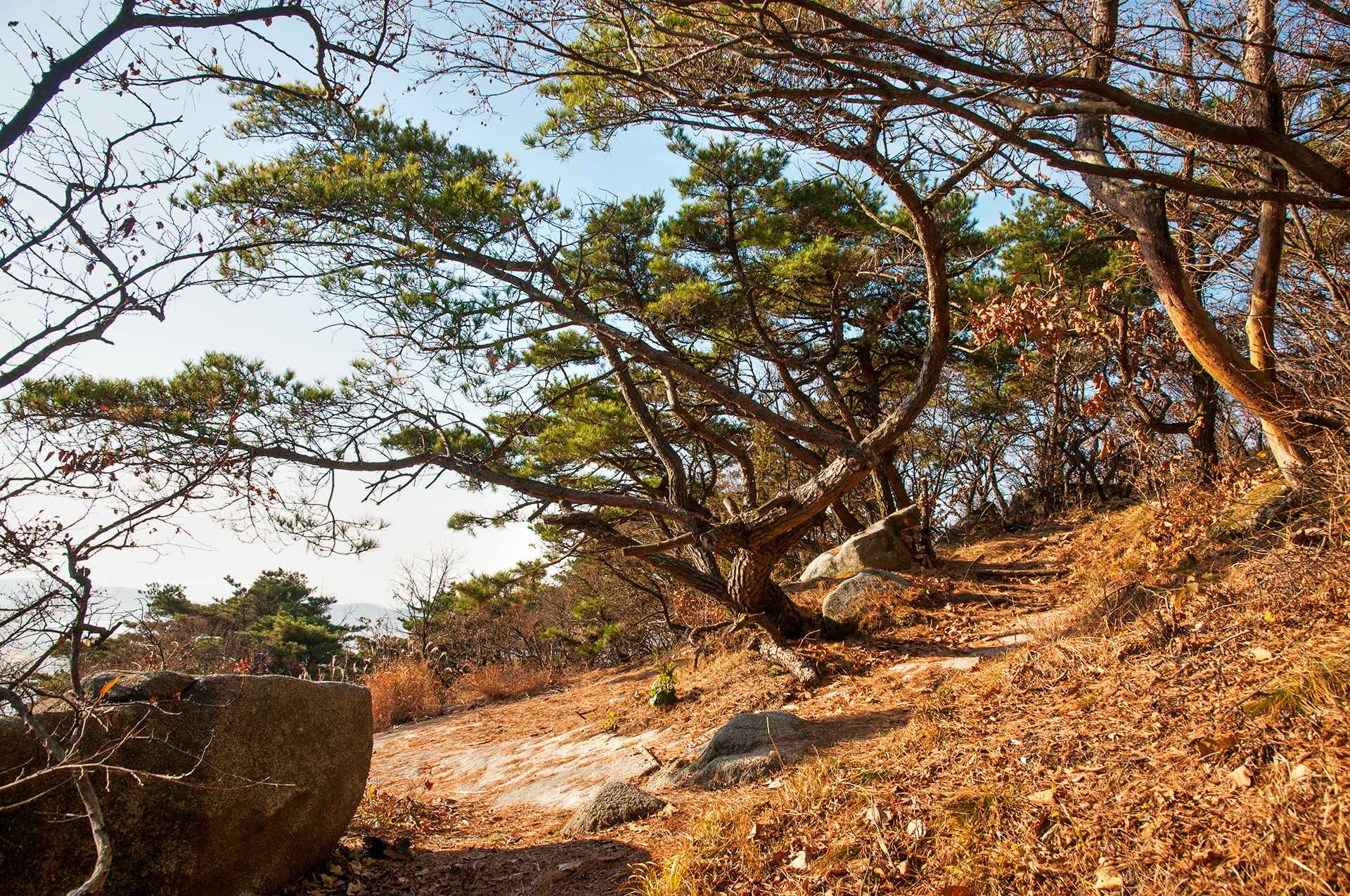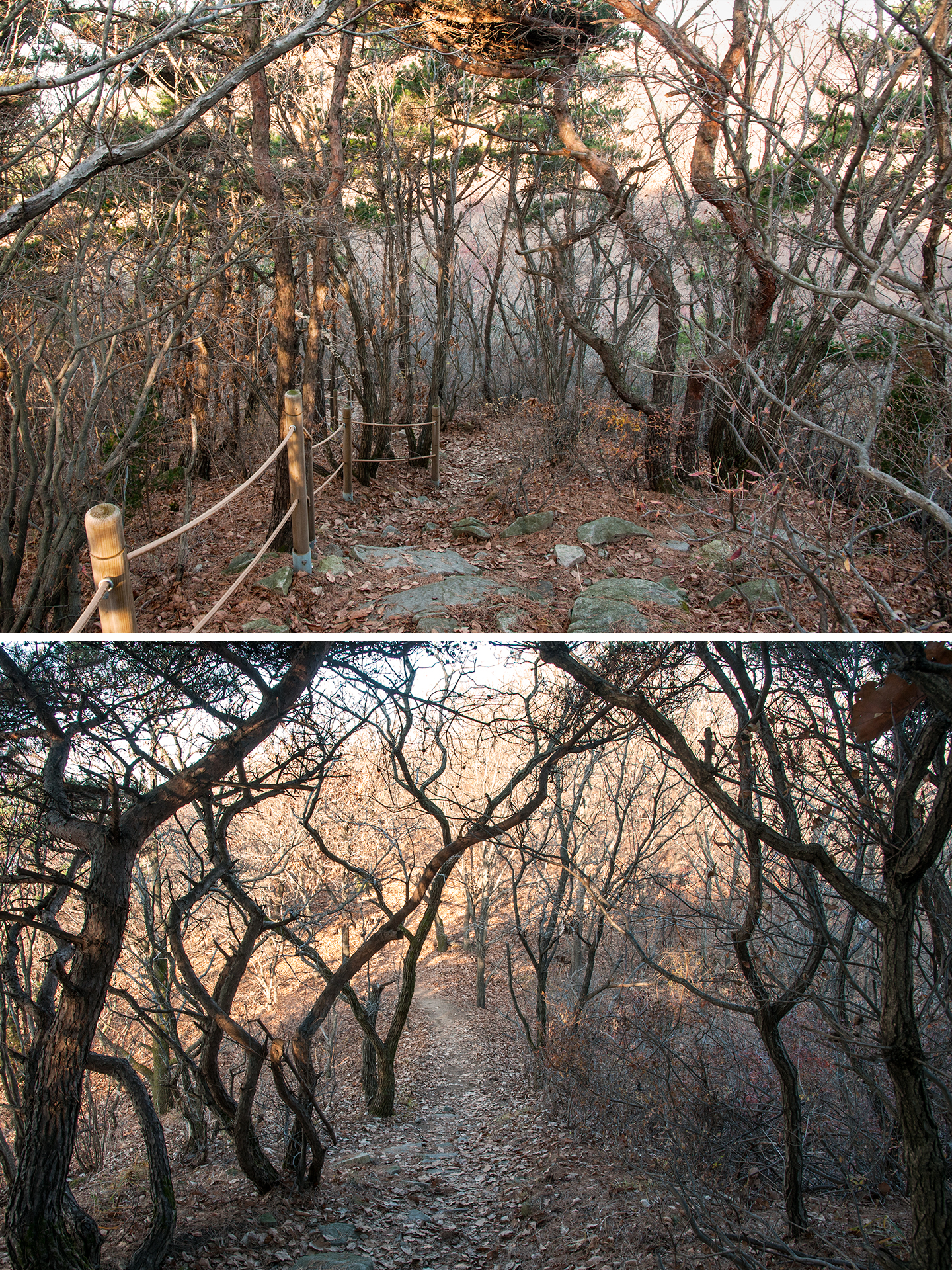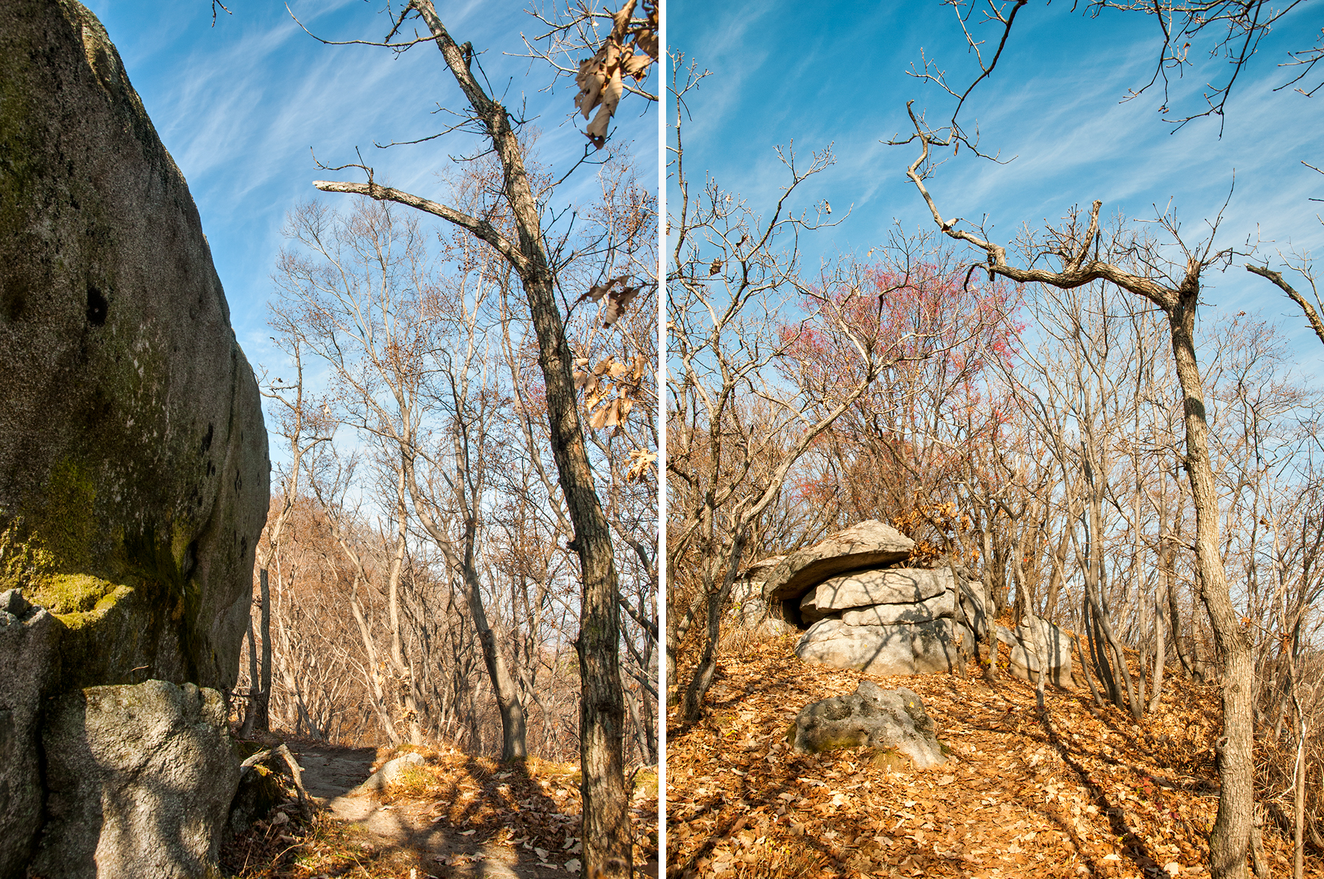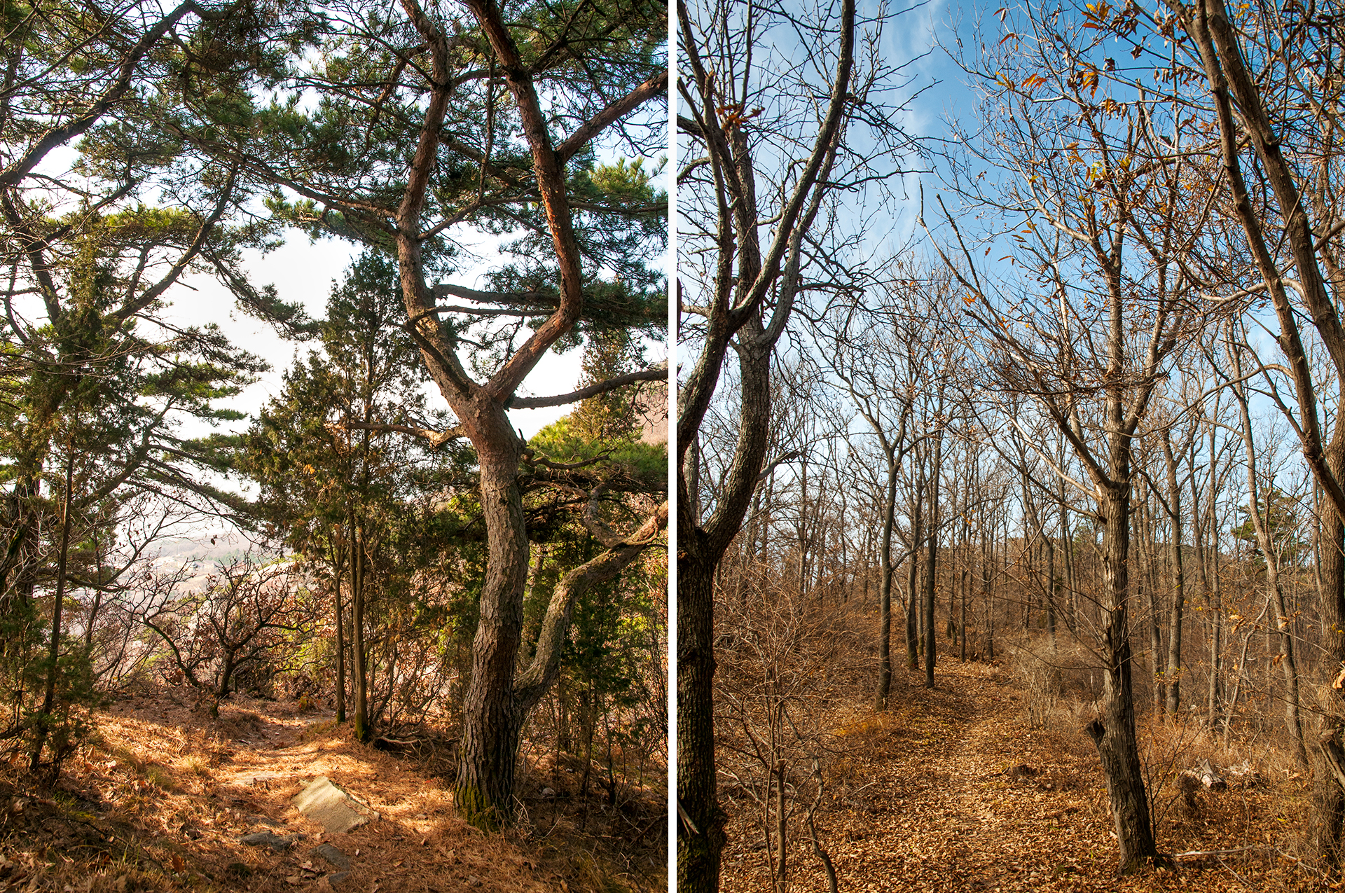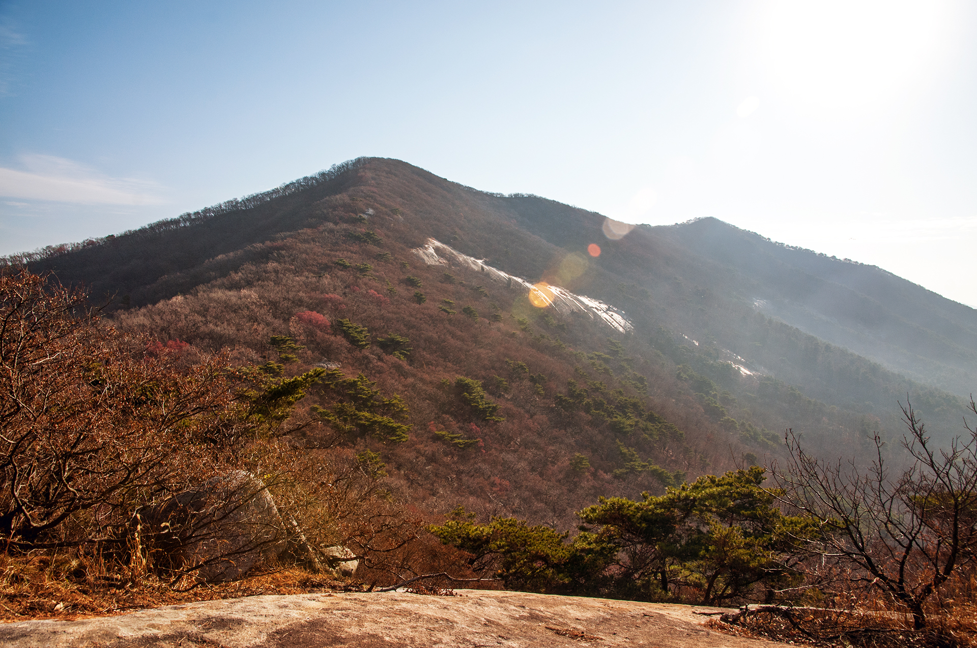 이미 북쪽의 산은 가을의 맛을 지운지 오래된 듯 하다. 등산로는 바짝 마른 낙엽 투성이고, 나무들은 잎을 떨군채 메마른 모습을 보여준다.