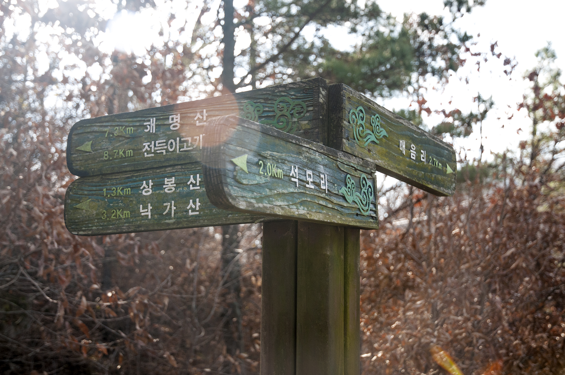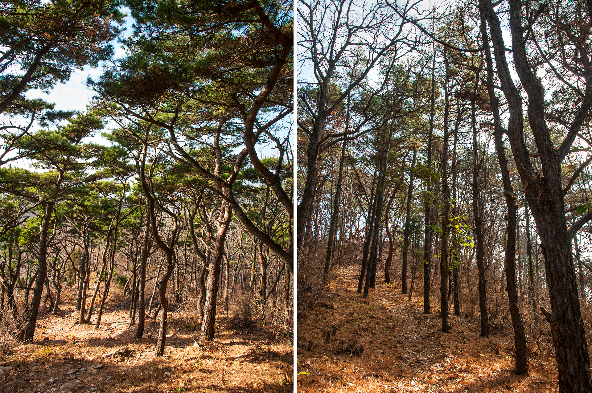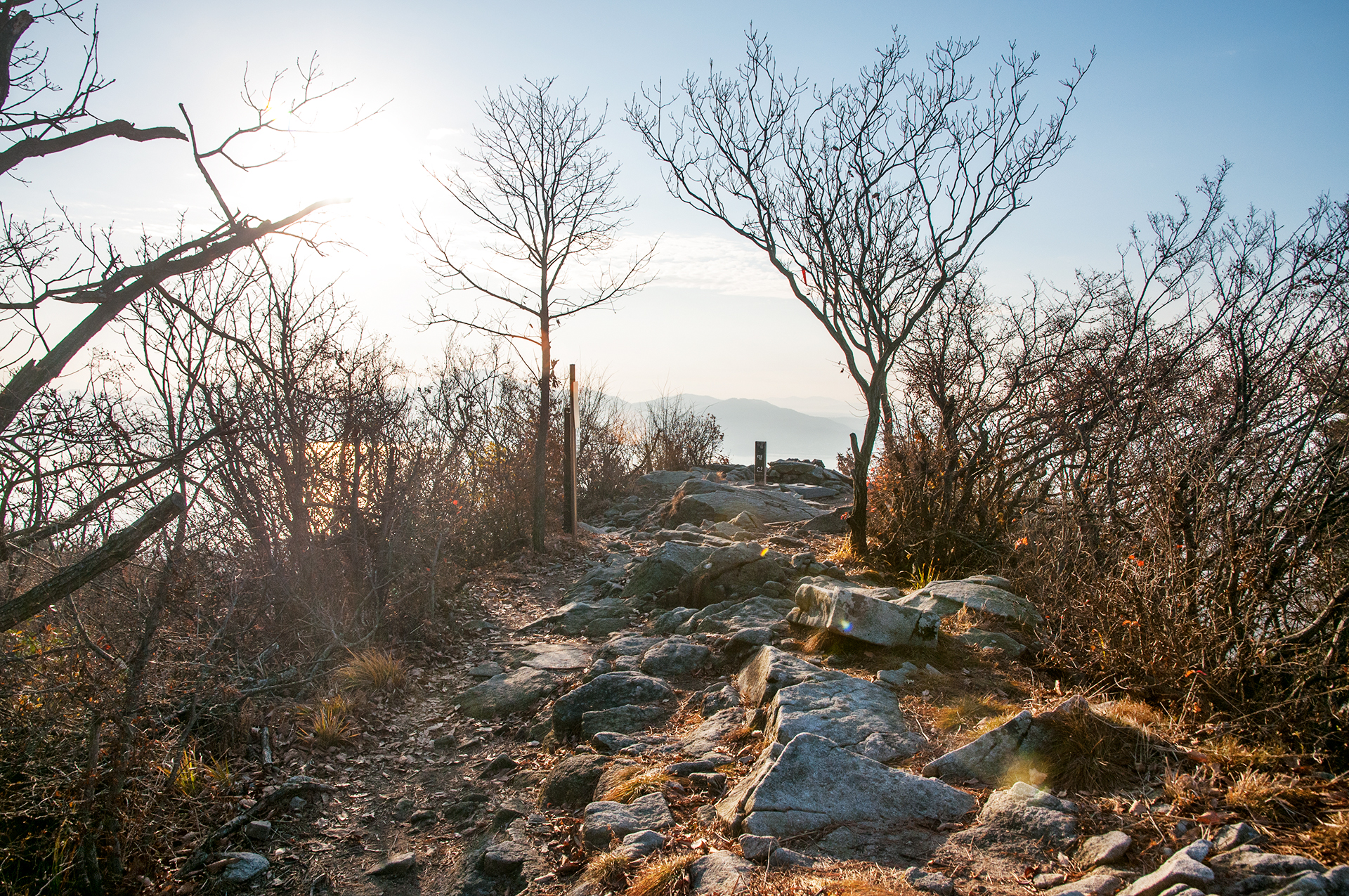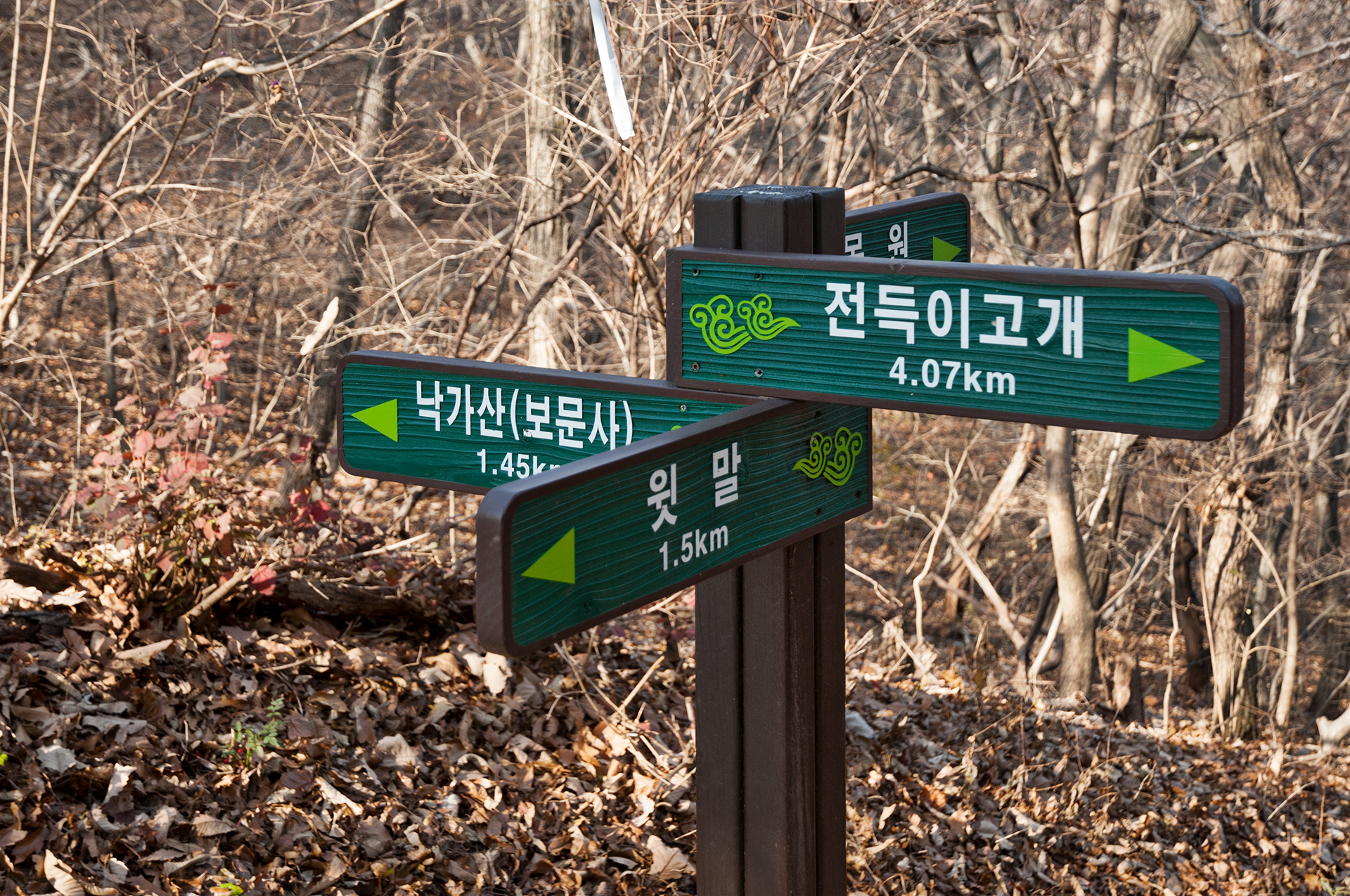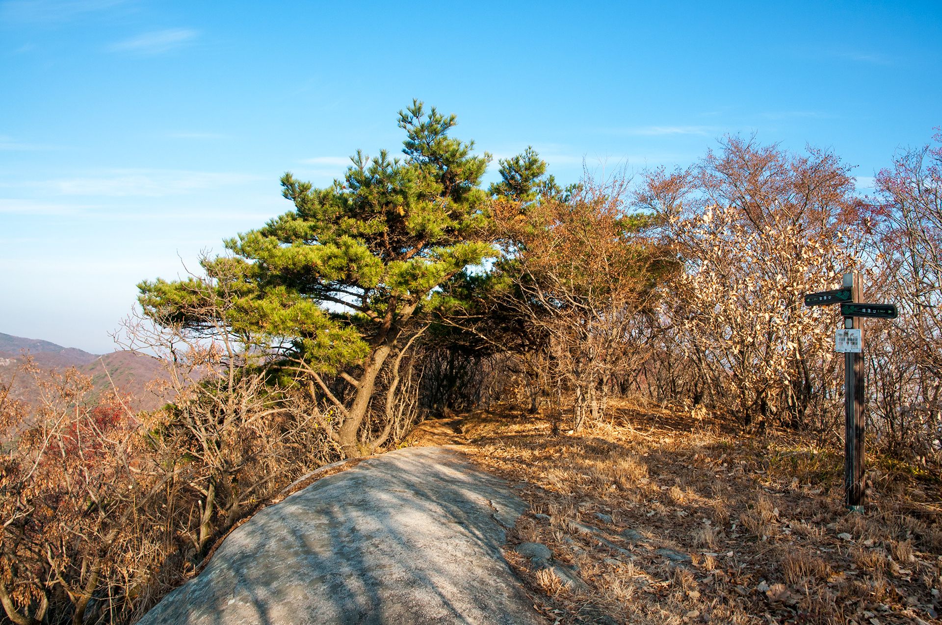 이미 북쪽의 산은 가을의 맛을 지운지 오래된 듯 하다. 등산로는 바짝 마른 낙엽 투성이고, 나무들은 잎을 떨군채 메마른 모습을 보여준다.