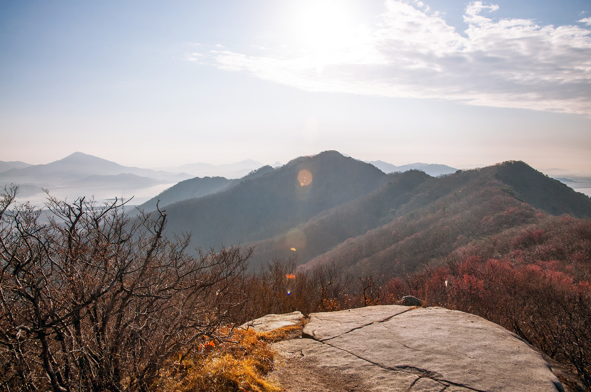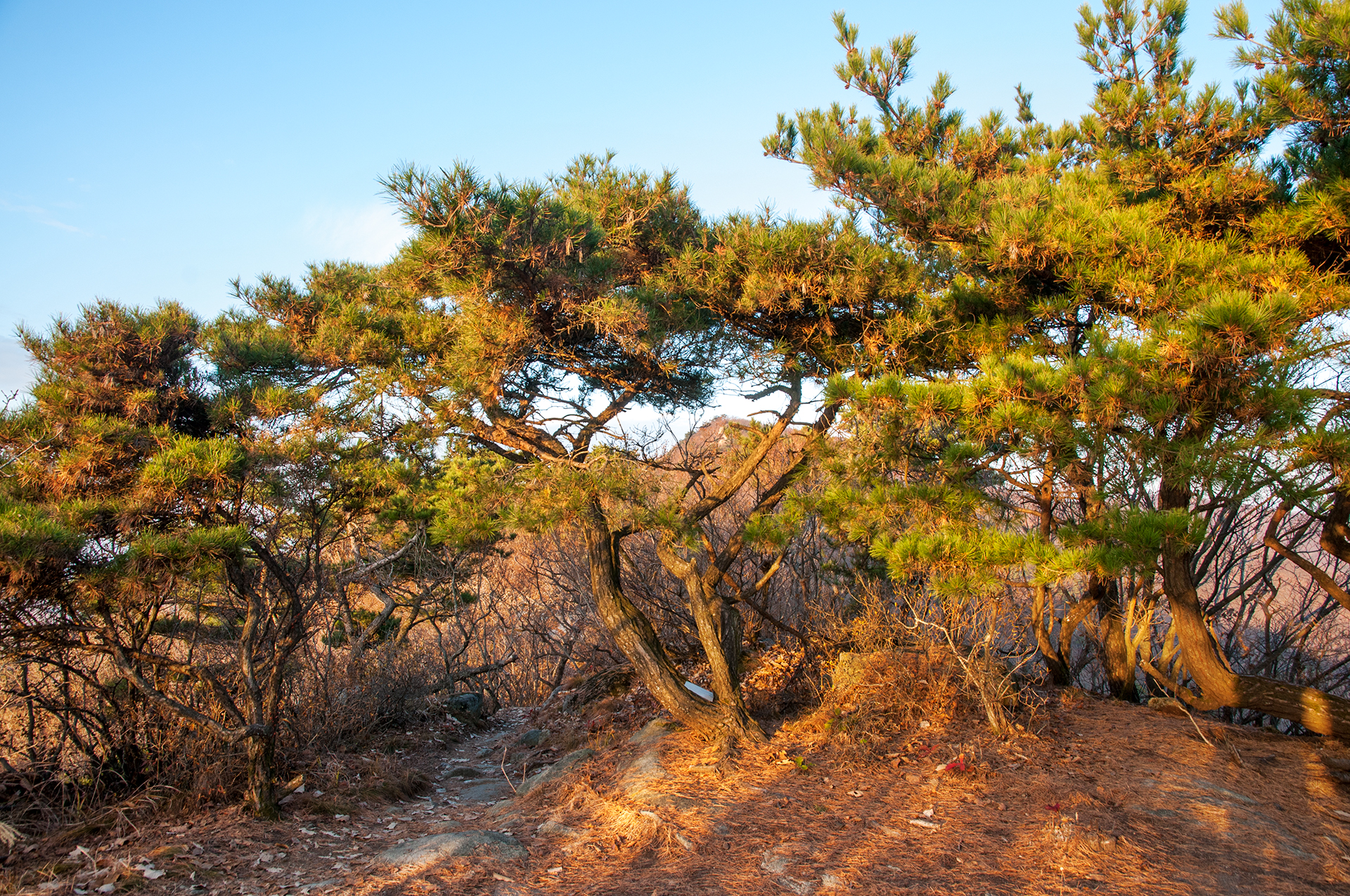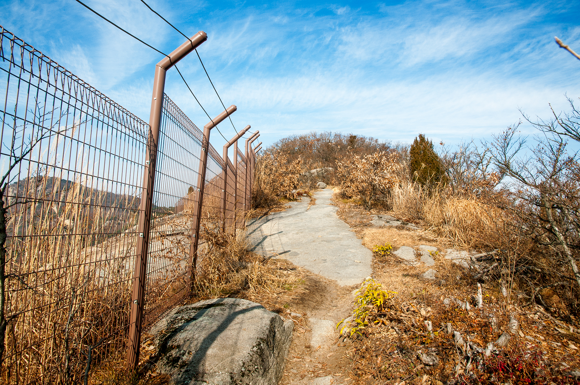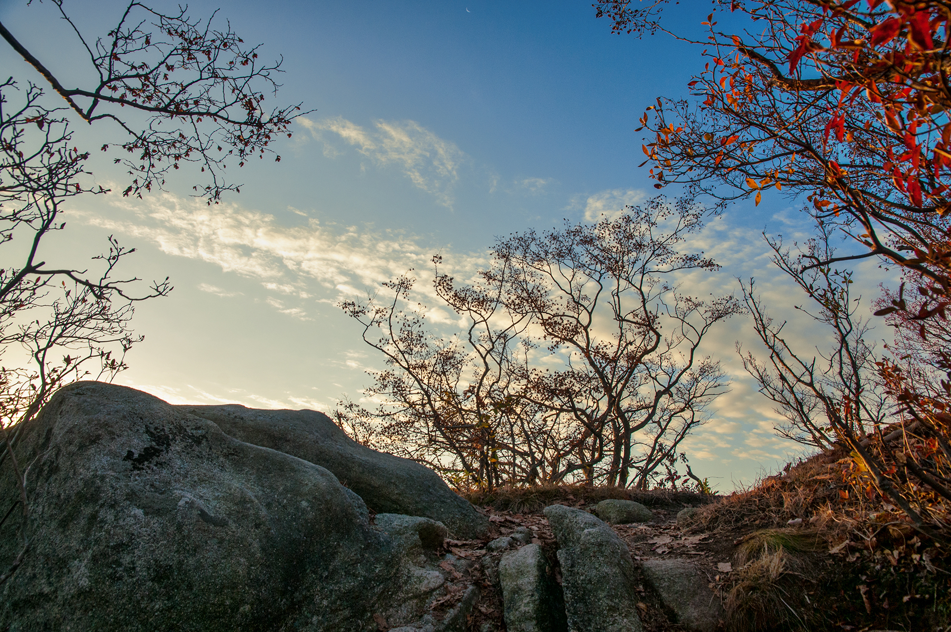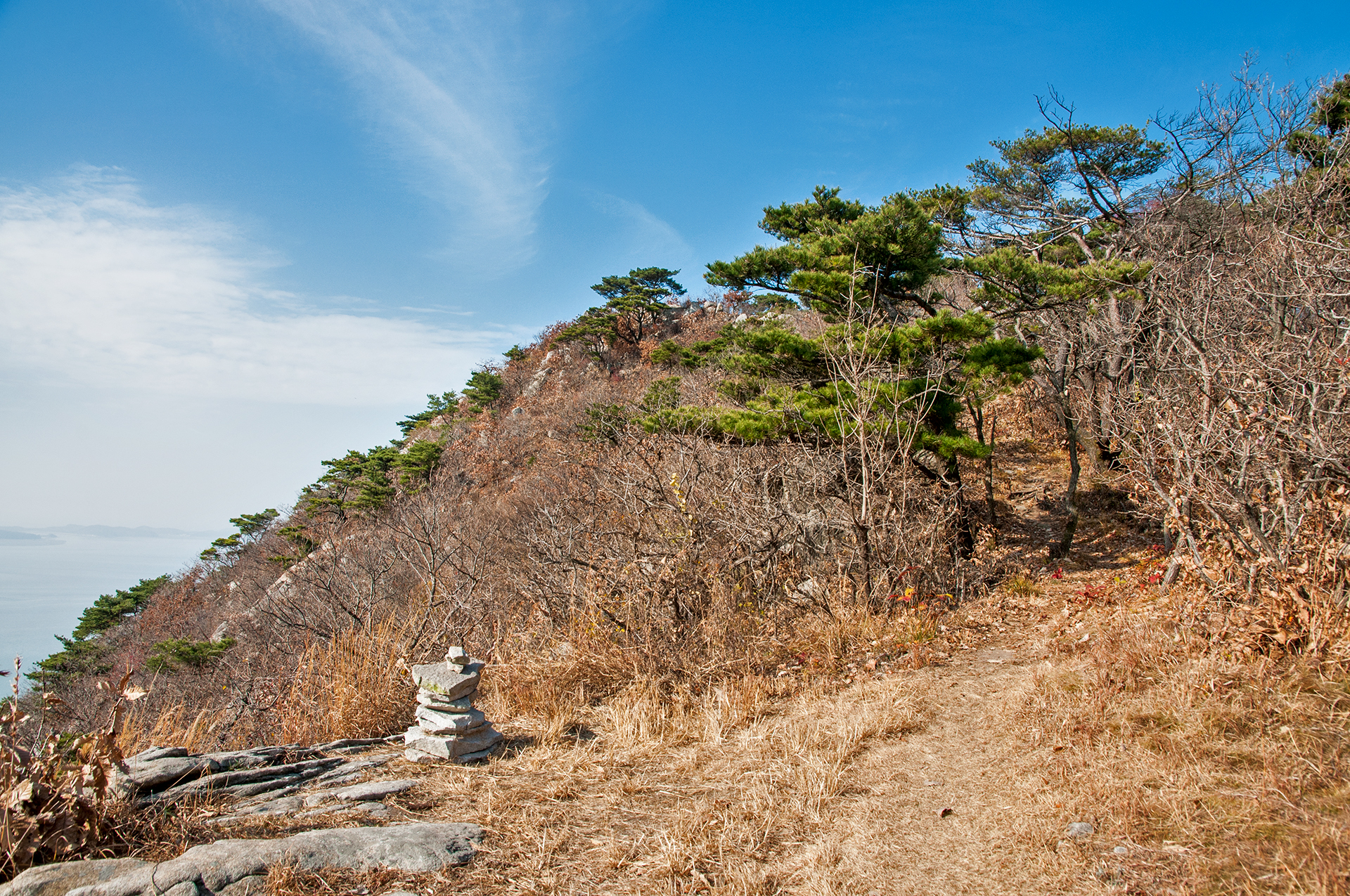 이미 북쪽의 산은 가을의 맛을 지운지 오래된 듯 하다. 등산로는 바짝 마른 낙엽 투성이고, 나무들은 잎을 떨군채 메마른 모습을 보여준다.