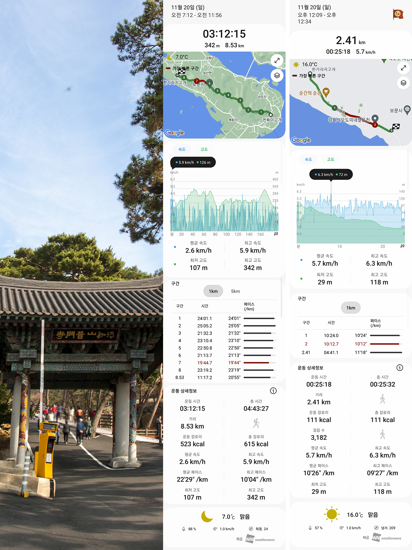 * 한가라지고개 ~ 보문사 입구 (도보) : 2.4km, 25분