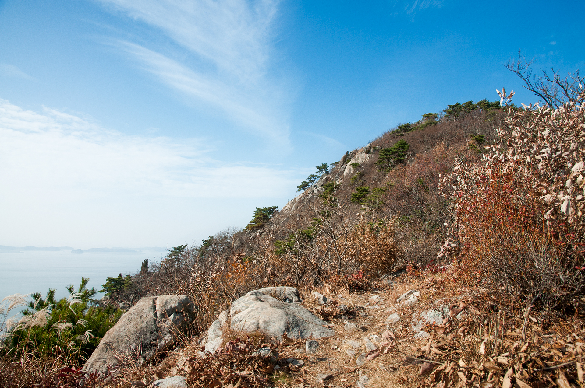 계속해서 바다를 조망할 수 있는 전망좋은 곳이 나타나니 힘든줄 모르고, 어느새 해명산이 아득해 보일 정도로 진행되었다.