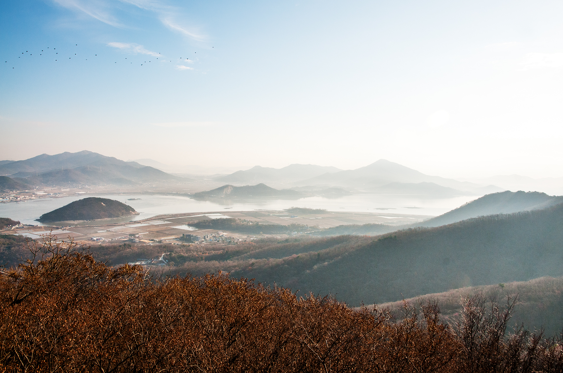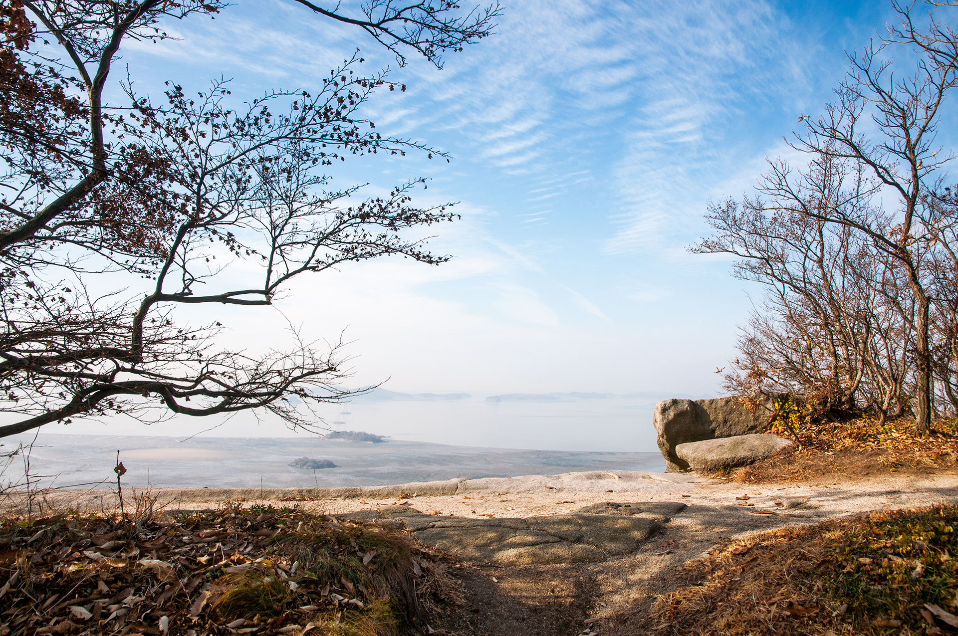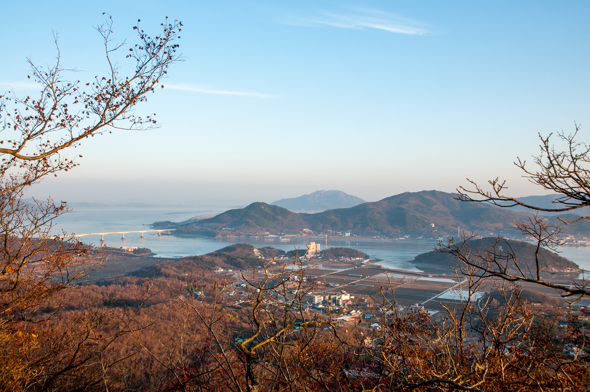 촬영포인트가 따로 없을 정도로 전망이 터지는 장소가 곳곳에 있다. 간척지의 풍경이 한눈에 들어온다.