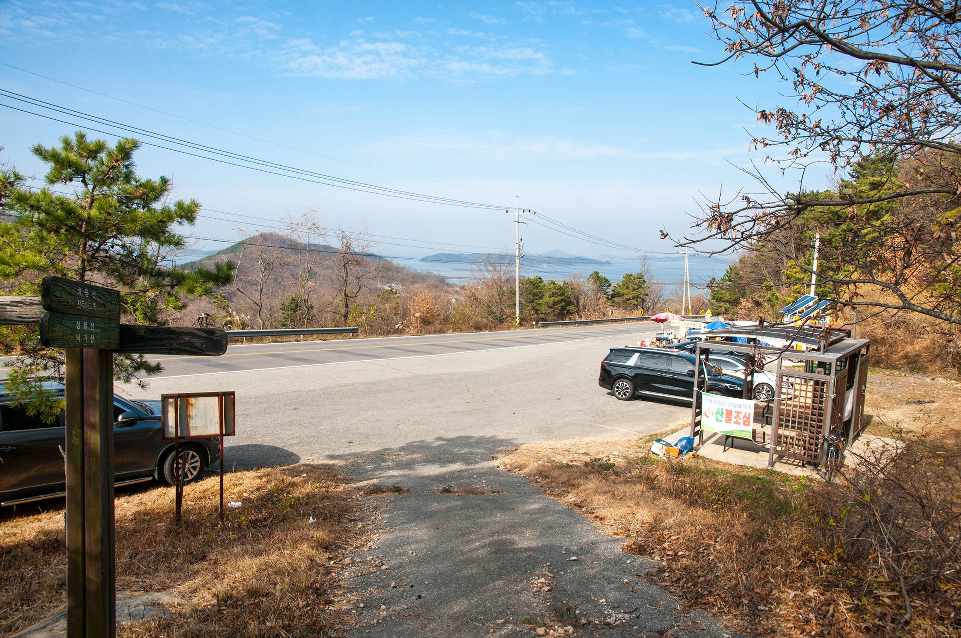 * 한가라지 고개에서 도로를 따라 걷는 길은 인도가 없어 차도 갓길을 걸어야 함