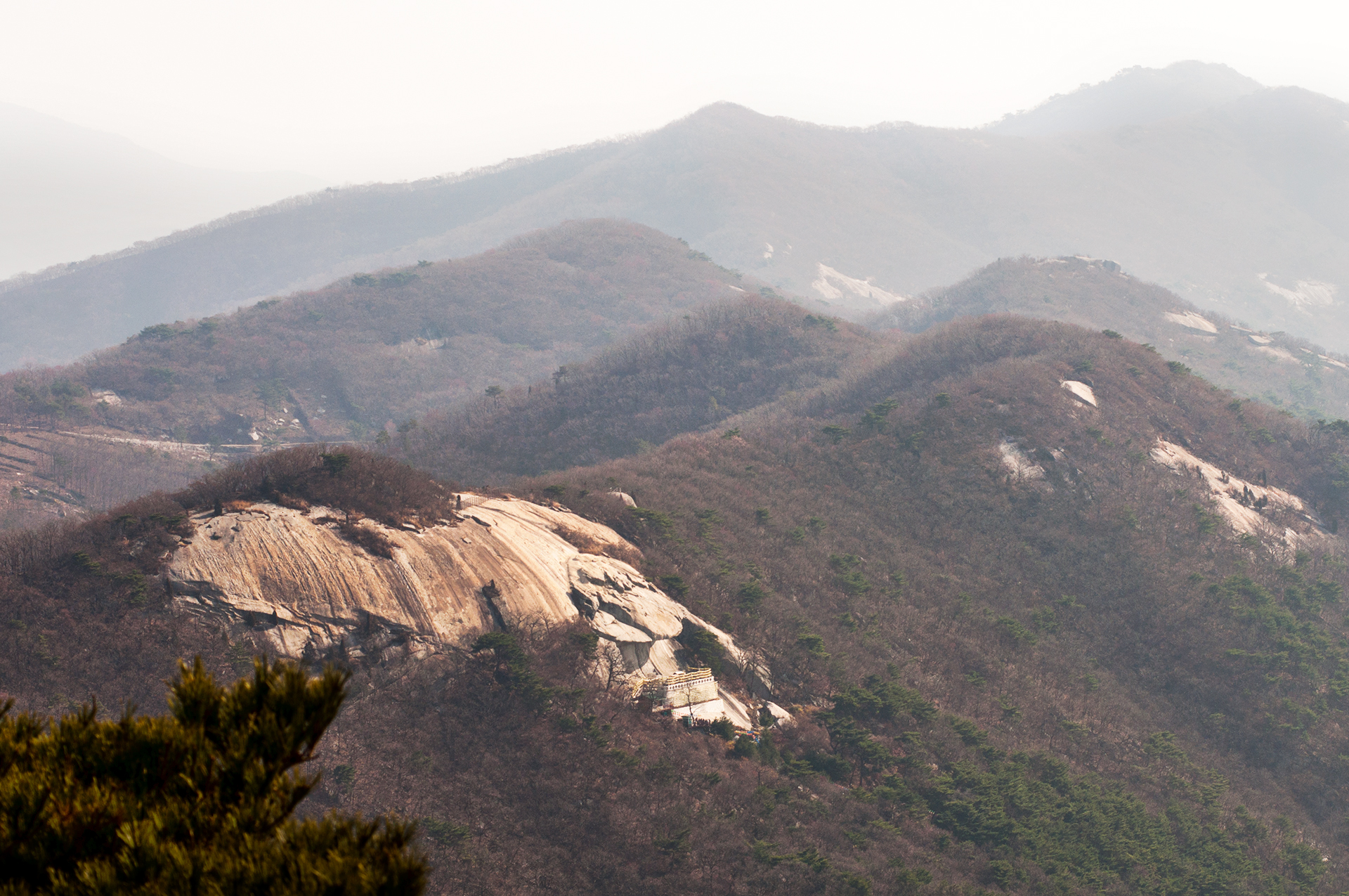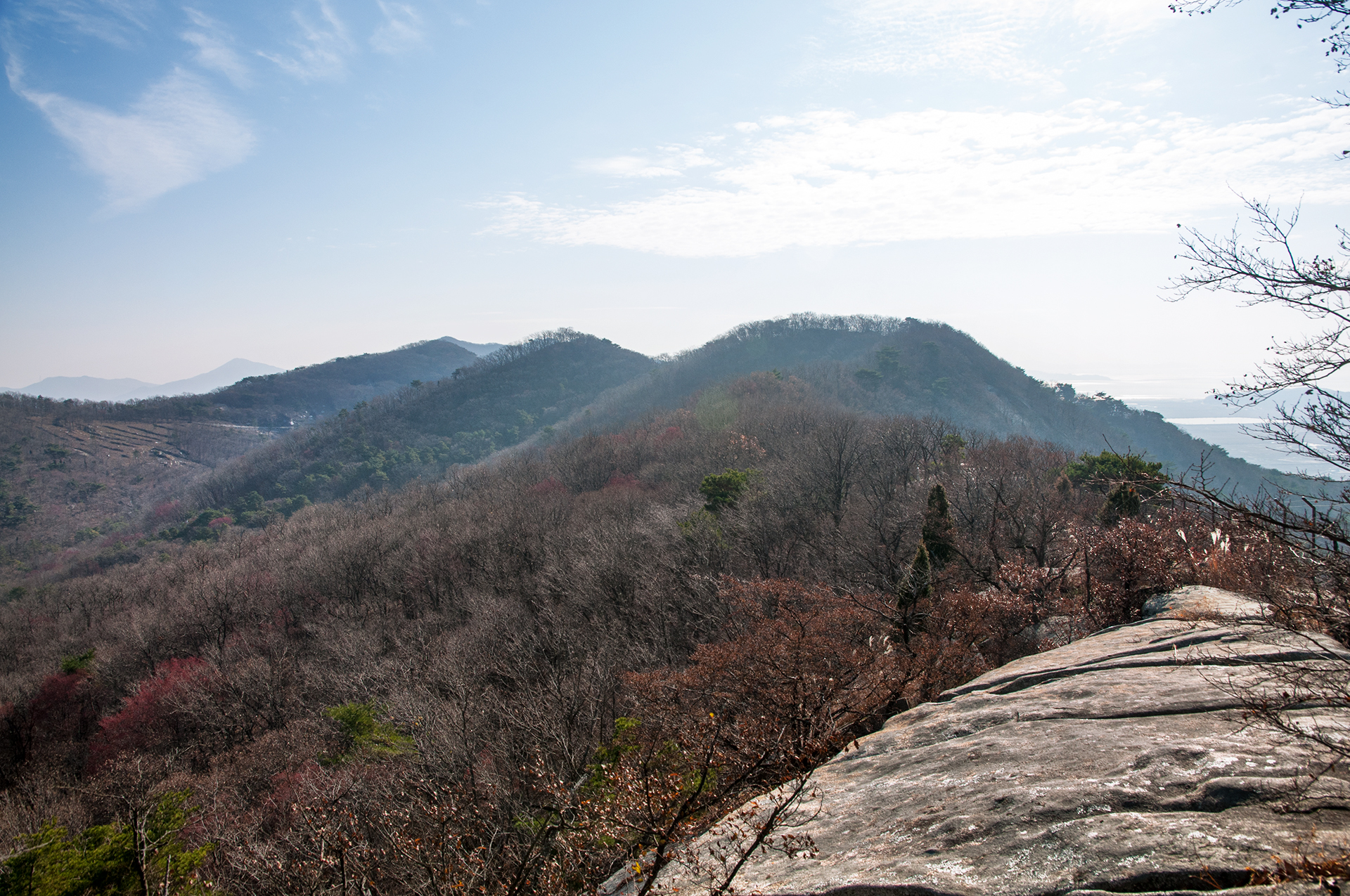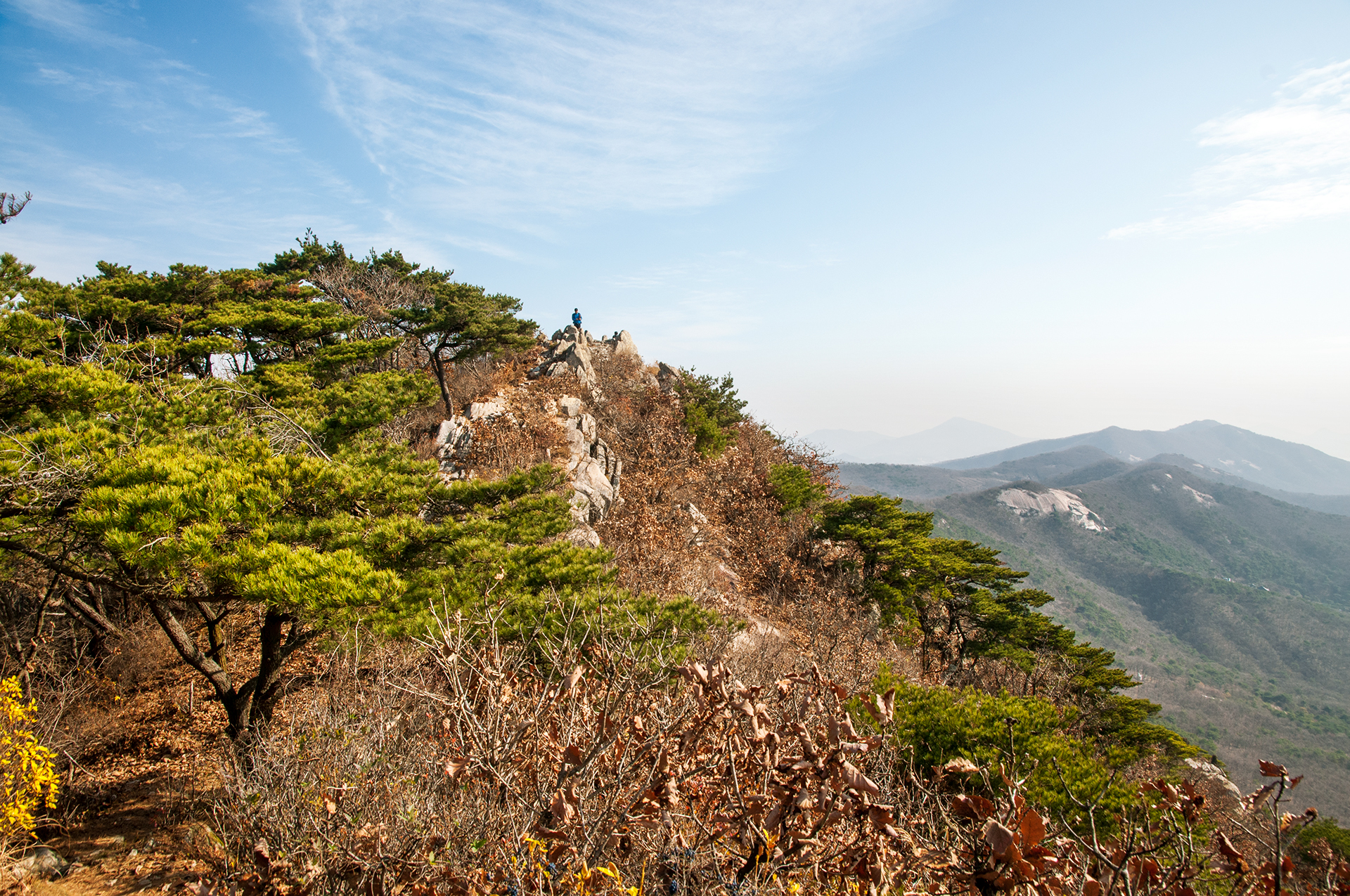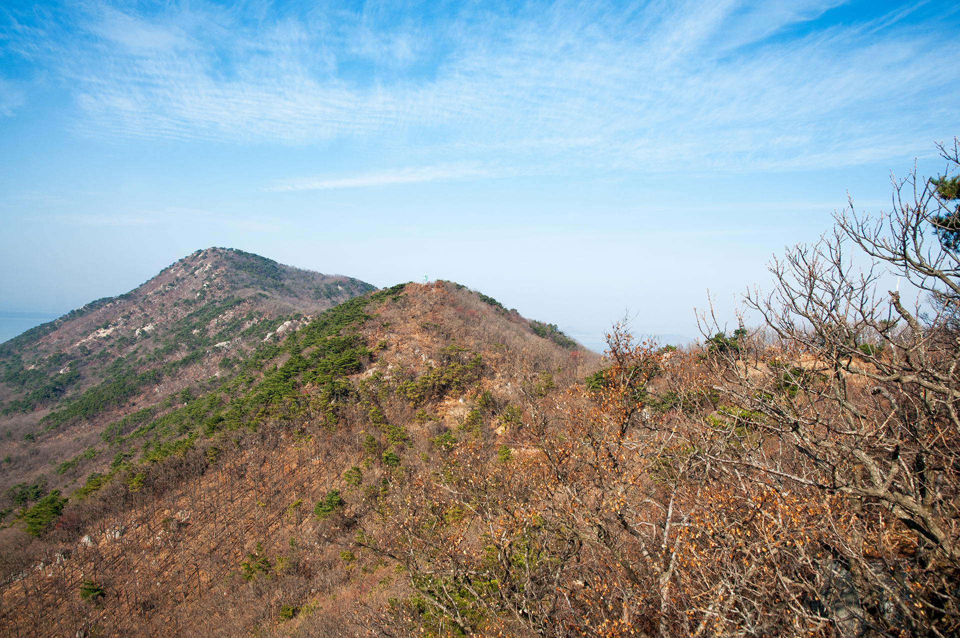 하나의 등산로로 이어지는 종주길은 이제 낙가산으로 치닫는 중이다. 산속의 풍경은 여전히 메말라 보인다.