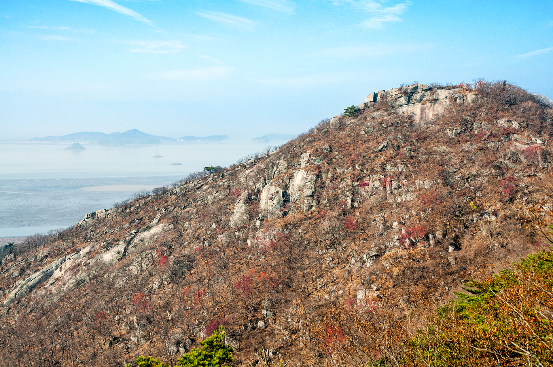 시원하게 뻗은 능선과 올망졸망한 섬들이 서해바다와 함께 아름답게 펼쳐진다.