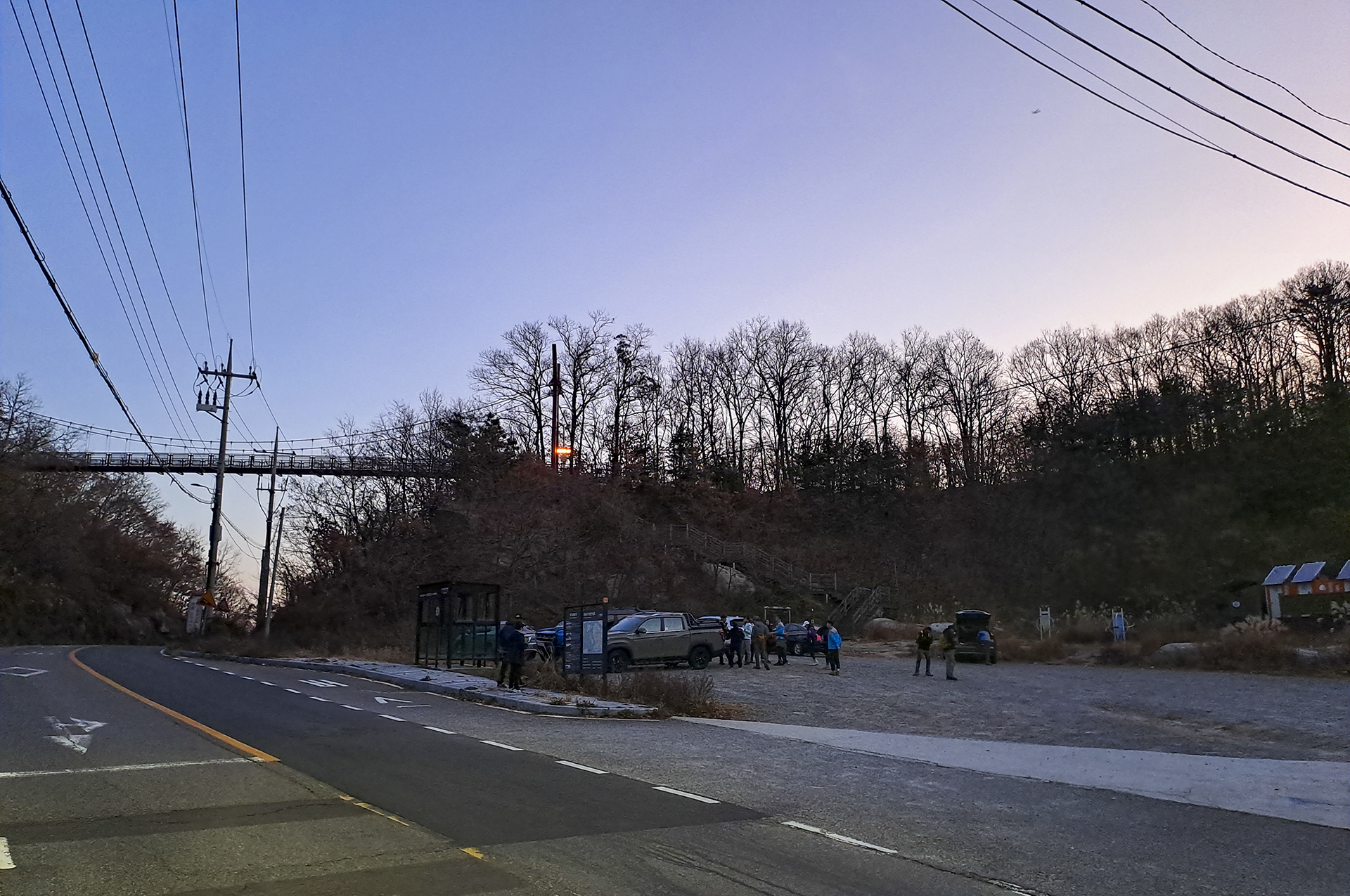 어느새 도로가 보이기 시작하고 오늘의 산행이 끝나기 일보 직전이다.