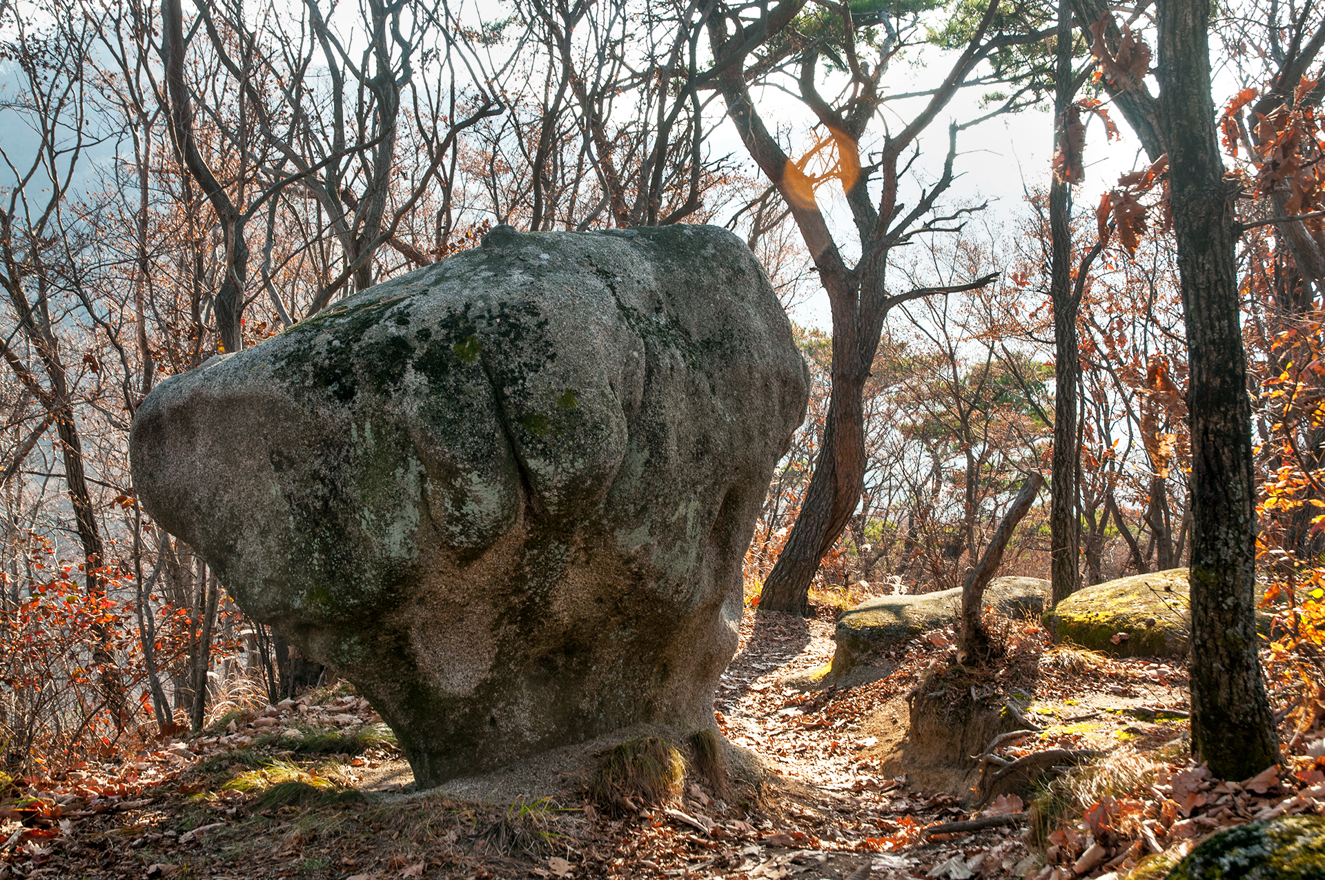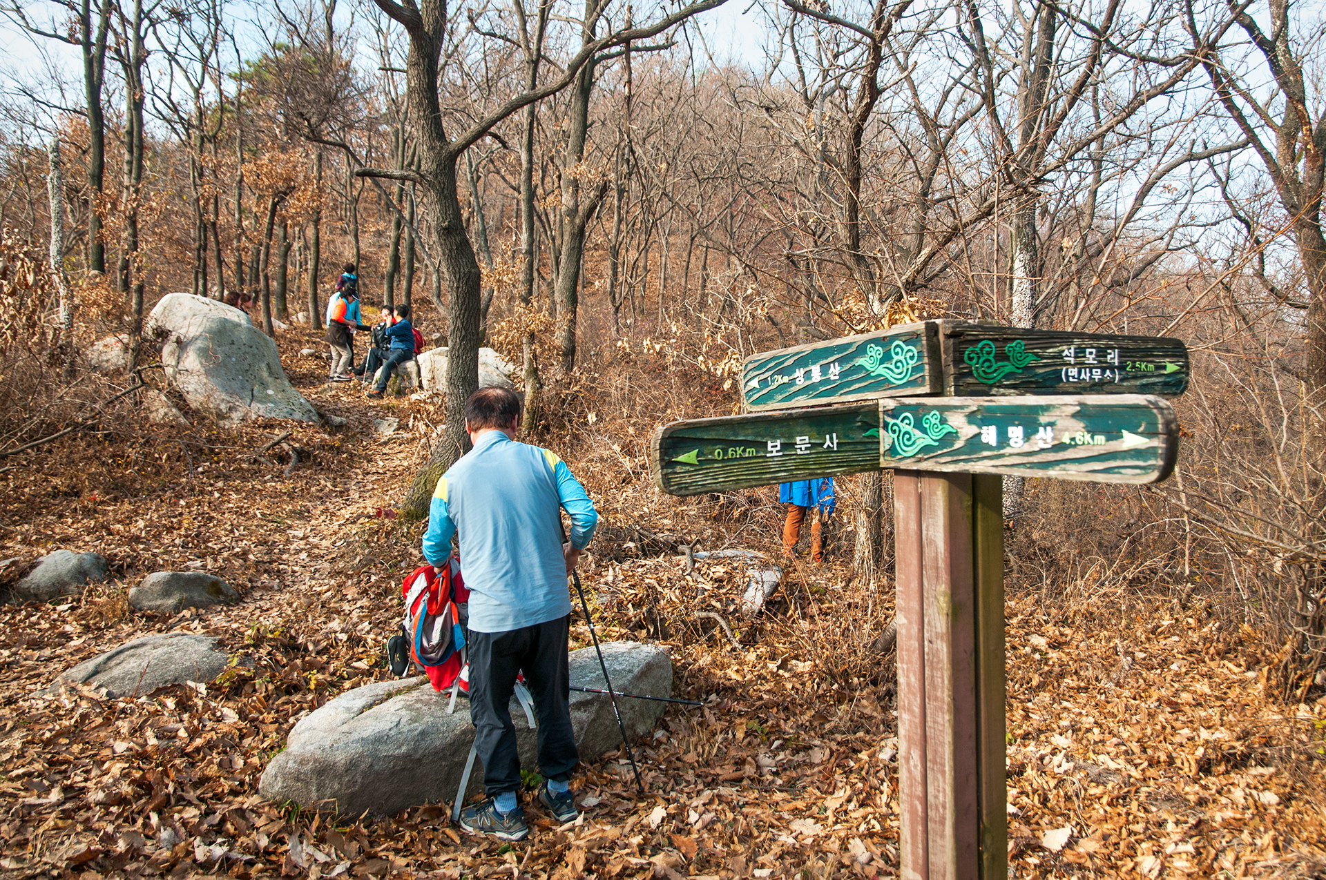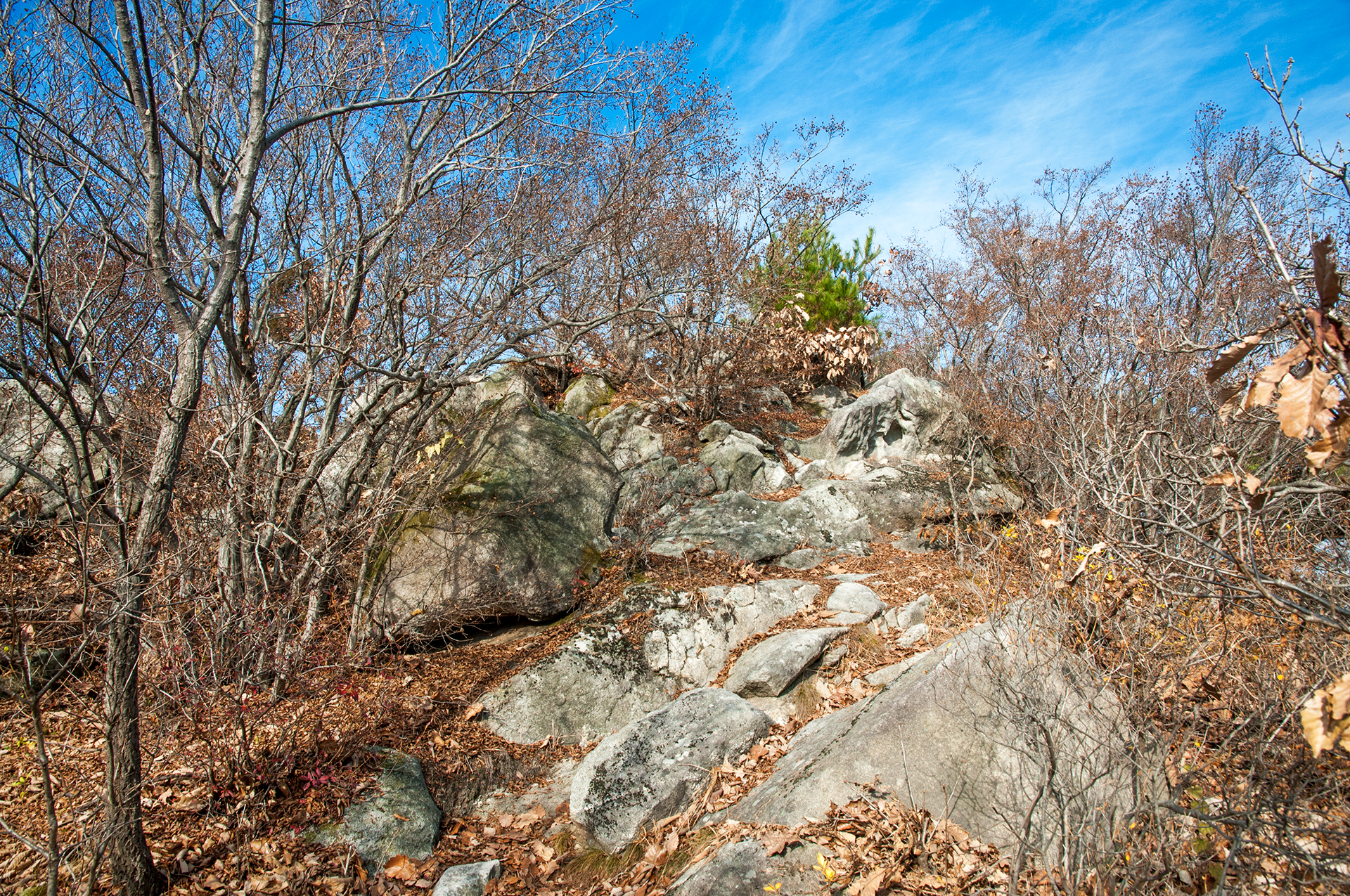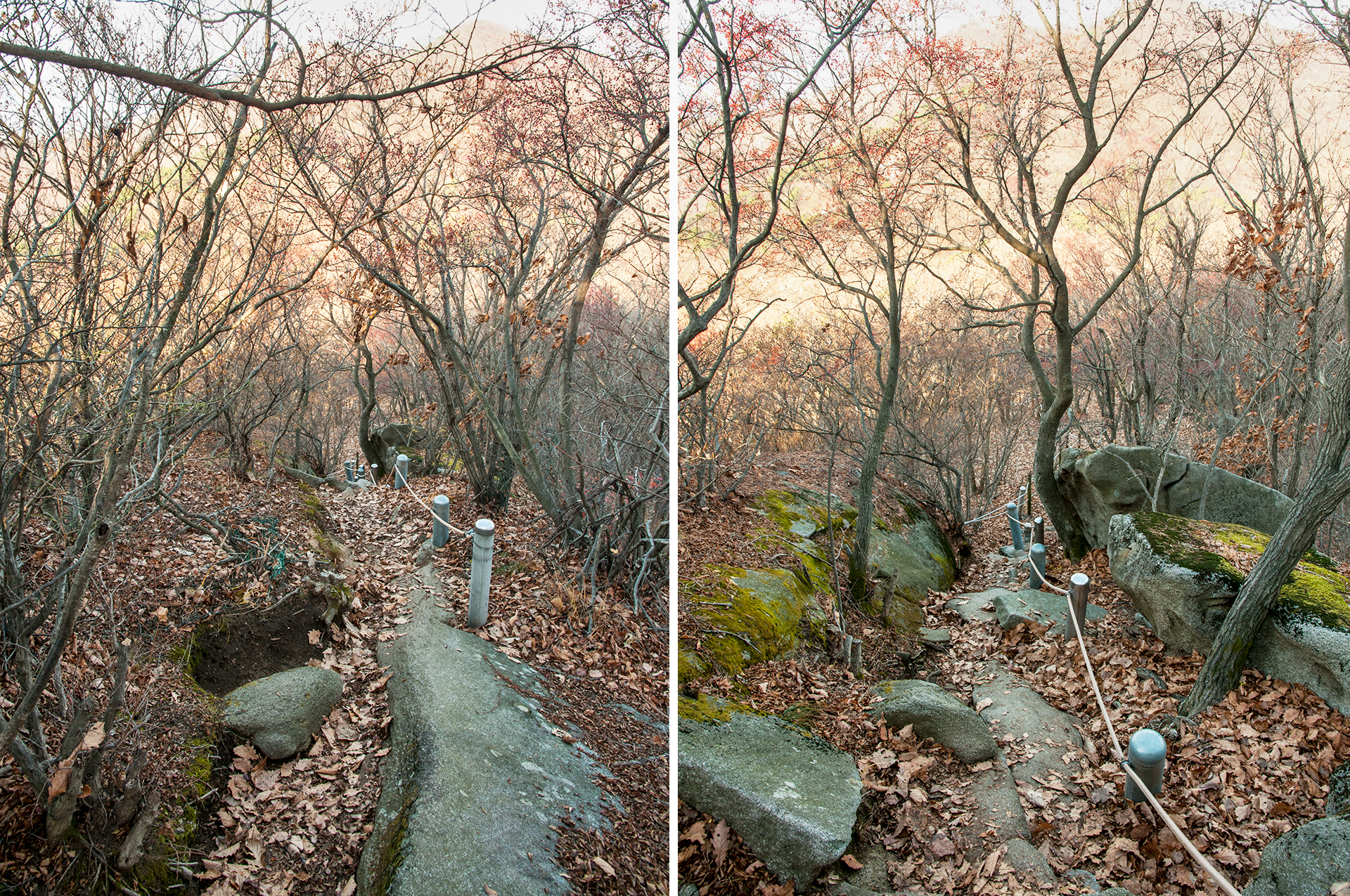 낙엽으로 덮여있는 바위 구간이라 발을 잘못 디딜 경우 발목을 접질릴 수 있으니 조심해야 한다.