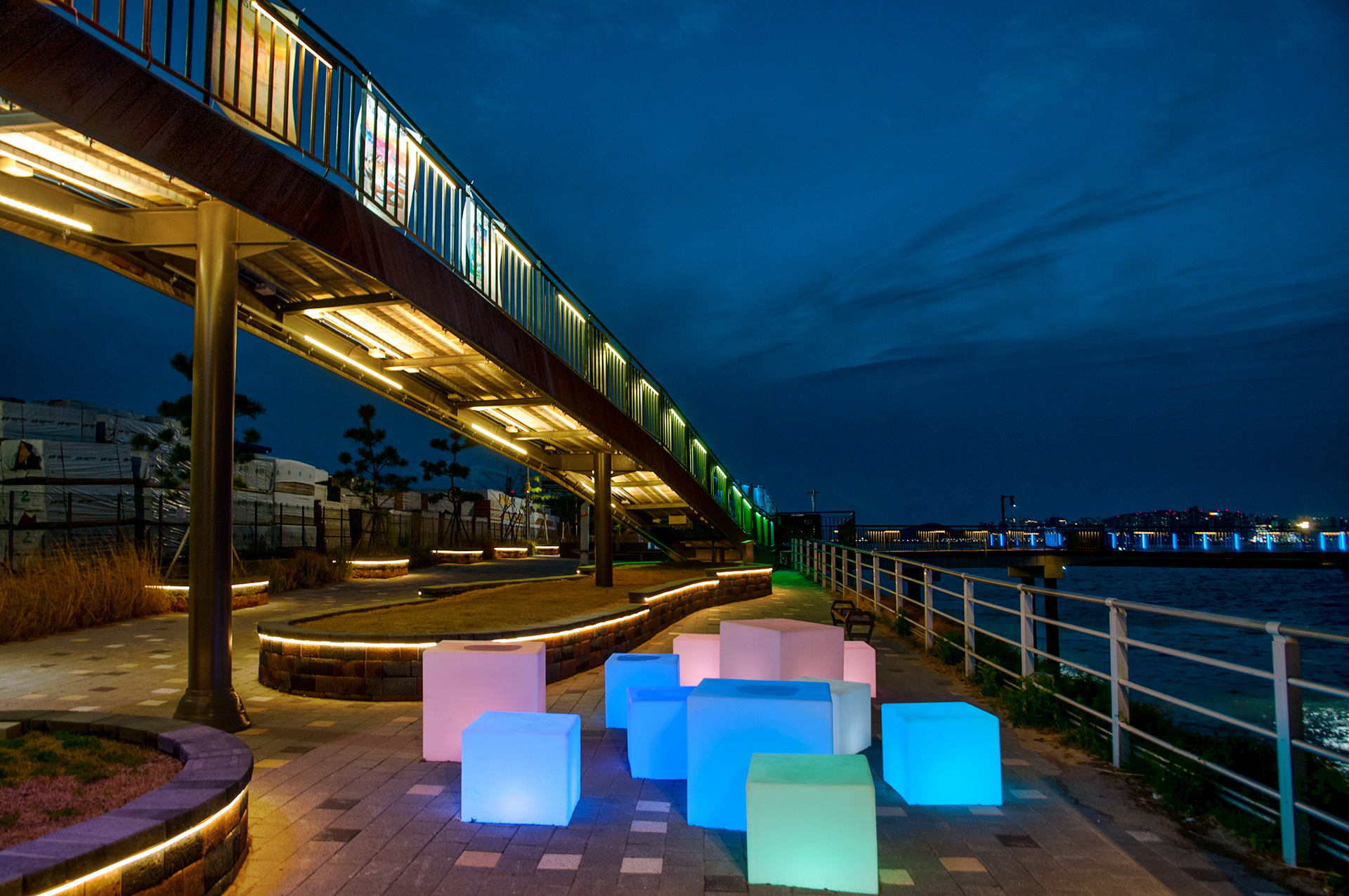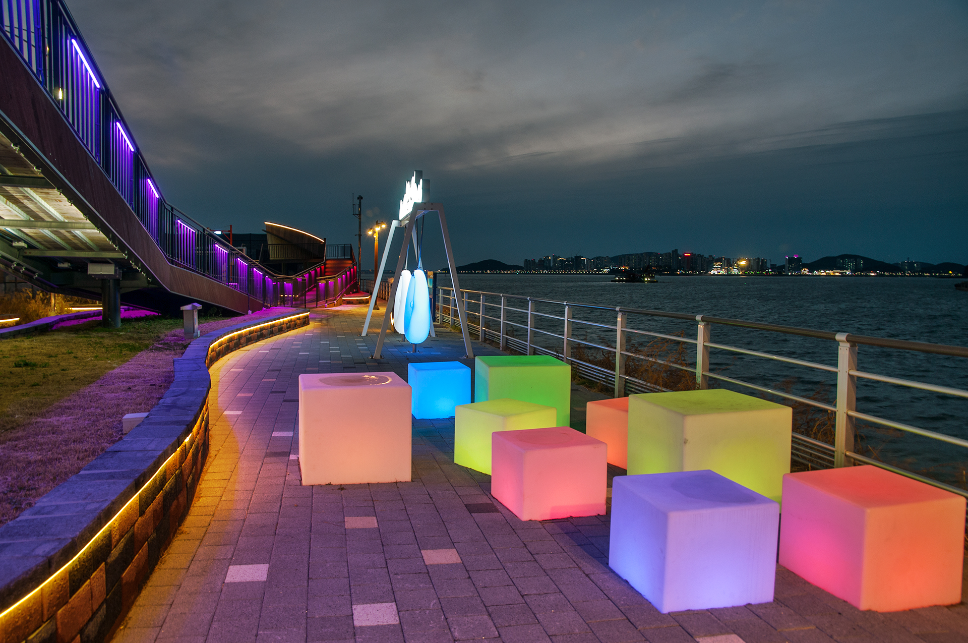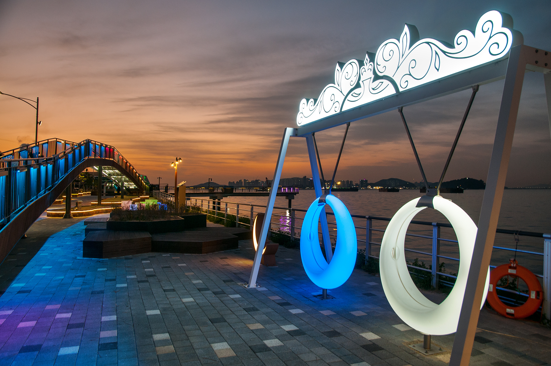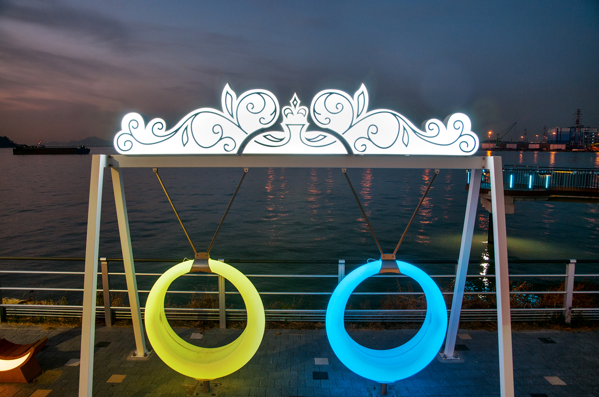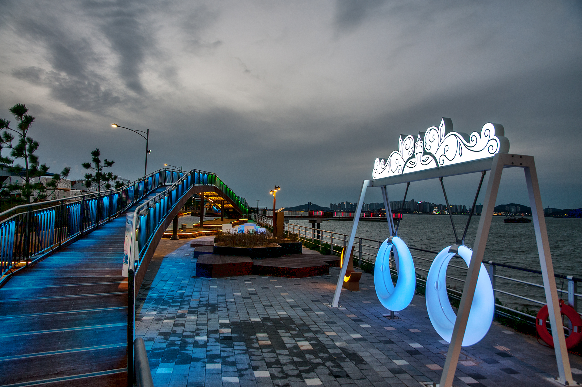 야간에는 조명이 들어오는 그네와 사각튜브, 웨이브데크에도 화려한 조명이 들어와 새로운 야경 명소로 떠오를듯 하다.
