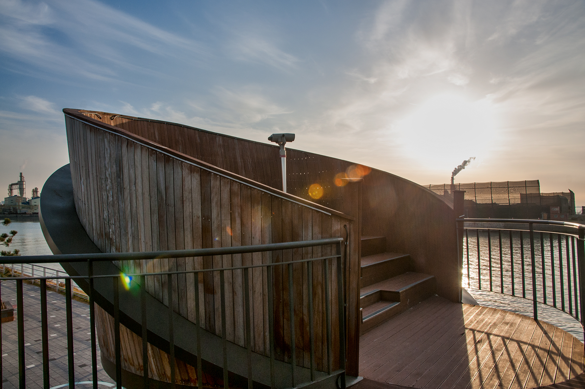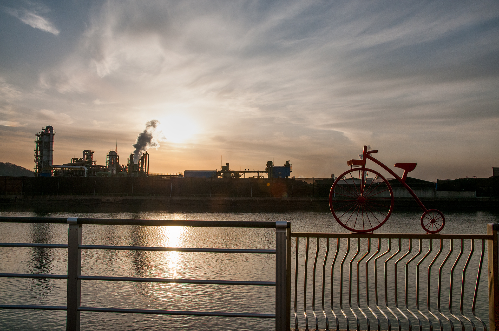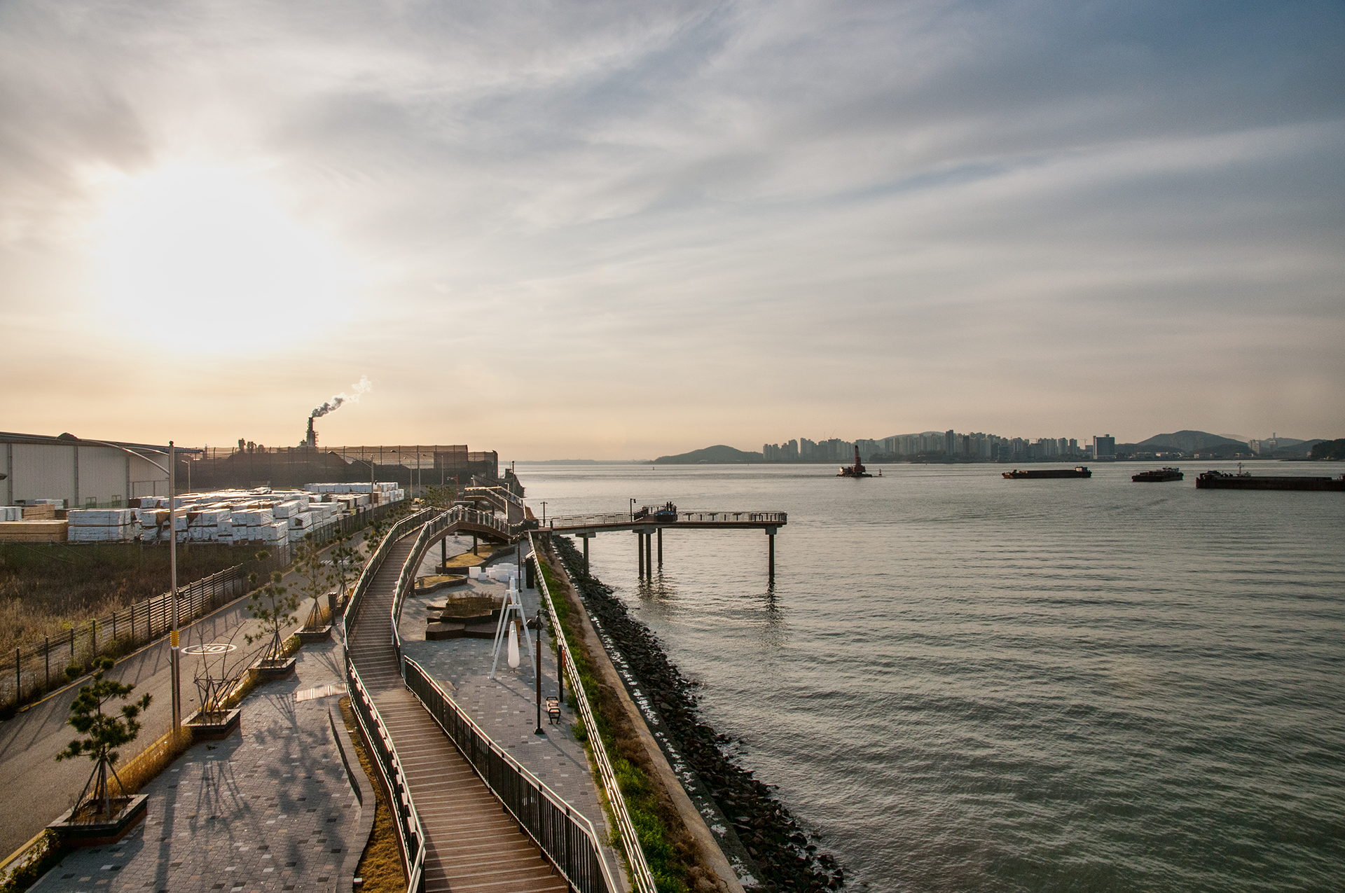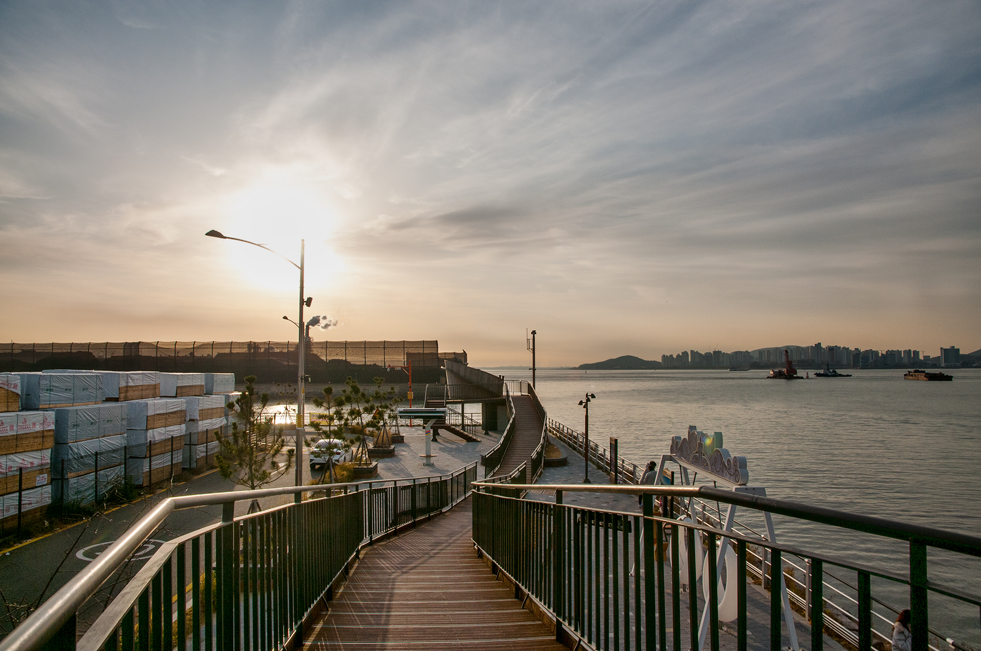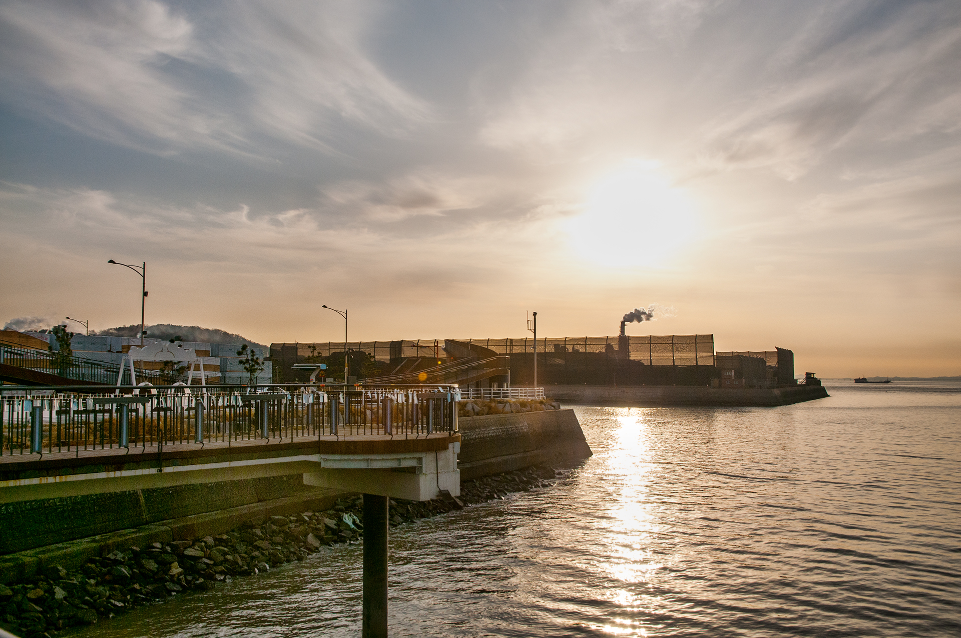 북성포구에서 볼때는 왼쪽 공장으로 해가 떨어지는 각인데, 여기에서 보니 양쪽 공장 가운데로 해가 내려 앉을것 같다.