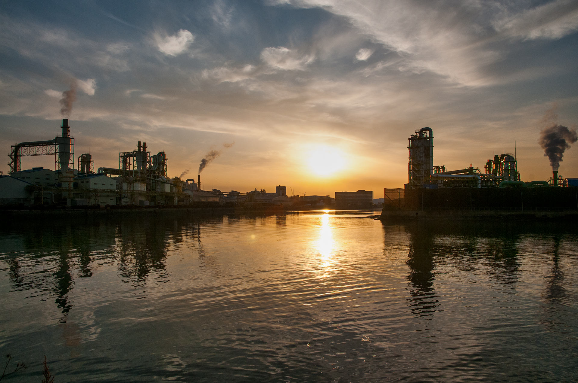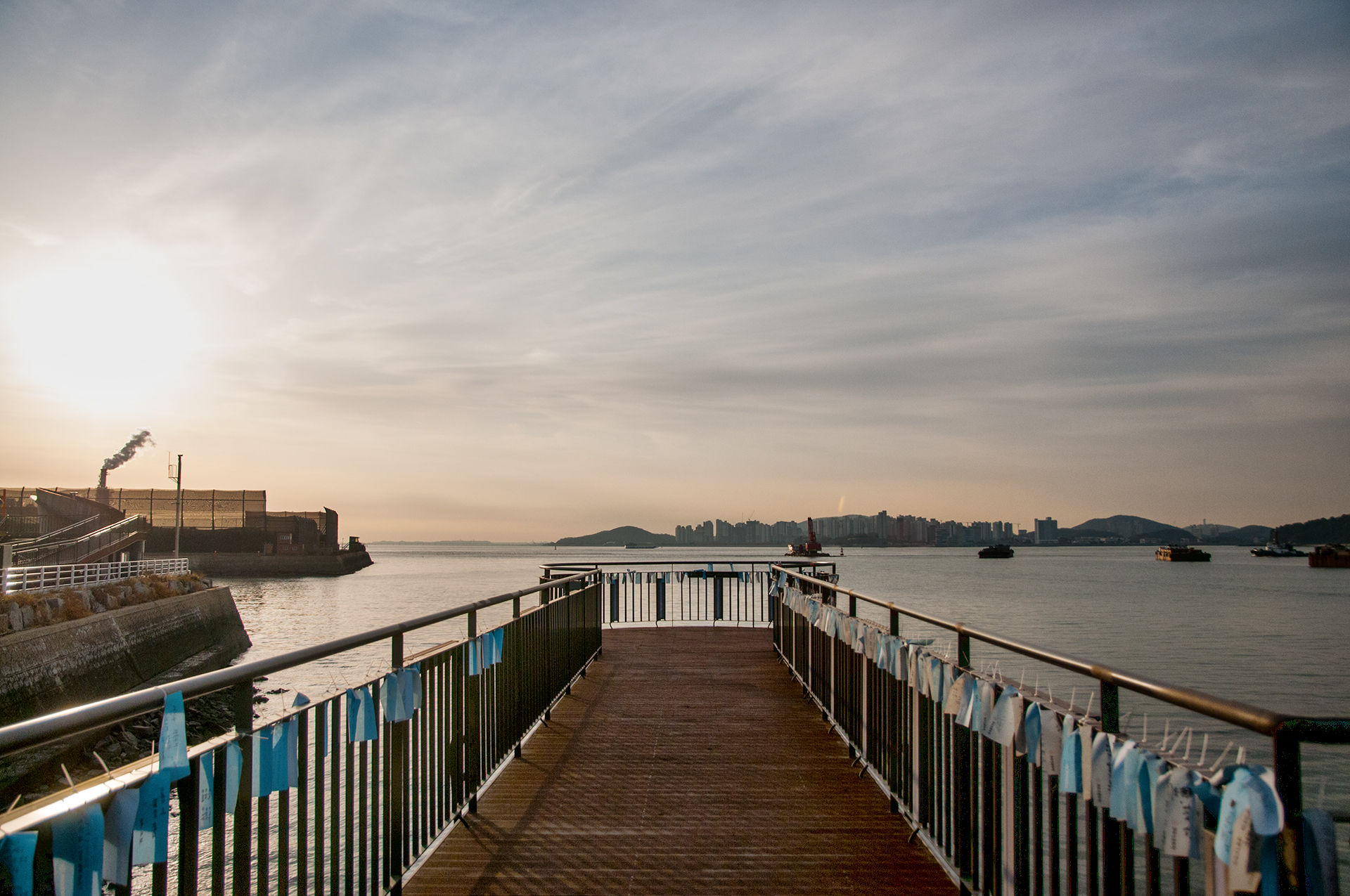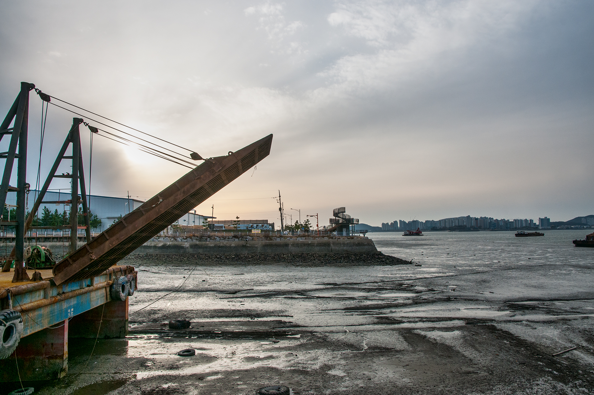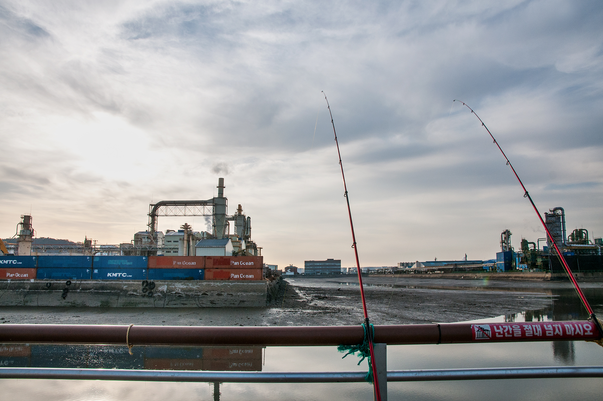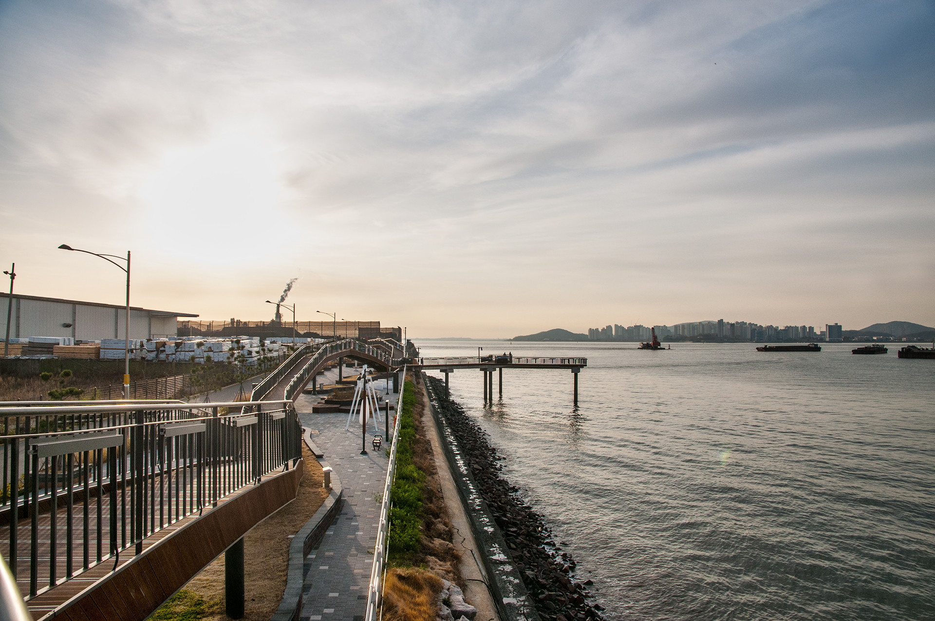 북성포구에서 볼때는 왼쪽 공장으로 해가 떨어지는 각인데, 여기에서 보니 양쪽 공장 가운데로 해가 내려 앉을것 같다.