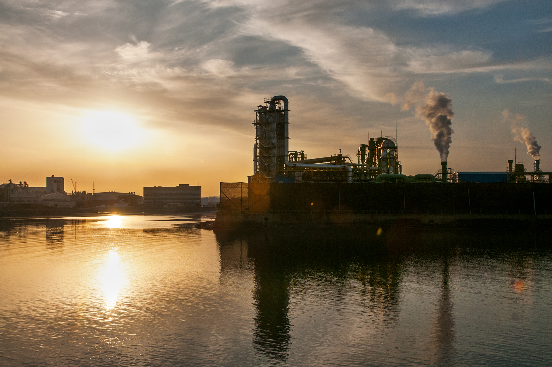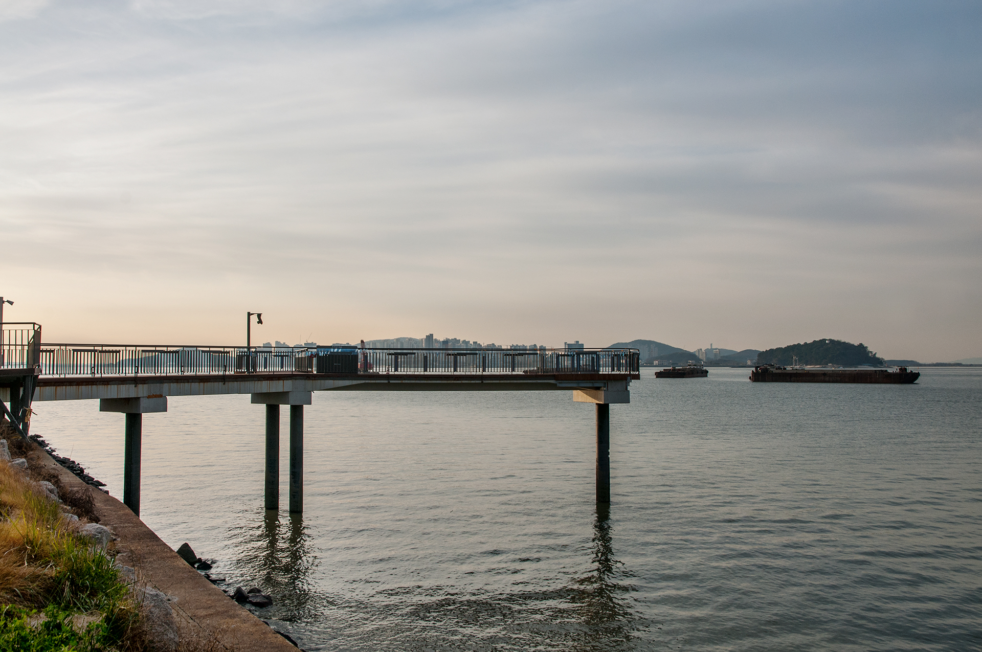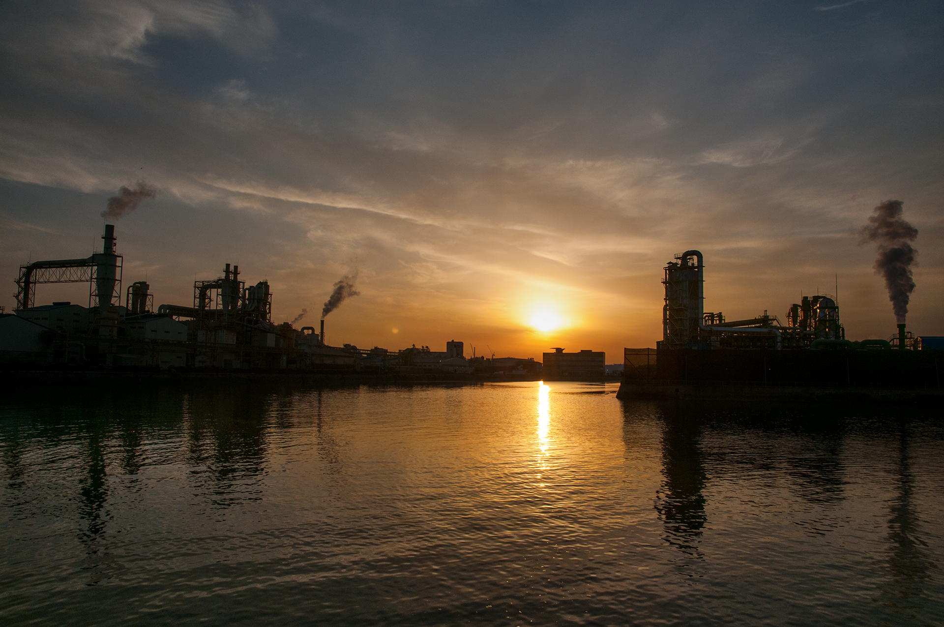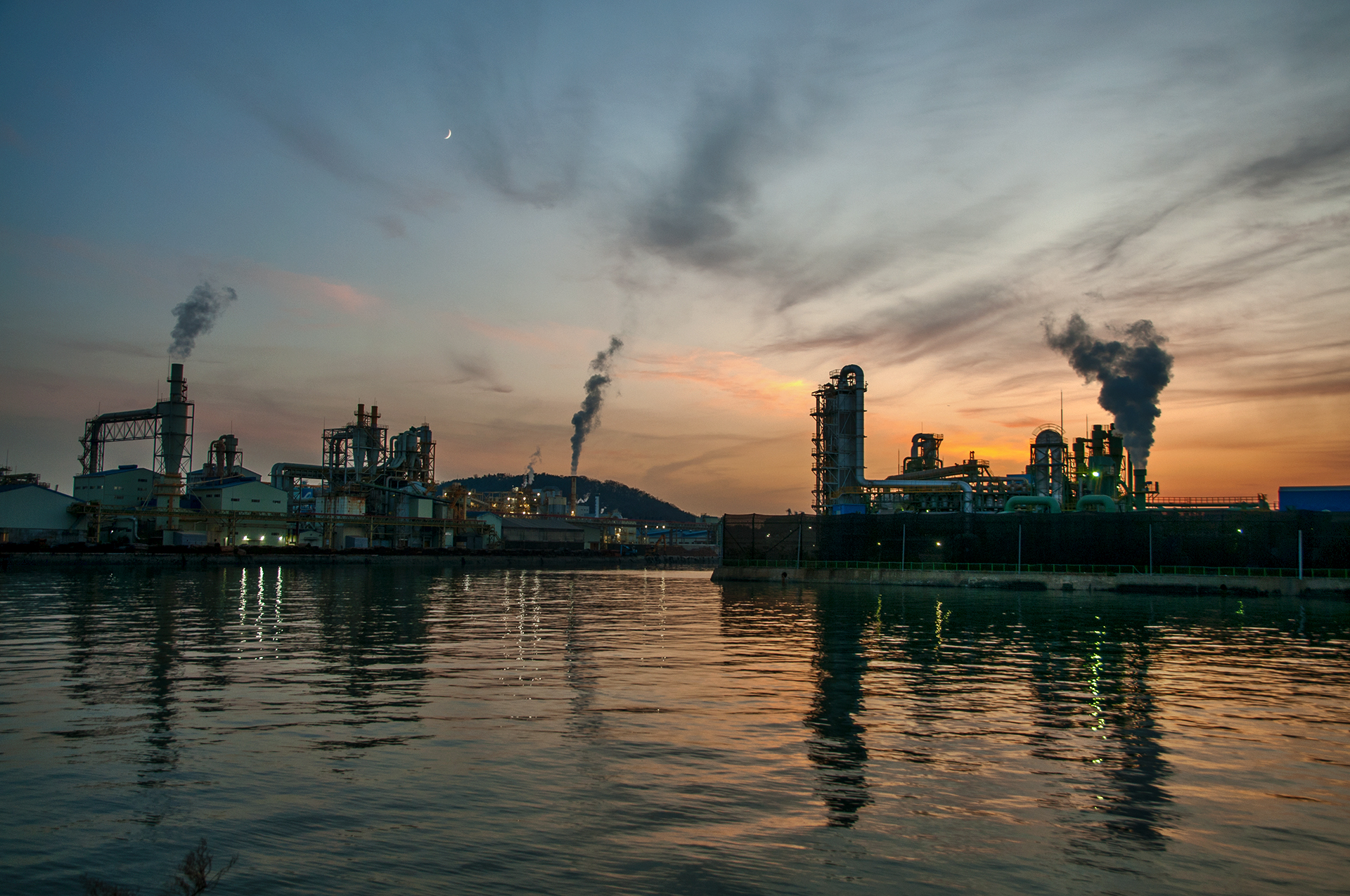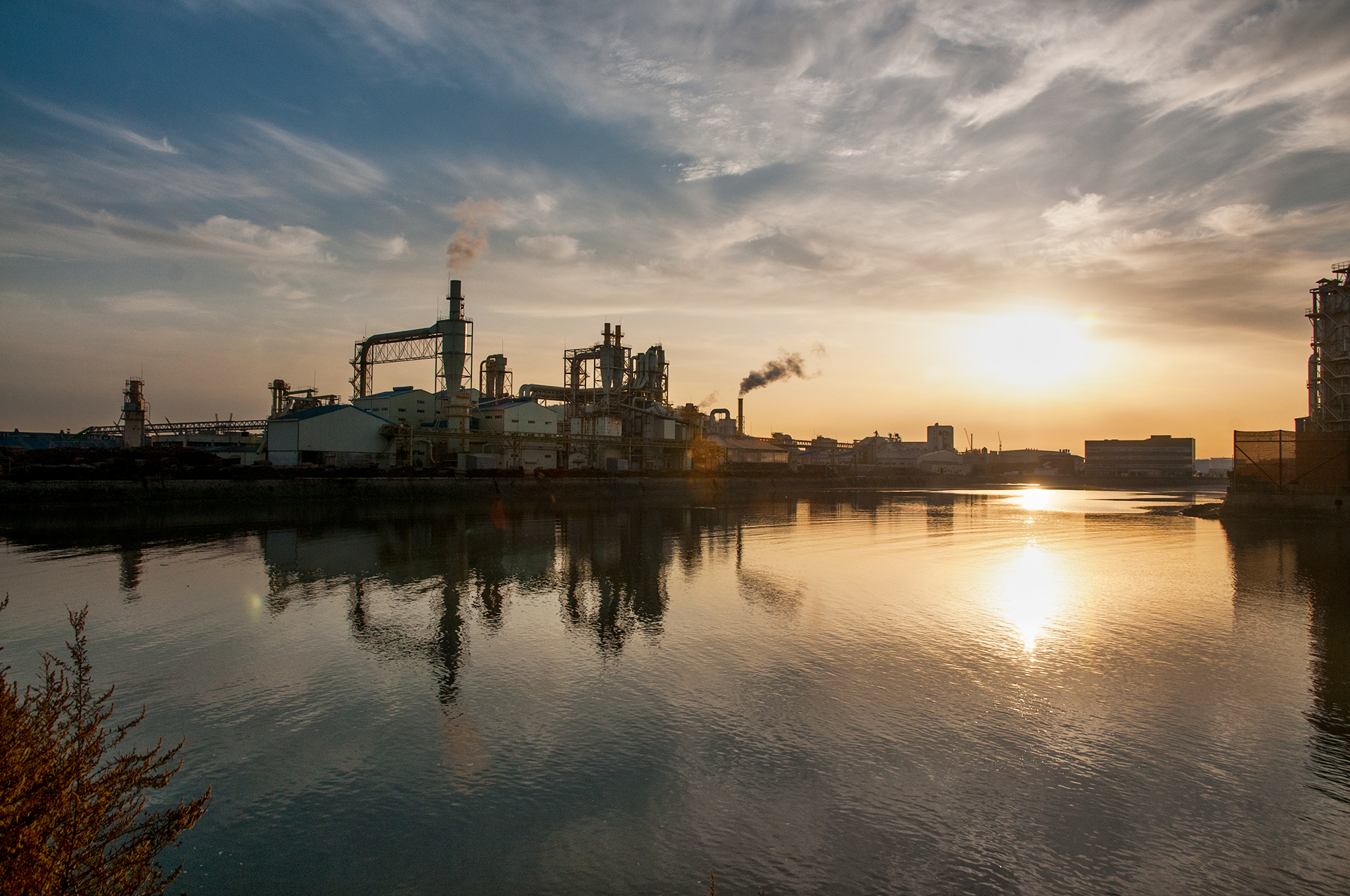 북성포구에서 볼때는 왼쪽 공장으로 해가 떨어지는 각인데, 여기에서 보니 양쪽 공장 가운데로 해가 내려 앉을것 같다.
