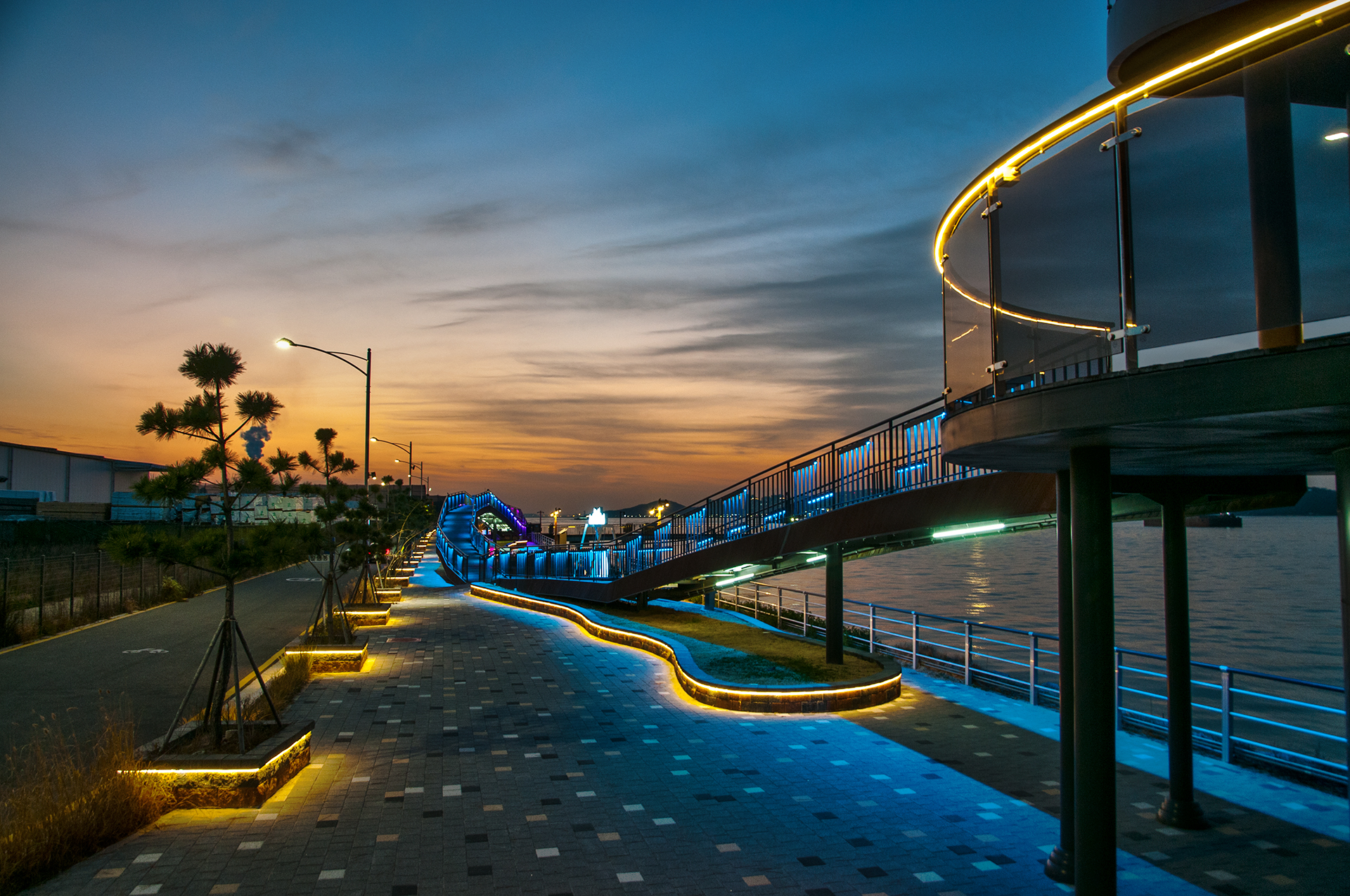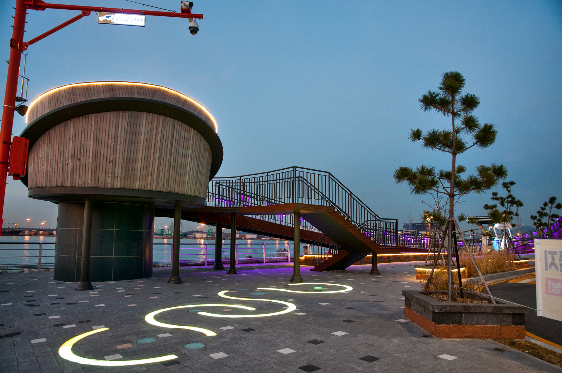 조명이 들어온 웨이브데크와 전망데크